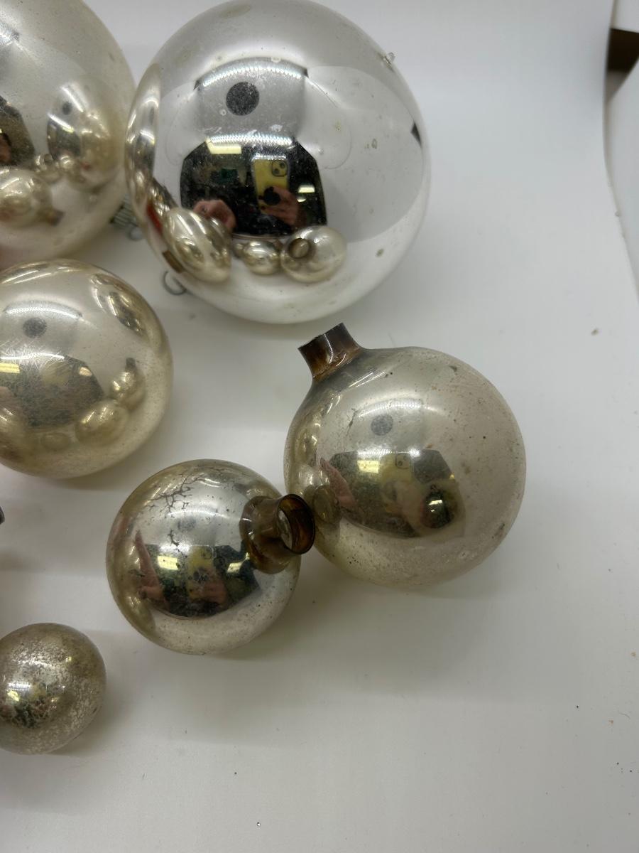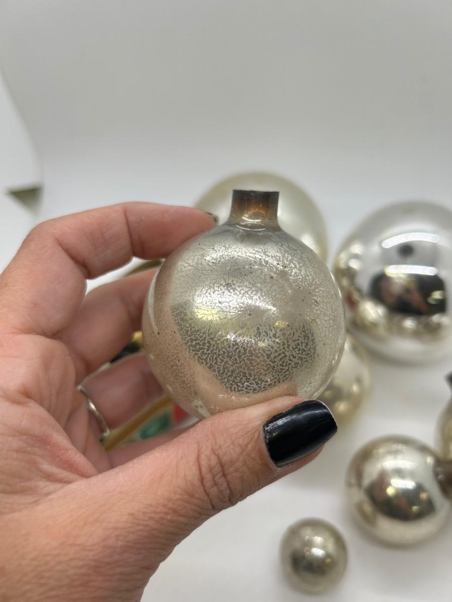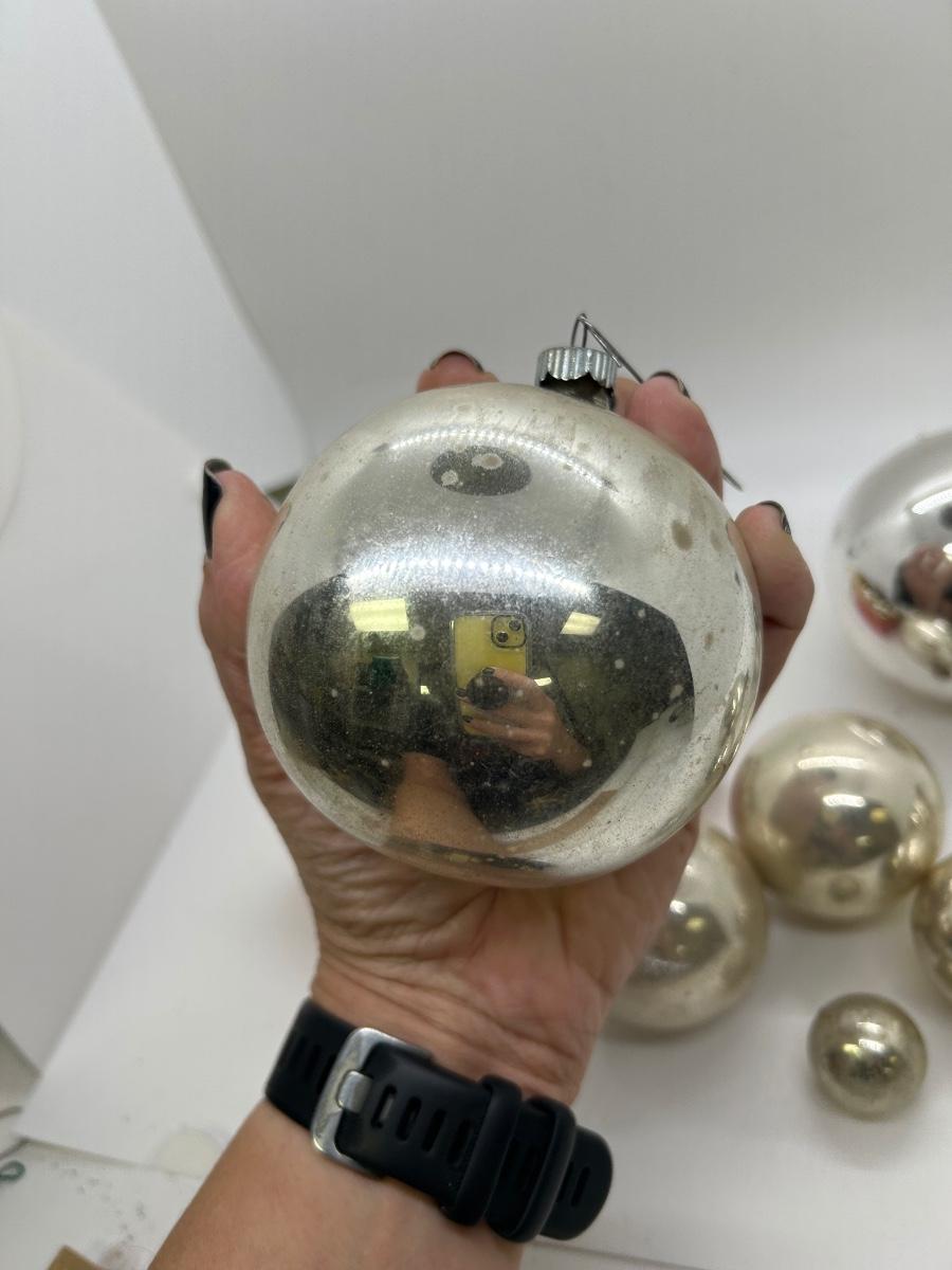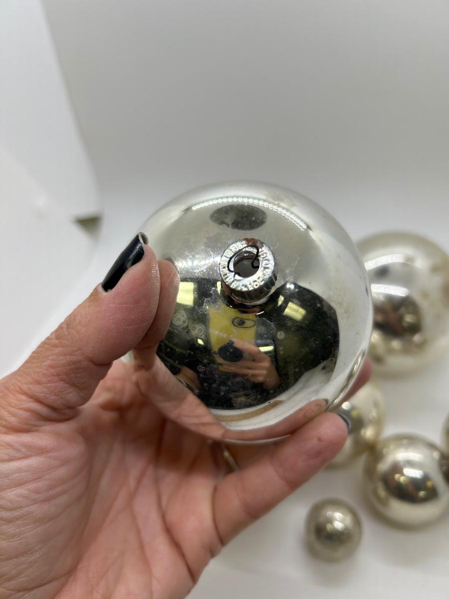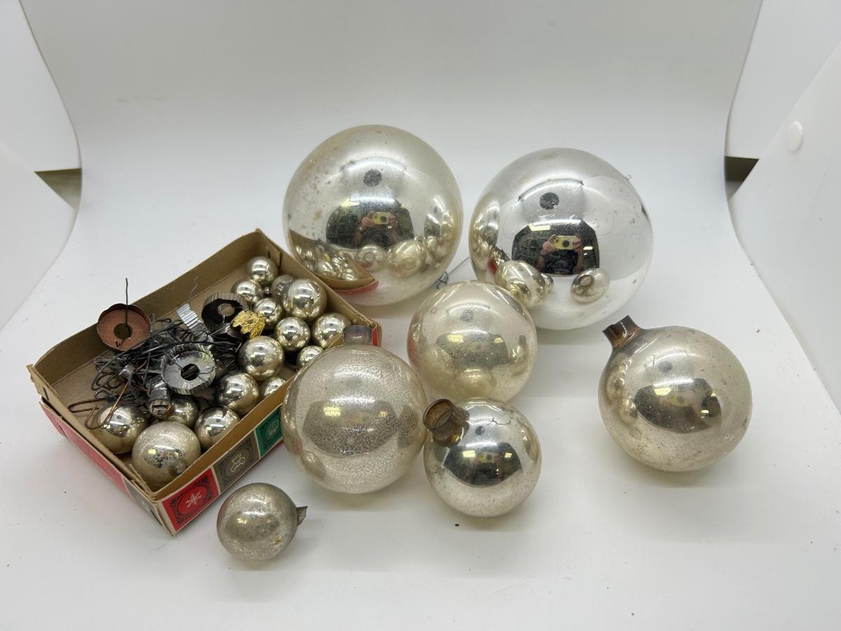 Mixed Size Lot of Vintage Blown Glass Christmas Holiday Ornaments Silver Balls Bulbs
