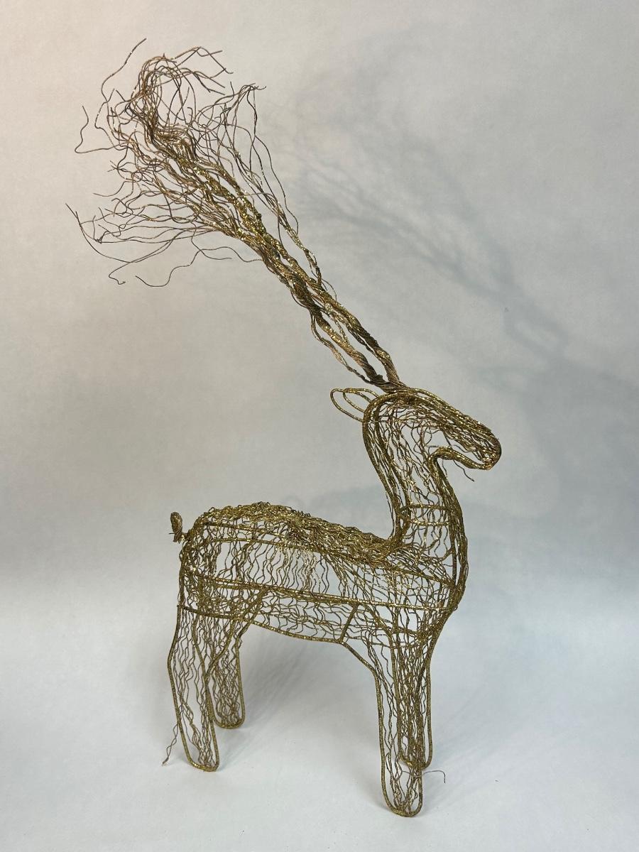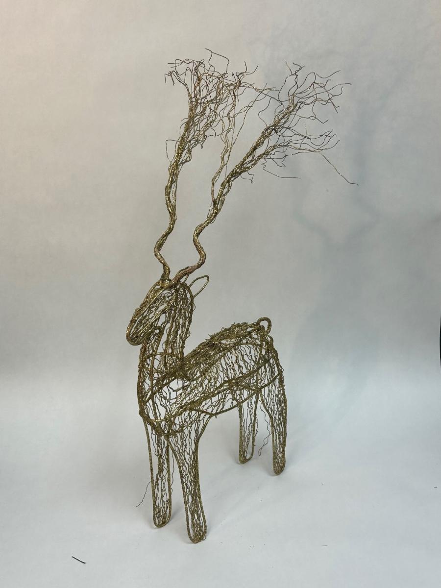 Wire Framework Deer with Long Antler Christmas Holiday Decor