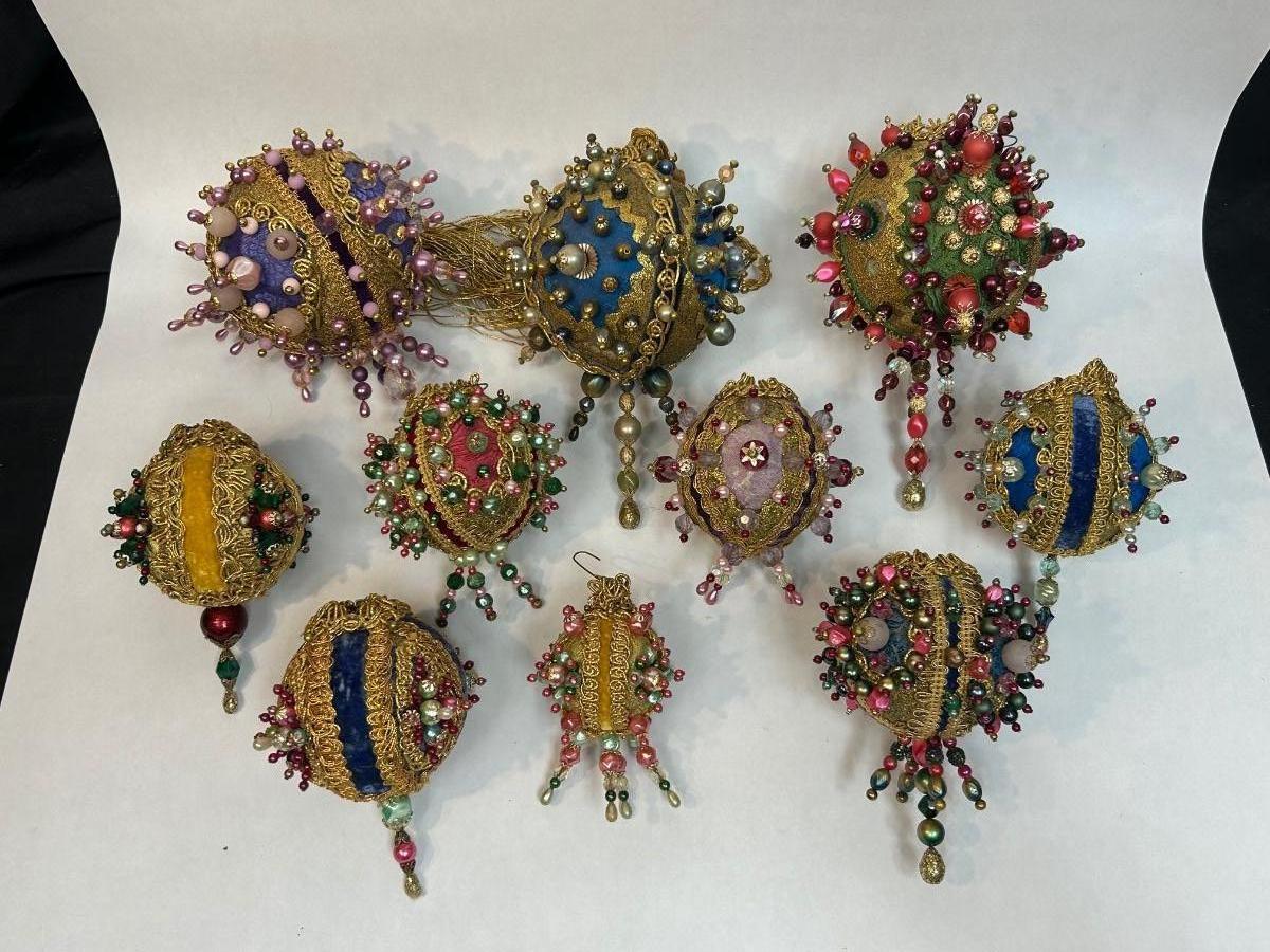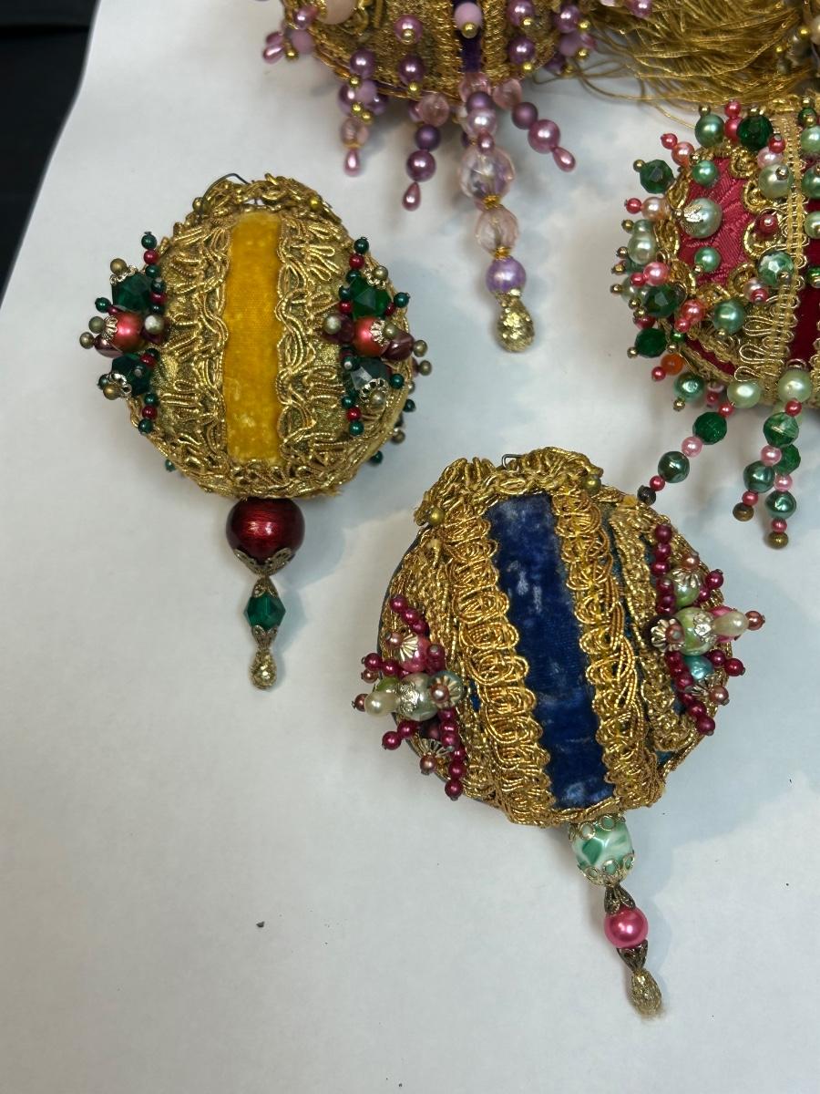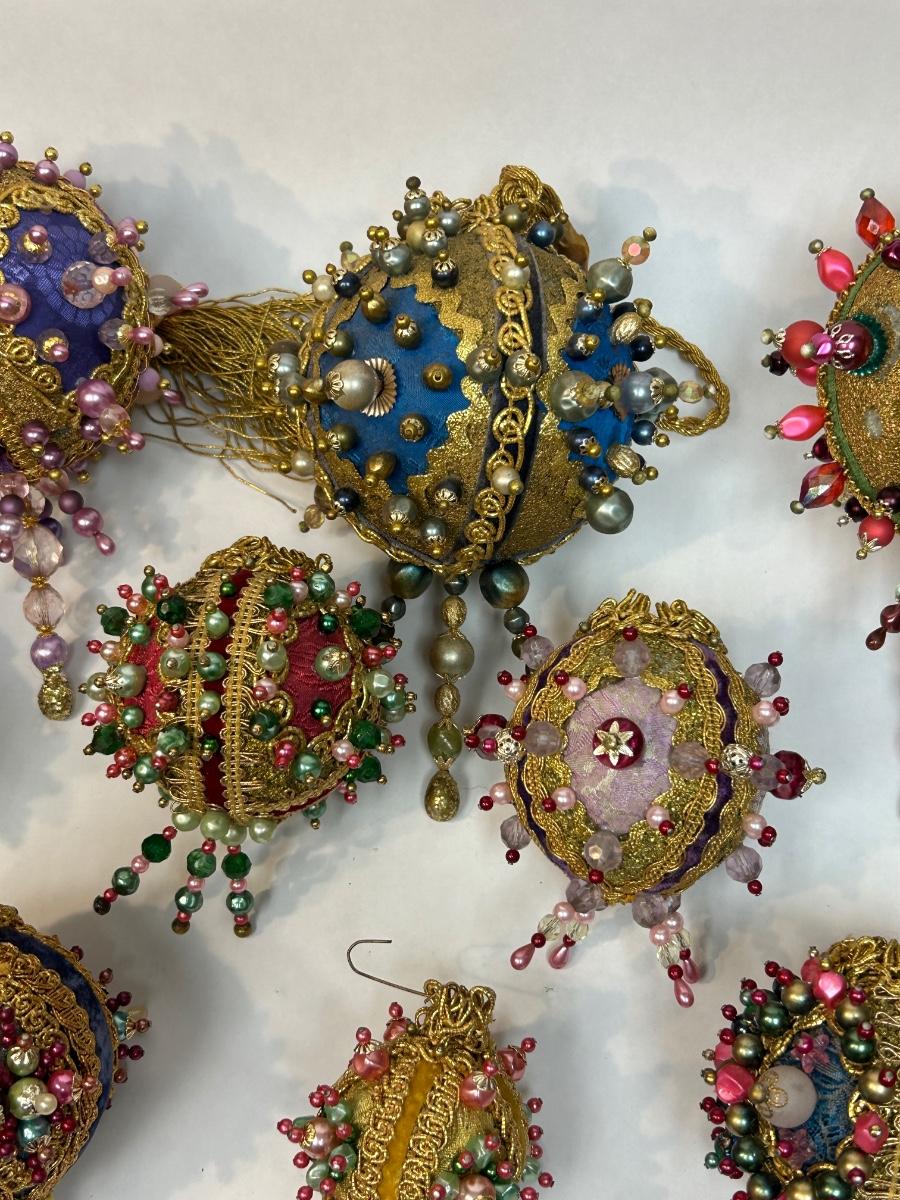 Vintage Lot of Ornate Pin Sequined Fabric Decorated Christmas Holiday Ornaments