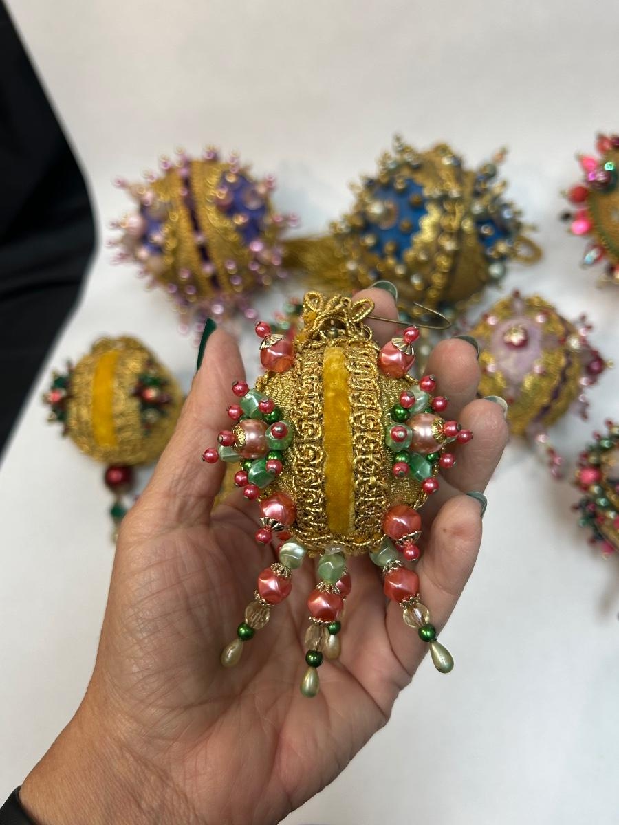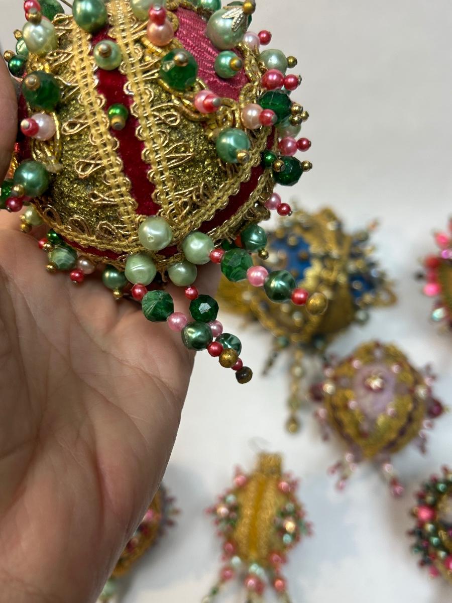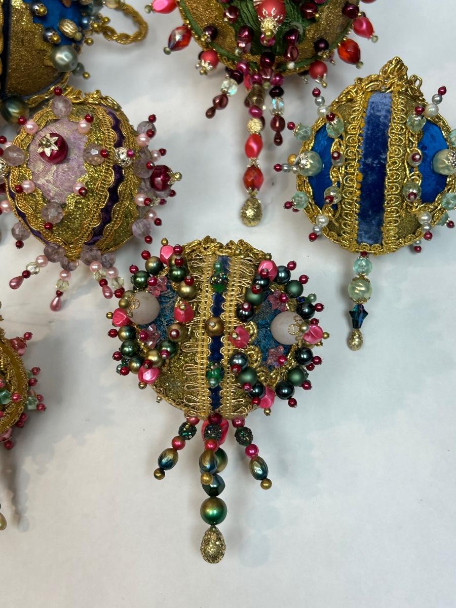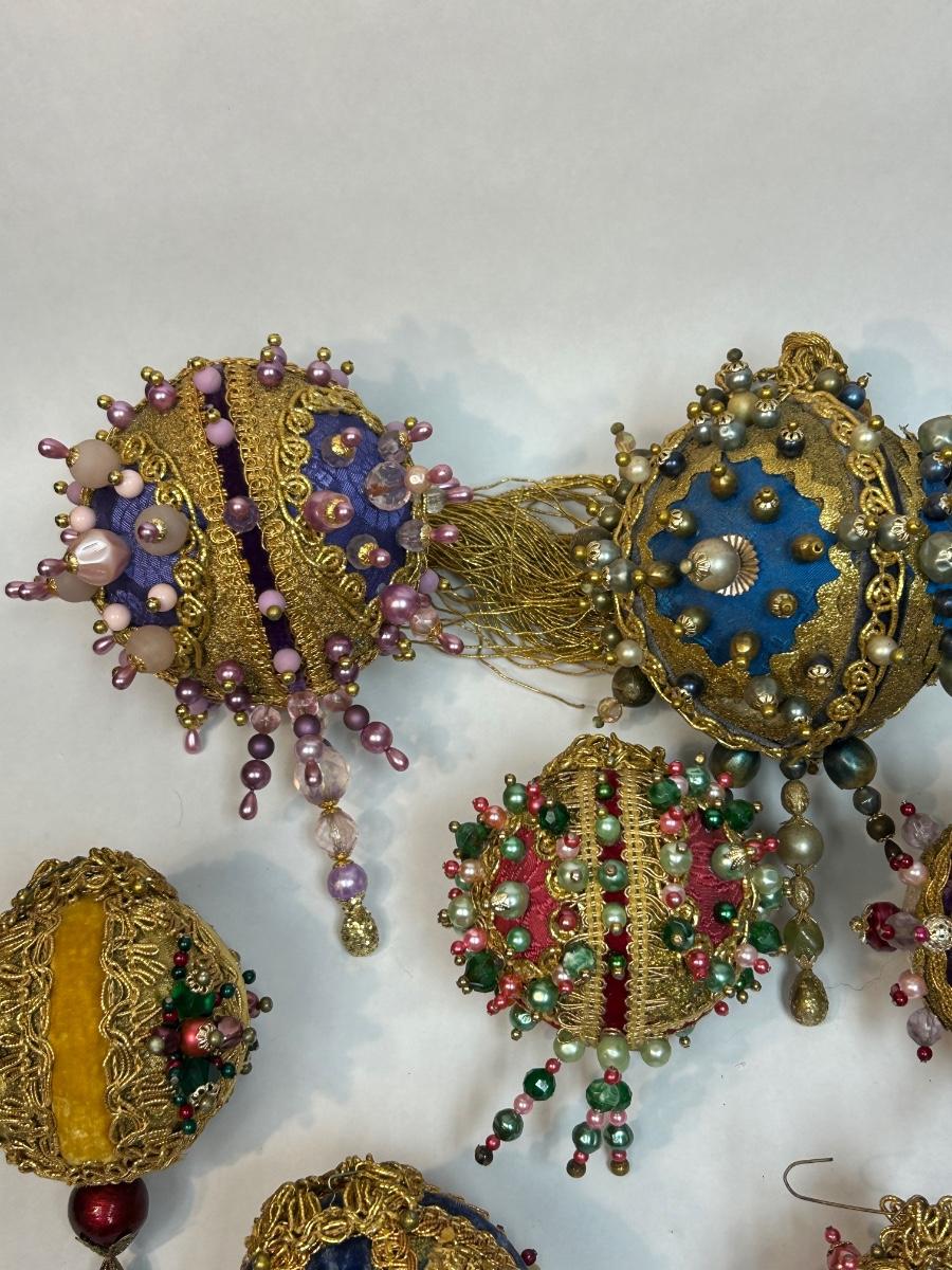 Vintage Lot of Ornate Pin Sequined Fabric Decorated Christmas Holiday Ornaments