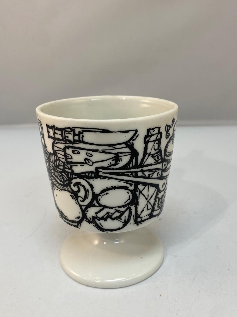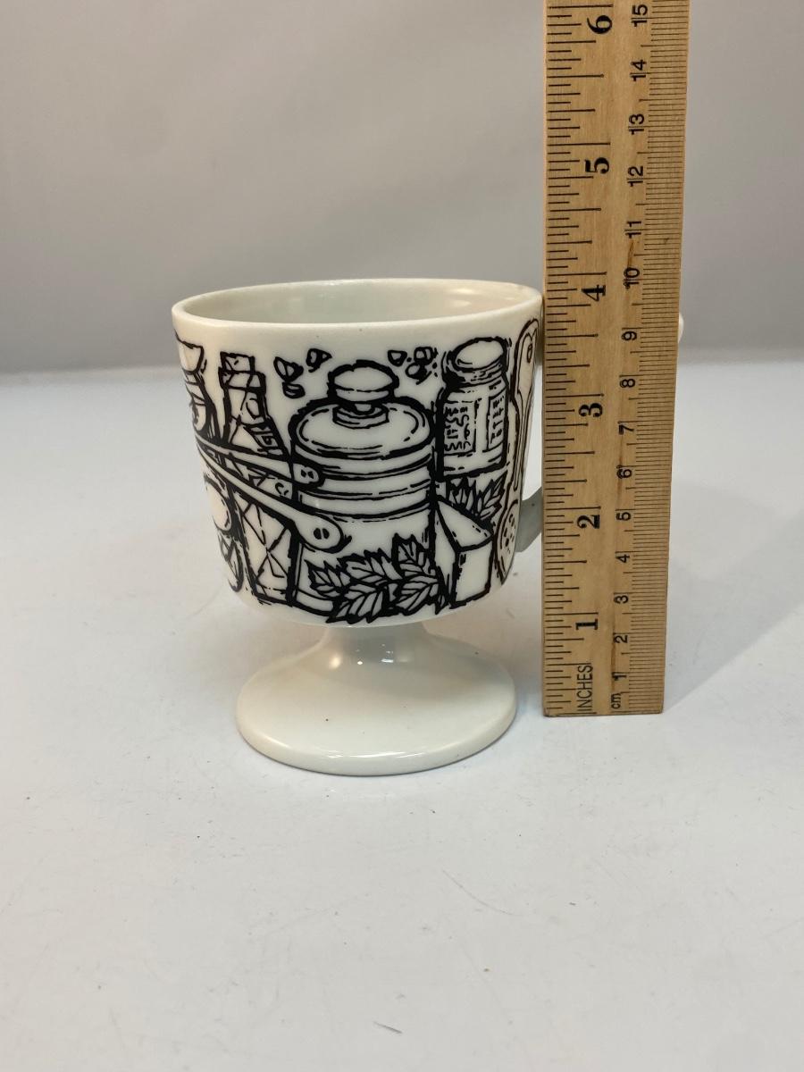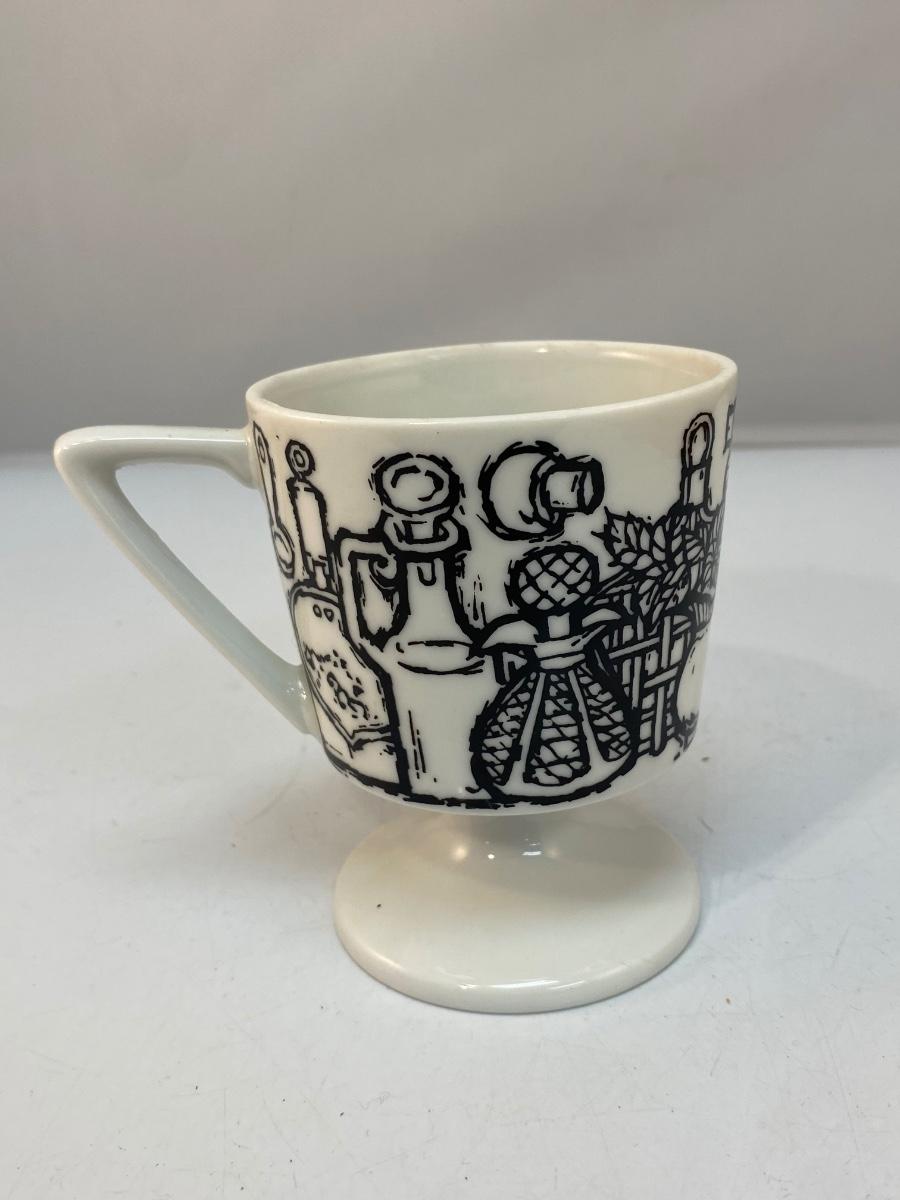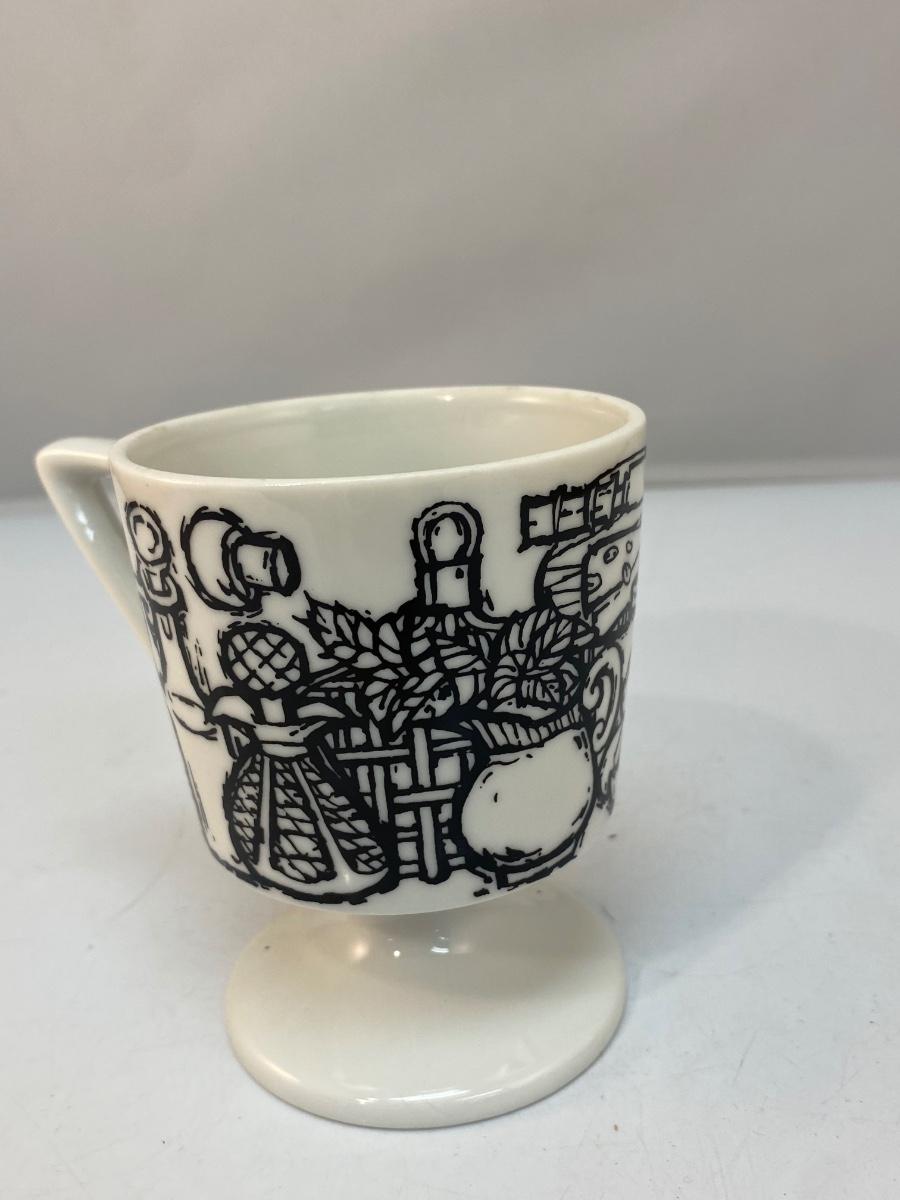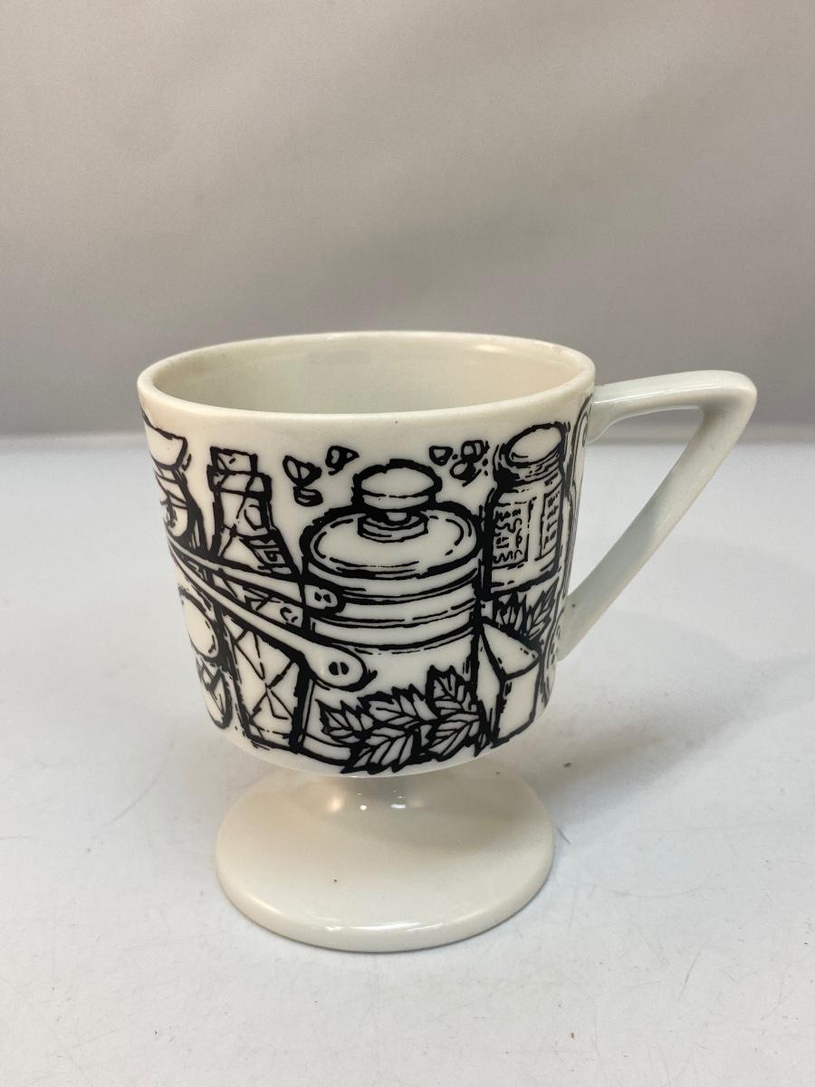 Vintage Retro Black & White Mod Food Pantry Print Pedestal Coffee Cup Mug Japan