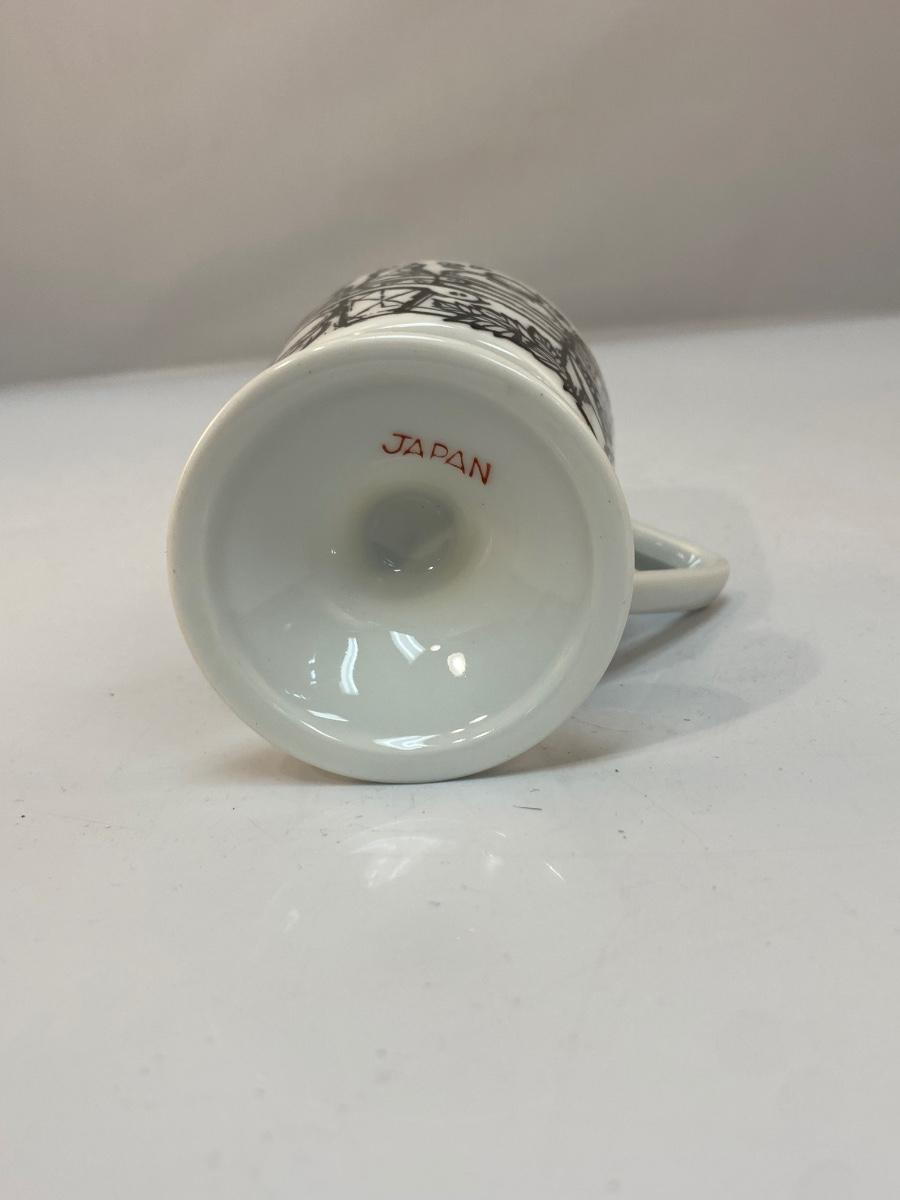 Vintage Retro Black & White Mod Food Pantry Print Pedestal Coffee Cup Mug. In good condition. Stamped Japan on the bottom.