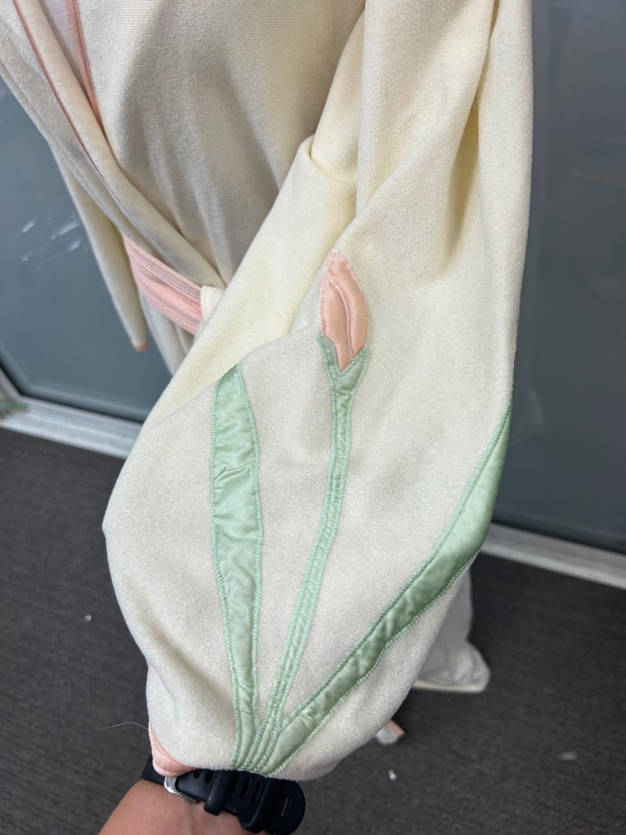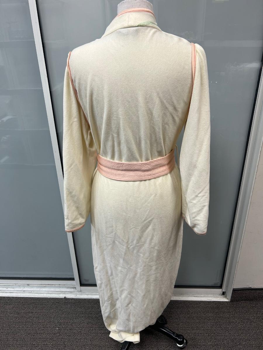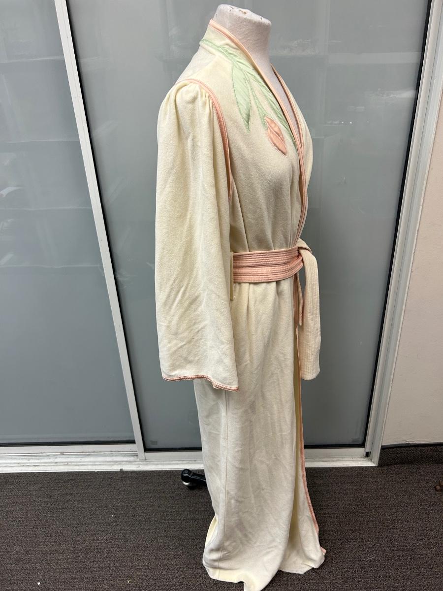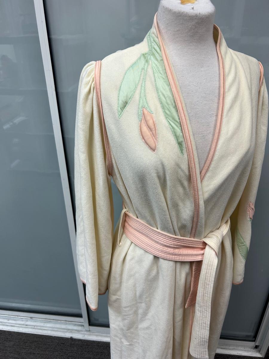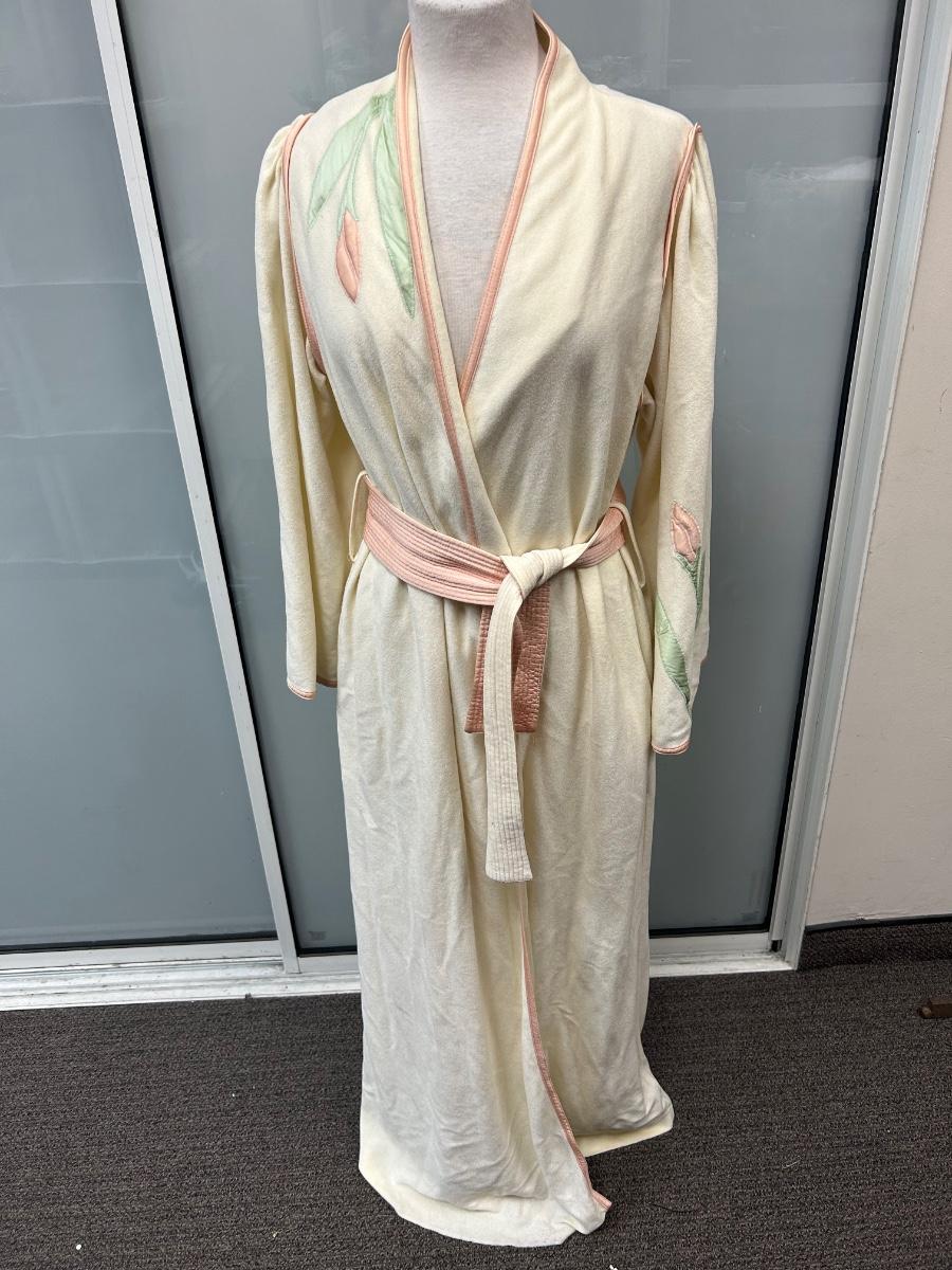 Vintage Retro Pale Yellow With Flower Applique Bath Dressing Robe