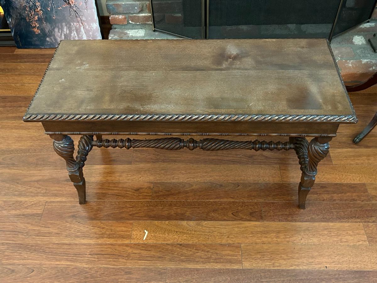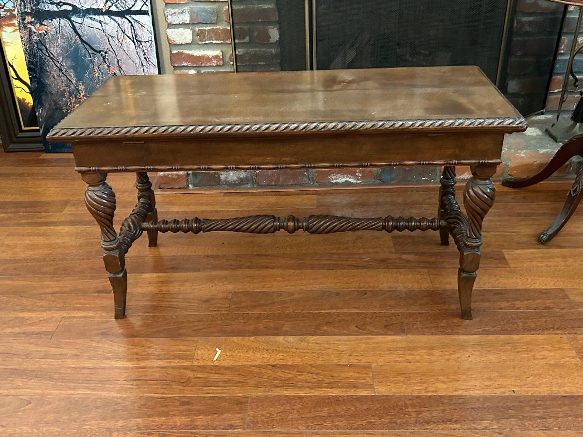 Vintage HR Sadler Furniture Co. Wood Storage Bench Seat Table. In vintage condition. Top is hinged with storage like a piano bench. Would work great as a table or bench seat.
