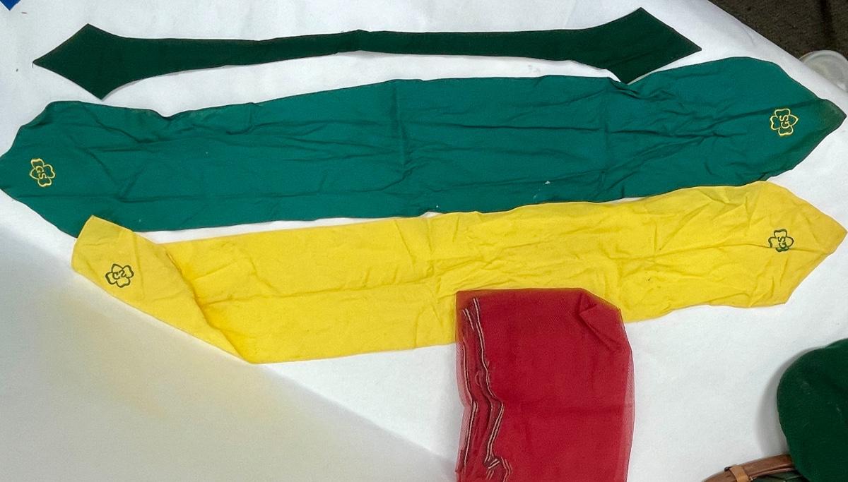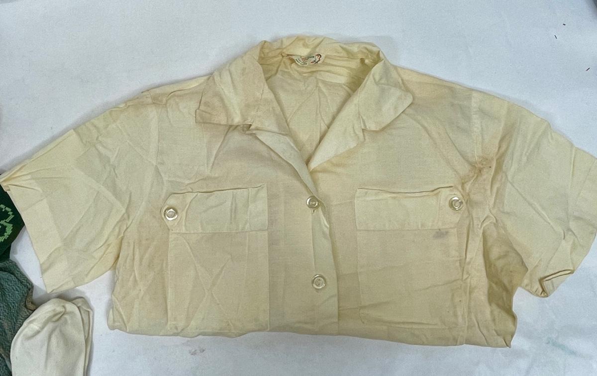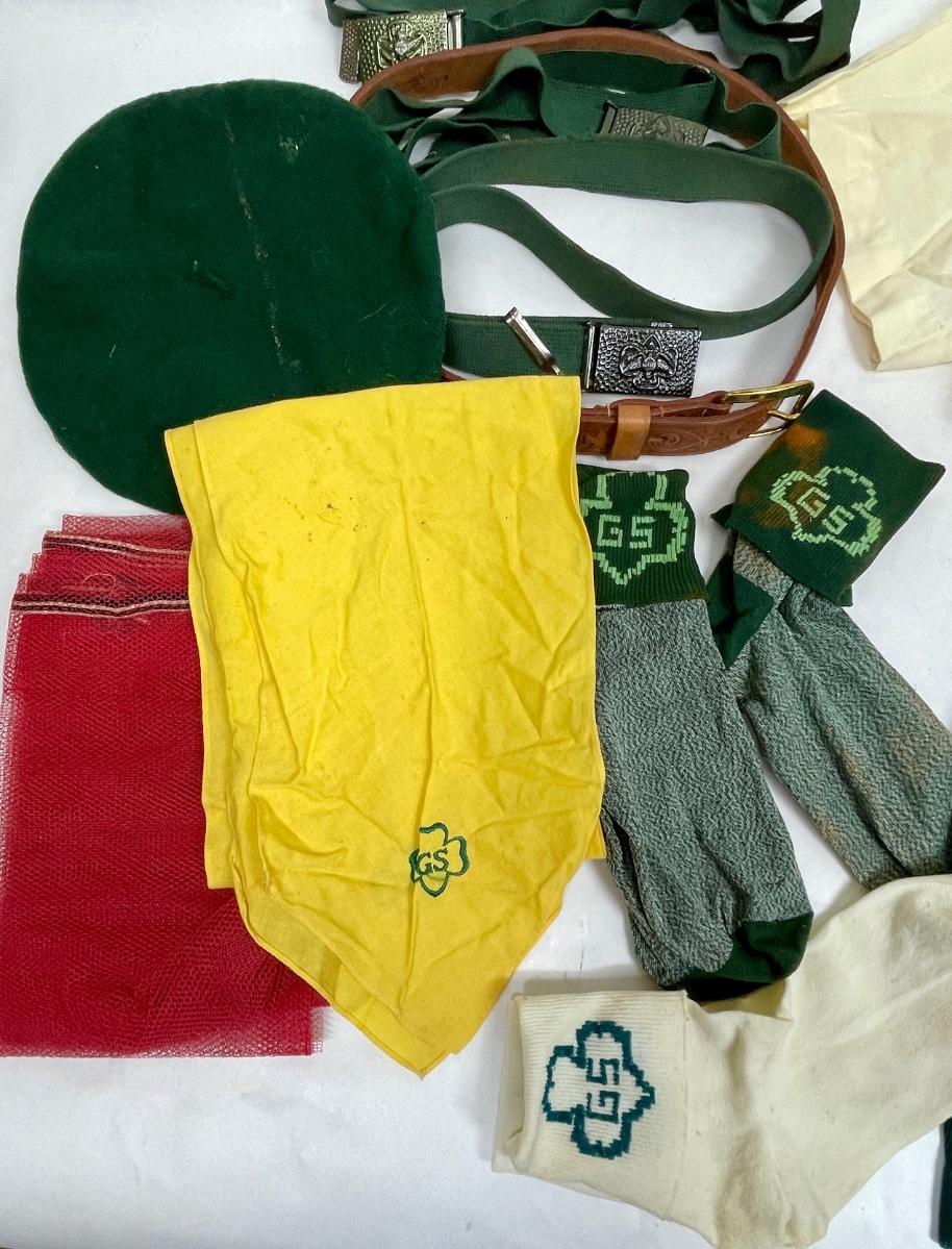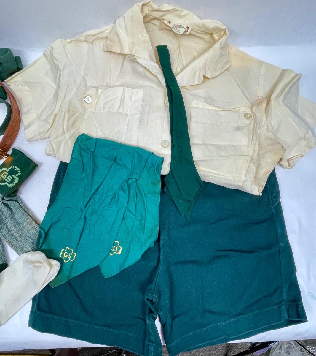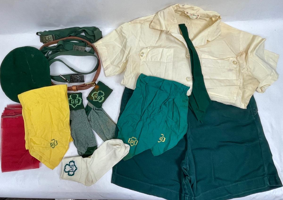 Vintage Girl Scout Uniform Lot - Shorts, Blouse, belts, socks, tie, beret, sashes, dunk bag