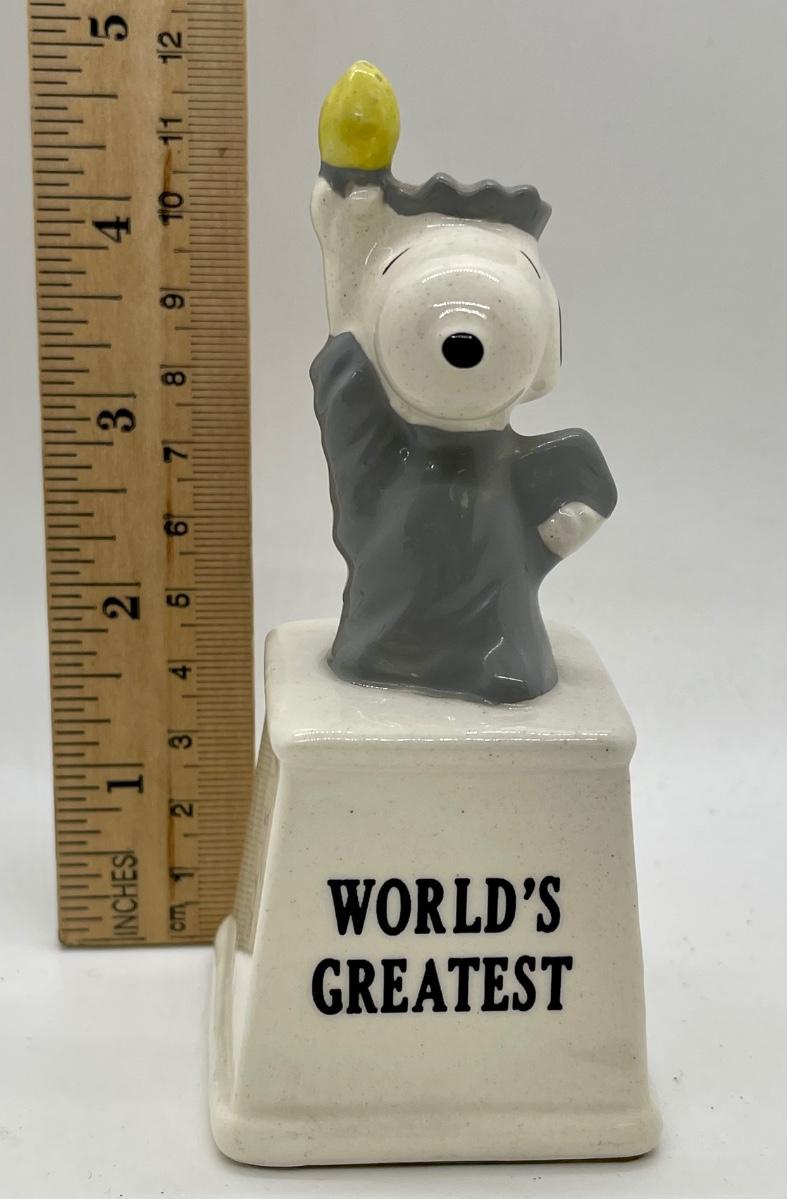 Vintage Peanuts Snoopy World's Greatest Figurine. In good condition. Snoopy is dressed like the Statue of Liberty.