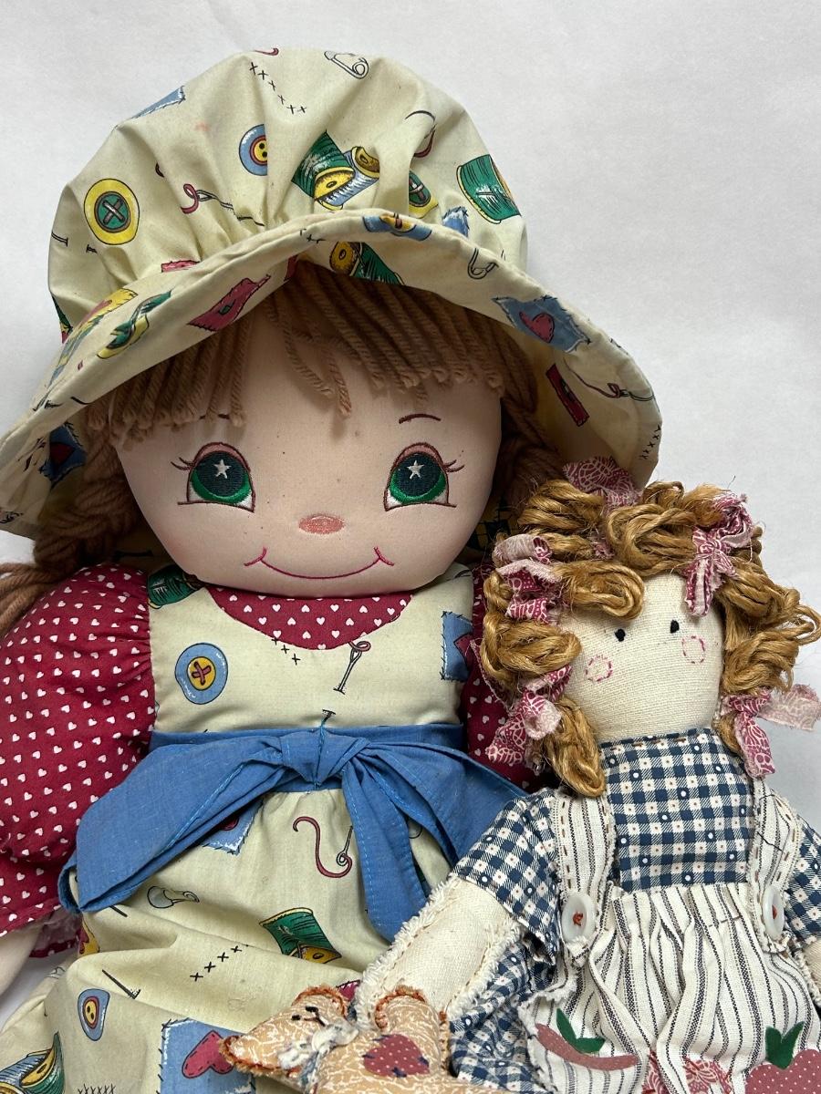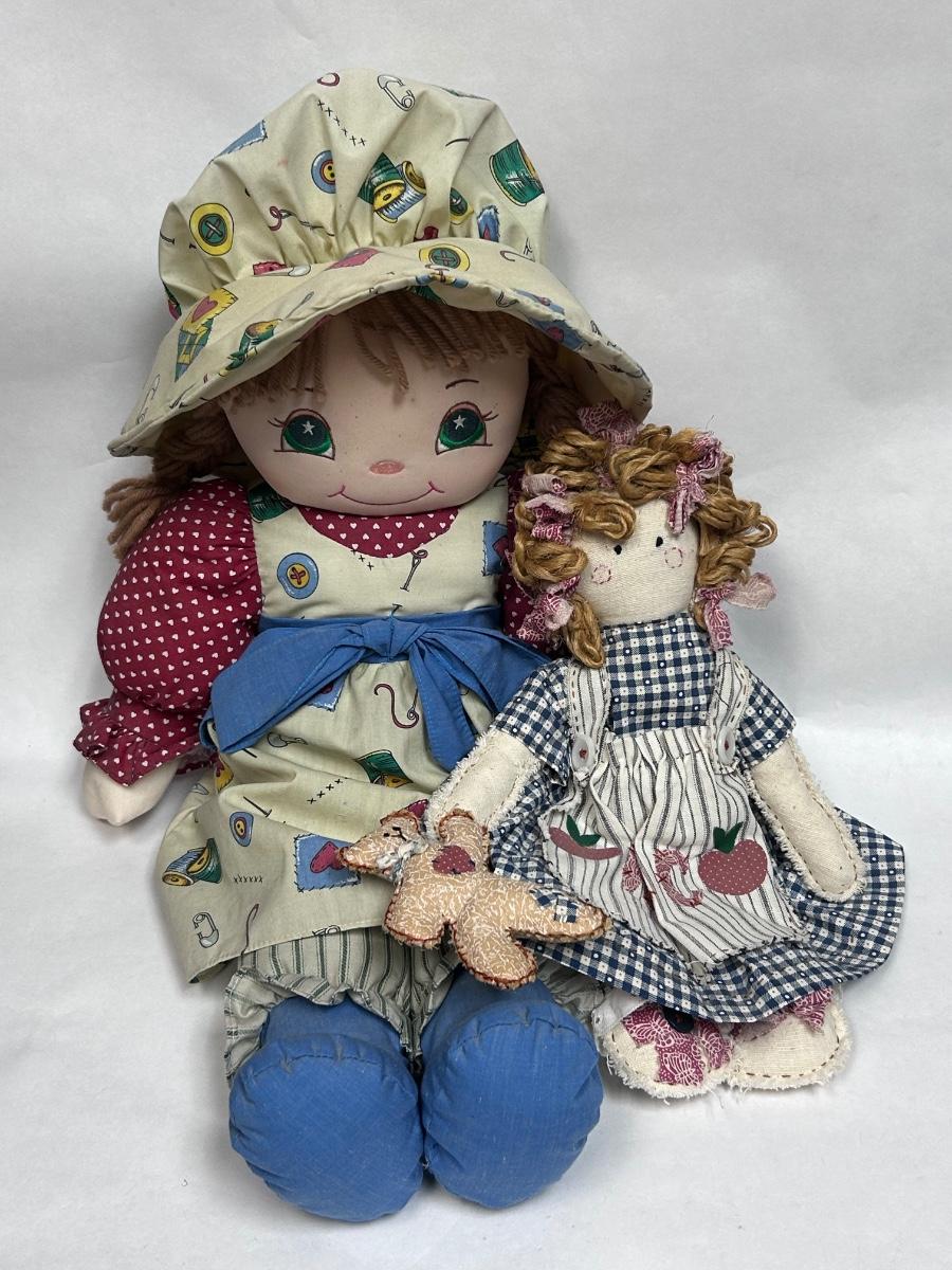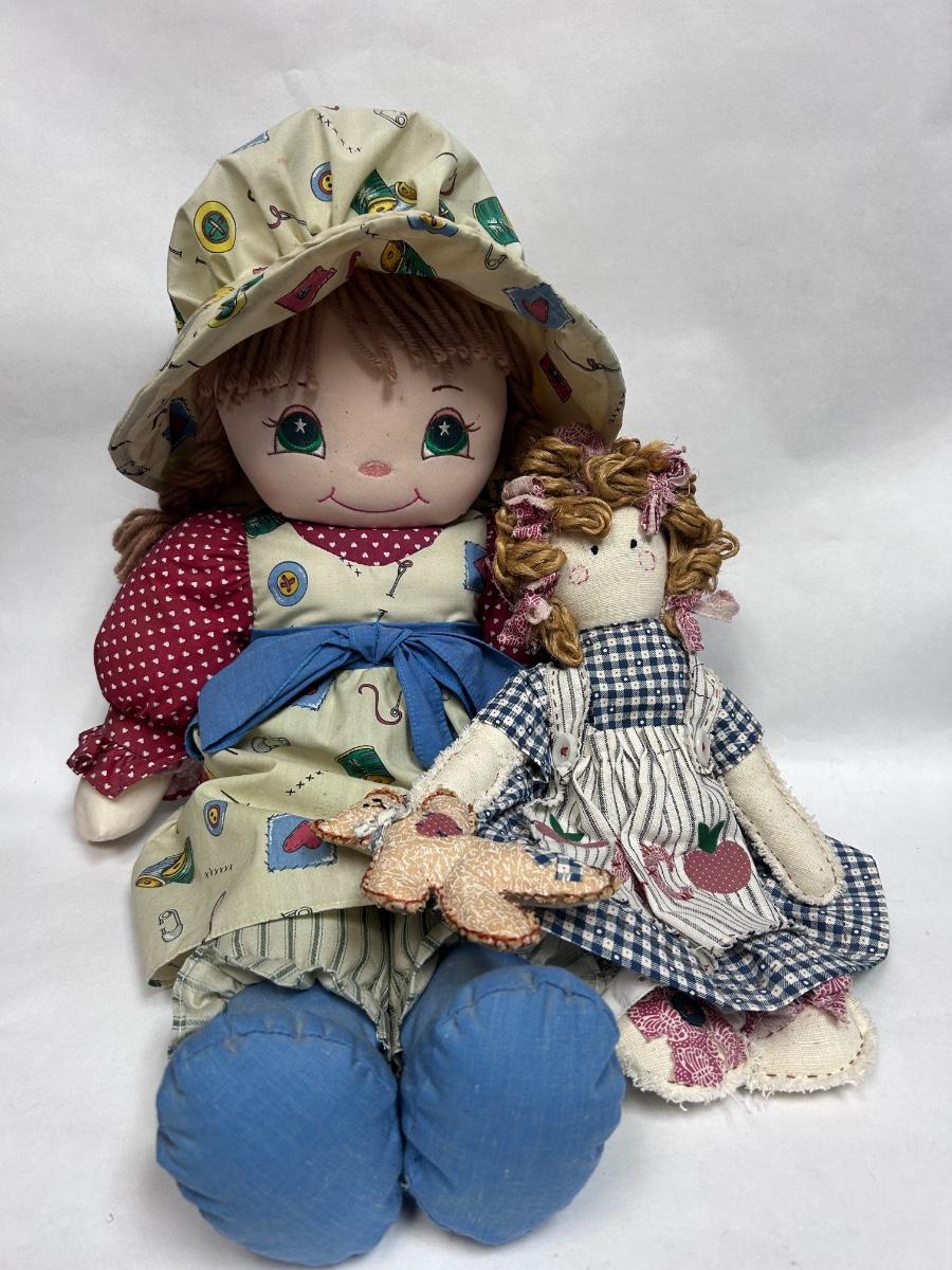 Pair of Folk Art Style Cloth Rag Dolls Homespun Cupboard Collection. In good condition. No holes or stains. May be dusty from display.