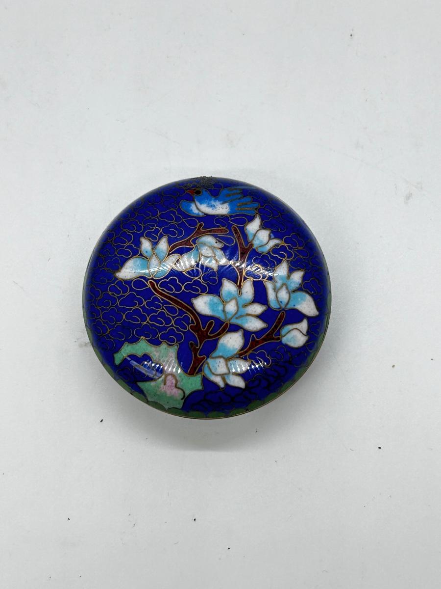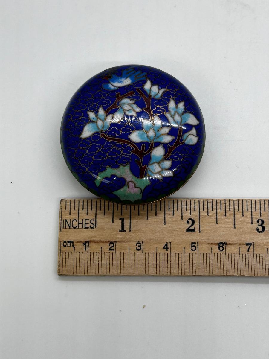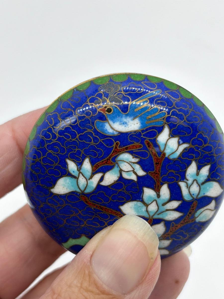Small Round Cloisonne Enamel on Brass Trinket Box Bird with Flowers