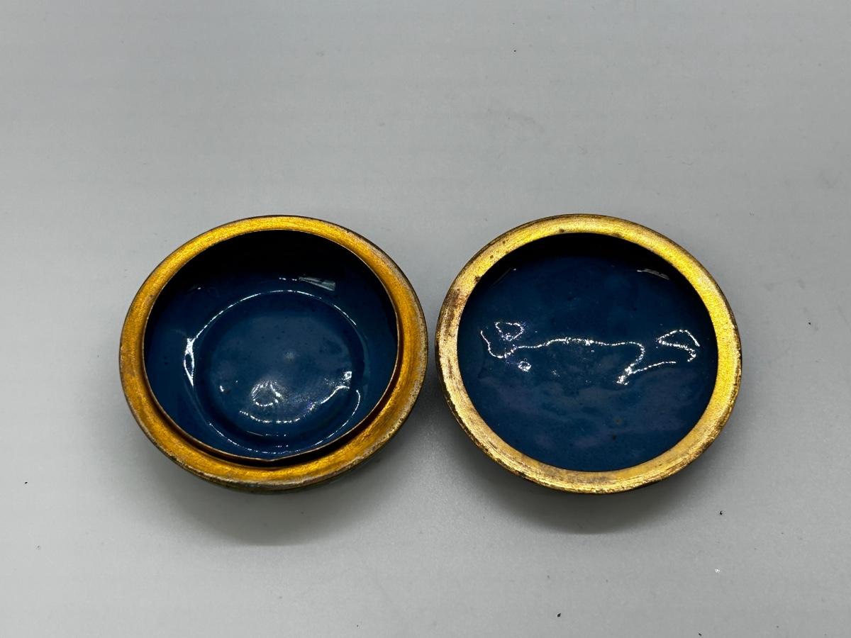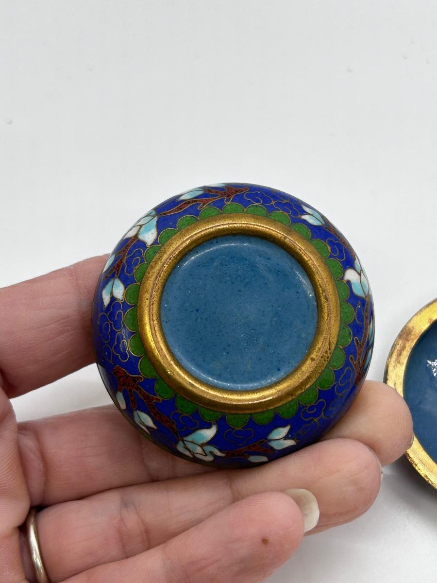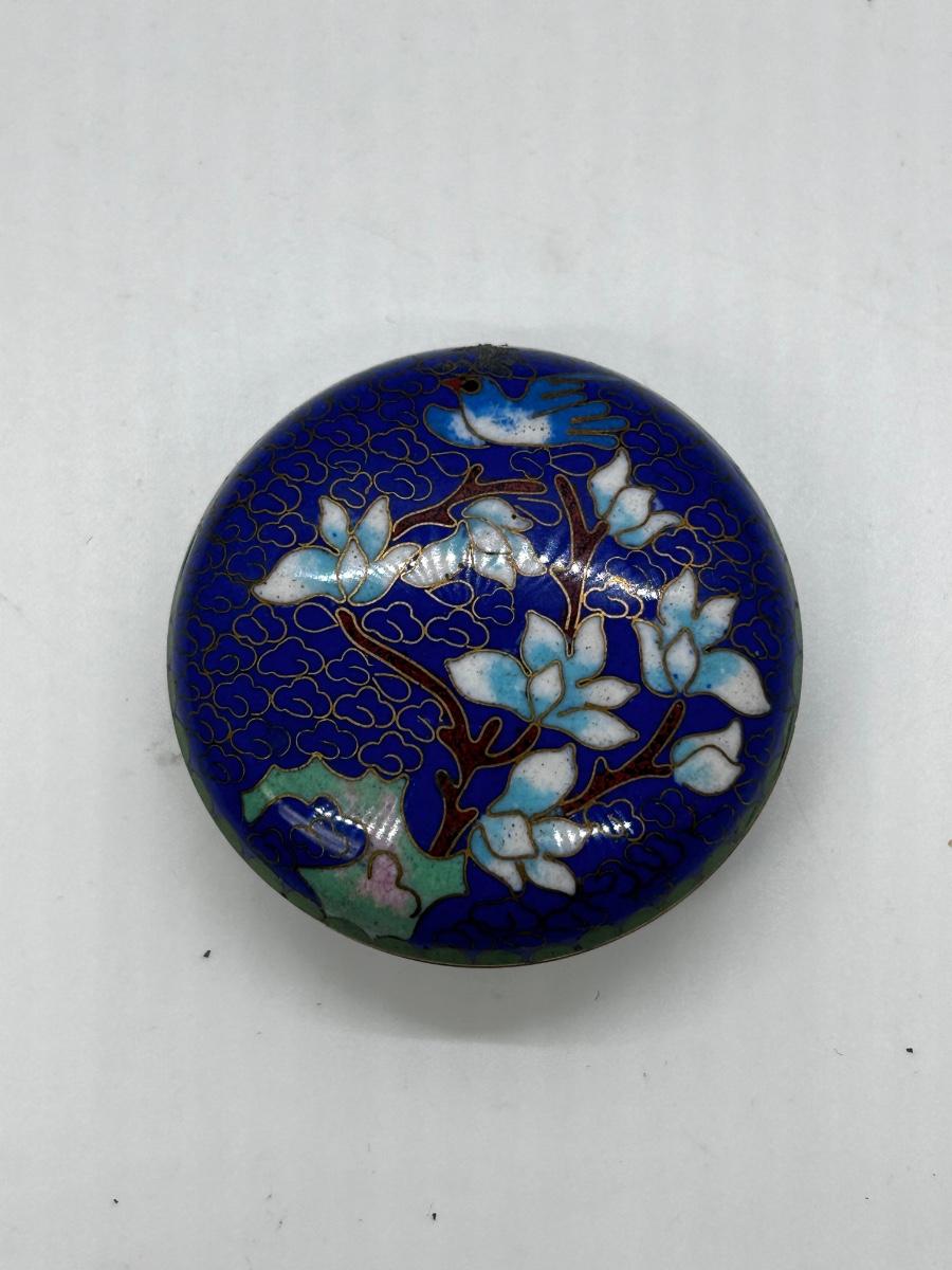 Small Round Cloisonne Enamel on Brass Trinket Box Bird with Flowers