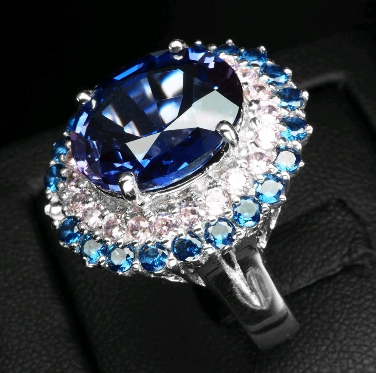 BI COLOR BLUE PURPLE SAPPHIRE 7.95CT 925 STERLING SILVER WHITE GOLD PLATED RING