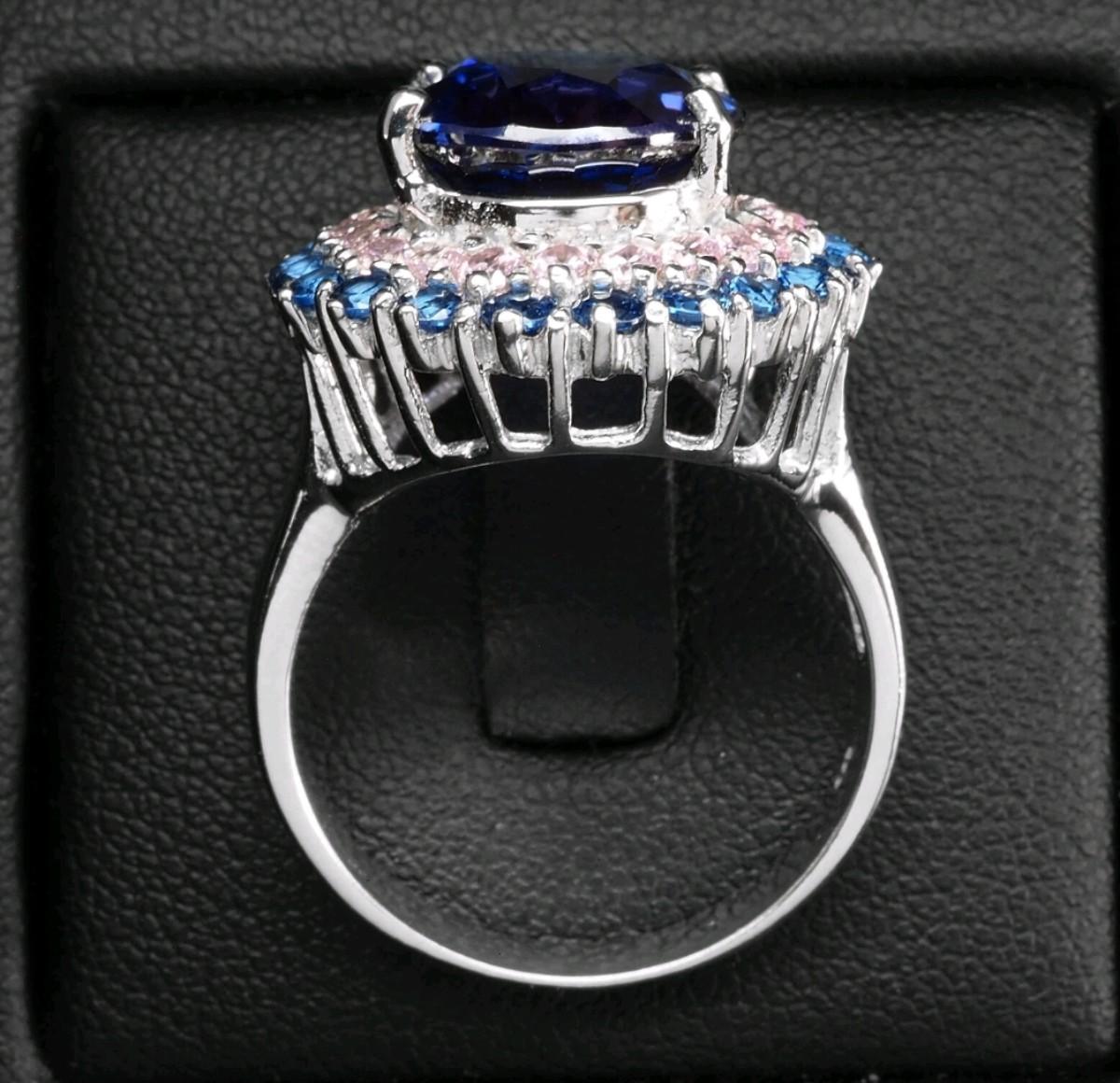 BI COLOR BLUE PURPLE SAPPHIRE 7.95CT 925 STERLING SILVER WHITE GOLD PLATED RING