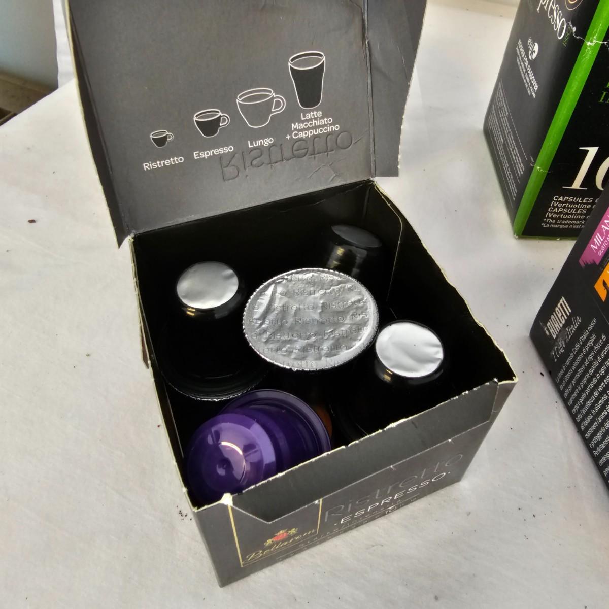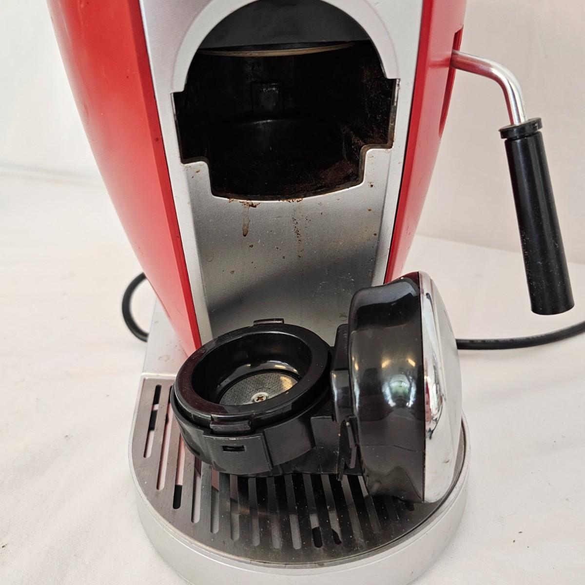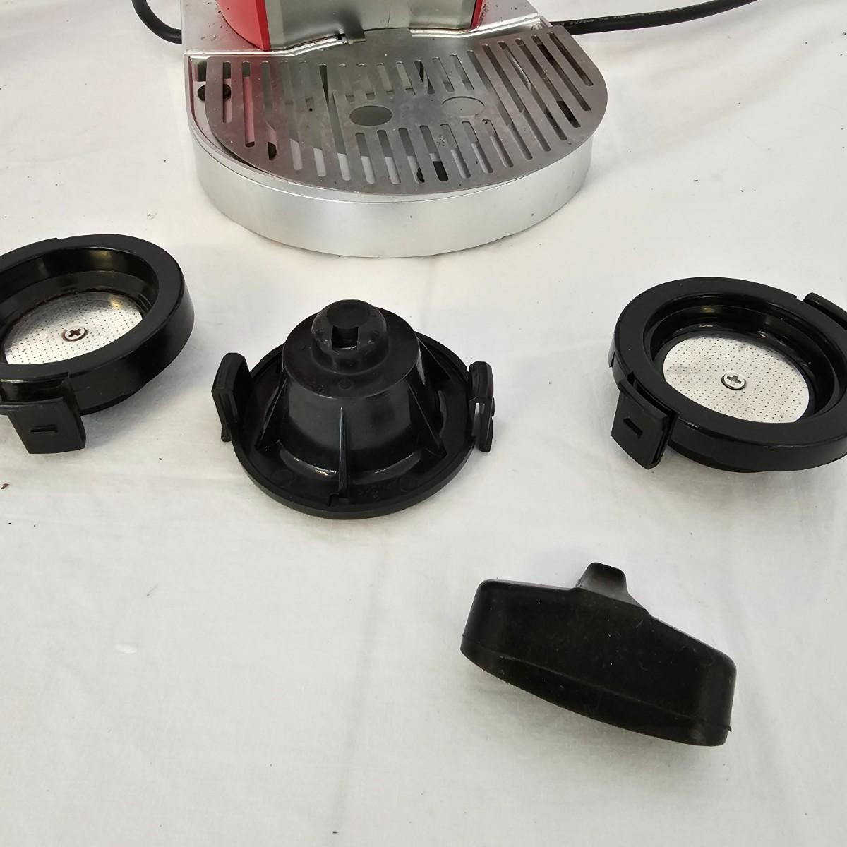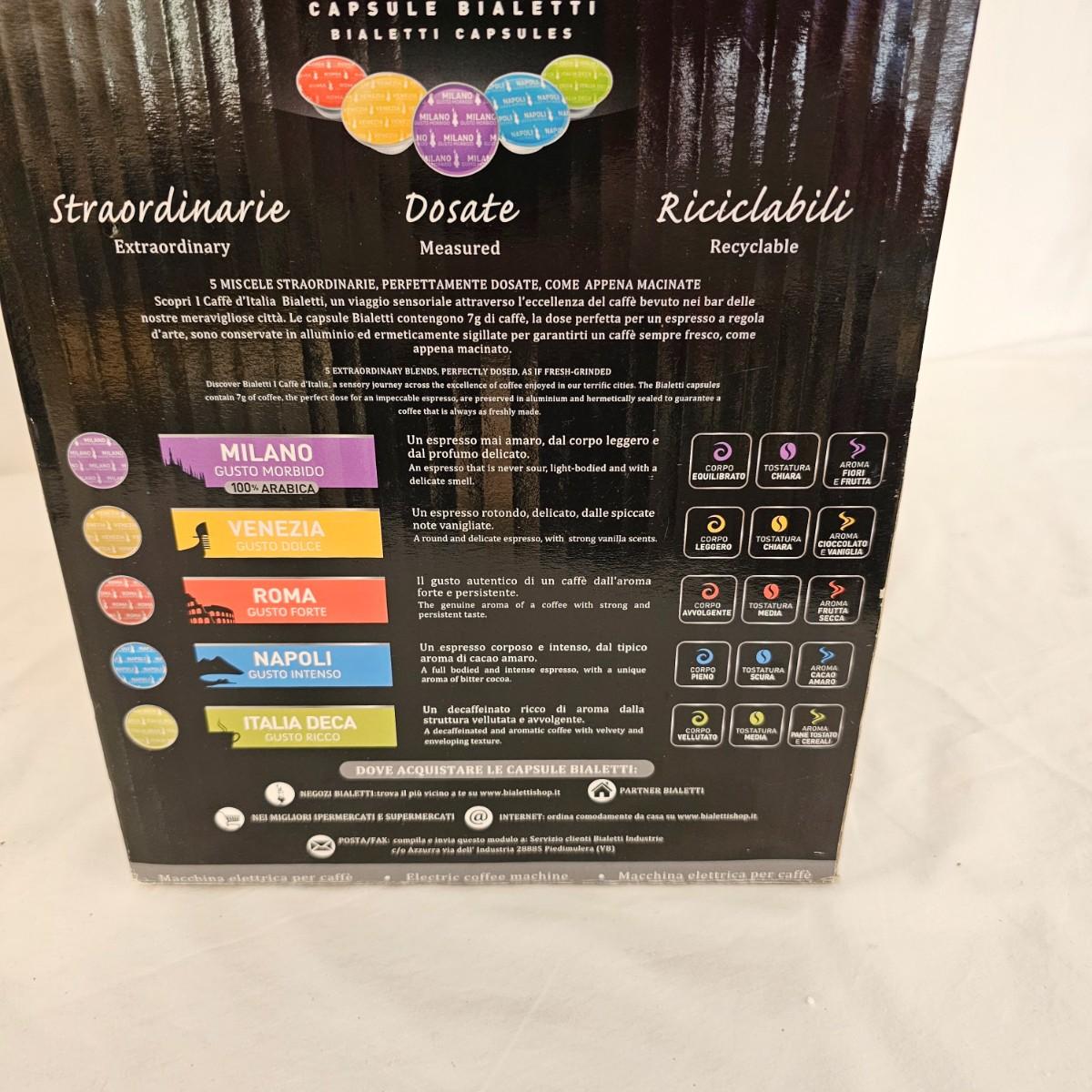 The Bialetti Trio System machine. Uses capsules, pods or ground coffee. Comes with an assortment of coffee pods and in original packaging. Includes Bialetti bag. Unable to test unit as it has European style plug and will require an adapter to use in the USA. All items in red bag measure approximately 20.5" x 10" x 15"H Shipping available.