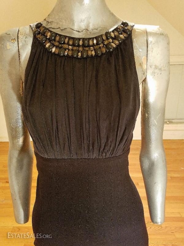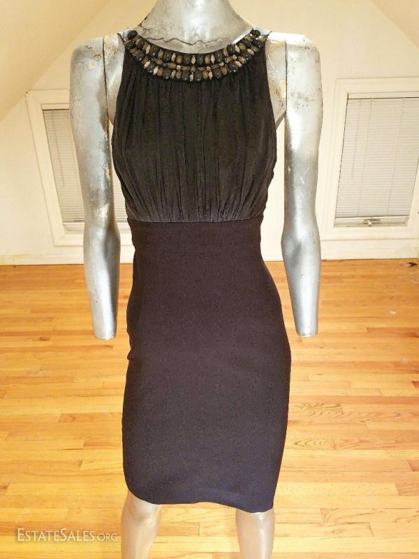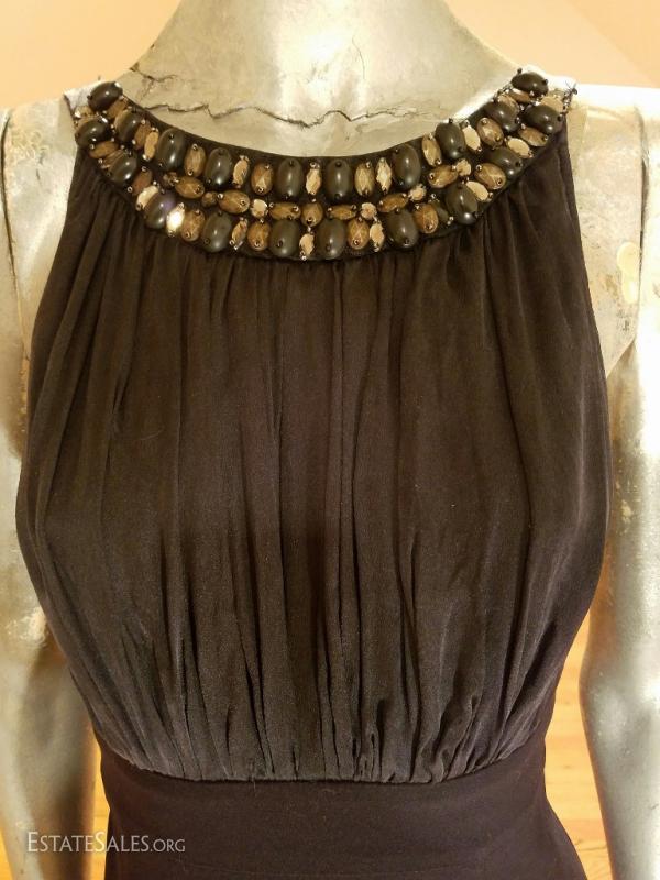 A beauty by Maria Bianca nero black silk and viscose cocktail dress with heavy beading embellished collar.. New wave look