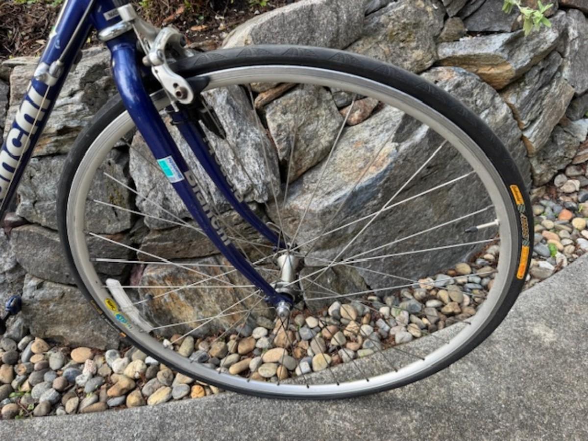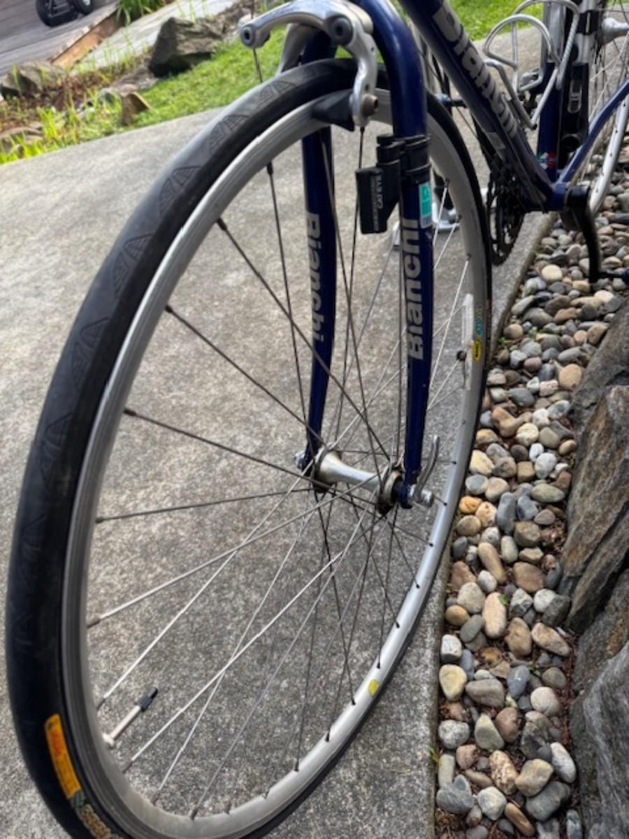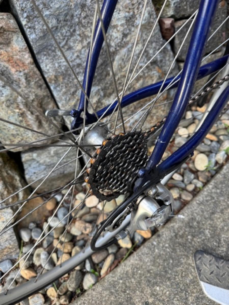 Chain is a little rusty on the bike and the tires need to be pumped up.