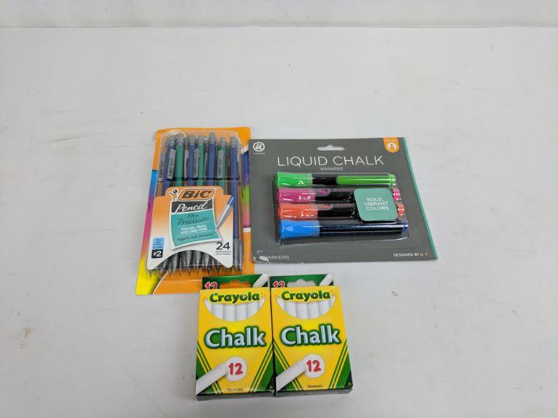 Bic Pencils (24), Liquid Chalk (4), 2 Pks Chalk (12 PC each) - New