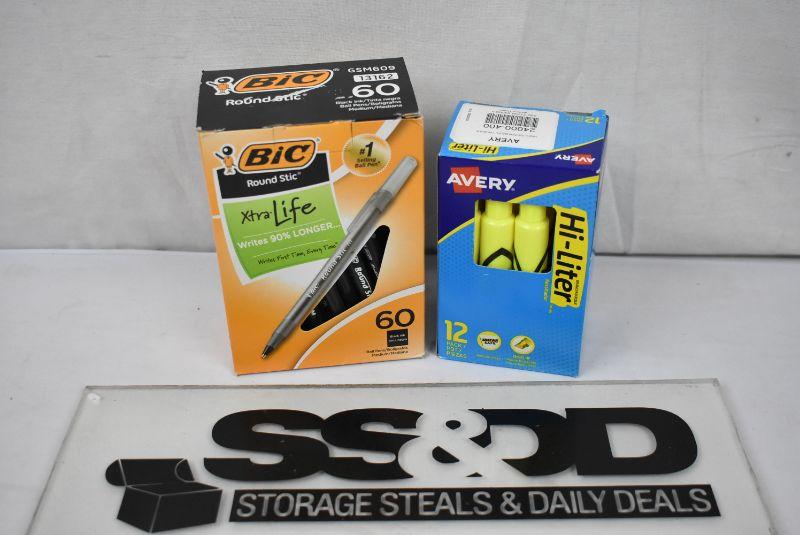 BIC Round Stic Xtra Life Ball Pen AND Avery Yellow Hi-Lighters - New