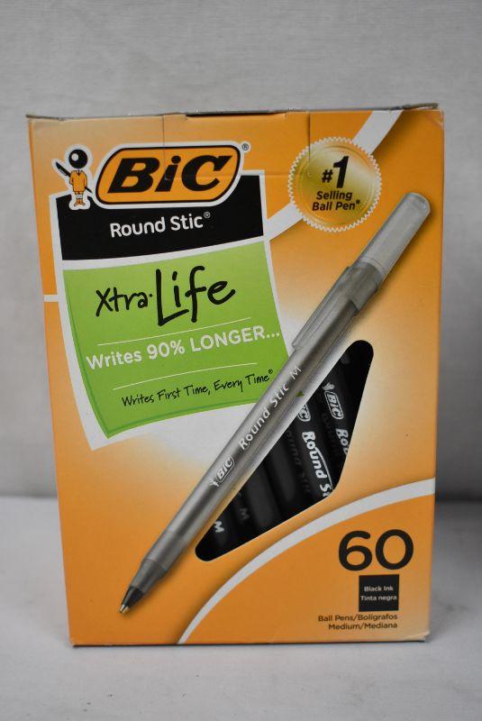 BIC Round Stic Xtra Life Ball Pen, Medium Point (1.0mm), Black, 60 Count AND Avery Hi-Lighters, 12 pack of yellow - New