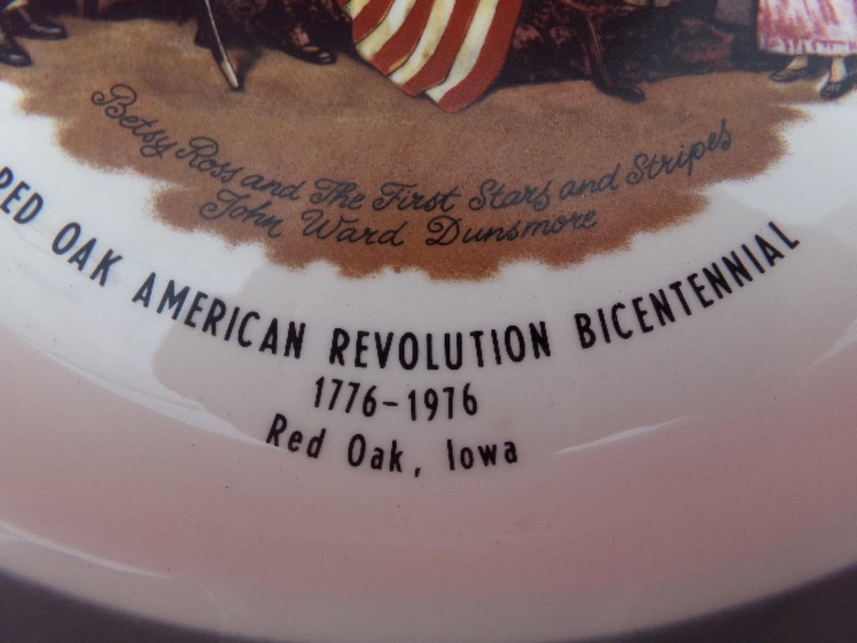 Bi-Centennial commemorative plate 1776-1976 from Red Oak IA. About 10" dia, EX