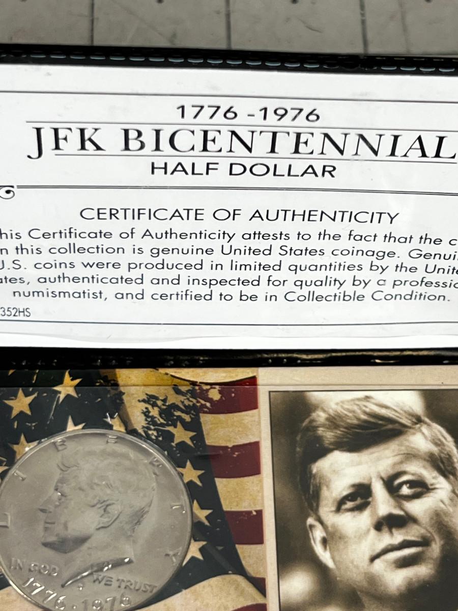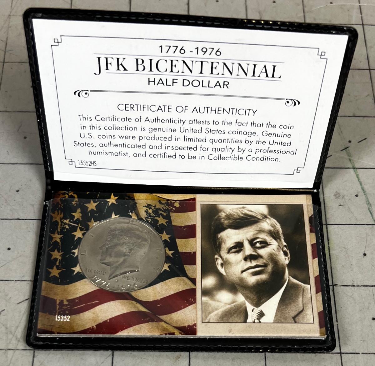 Bicentennial JF K Half Dollar With A COA in A presentation Case.