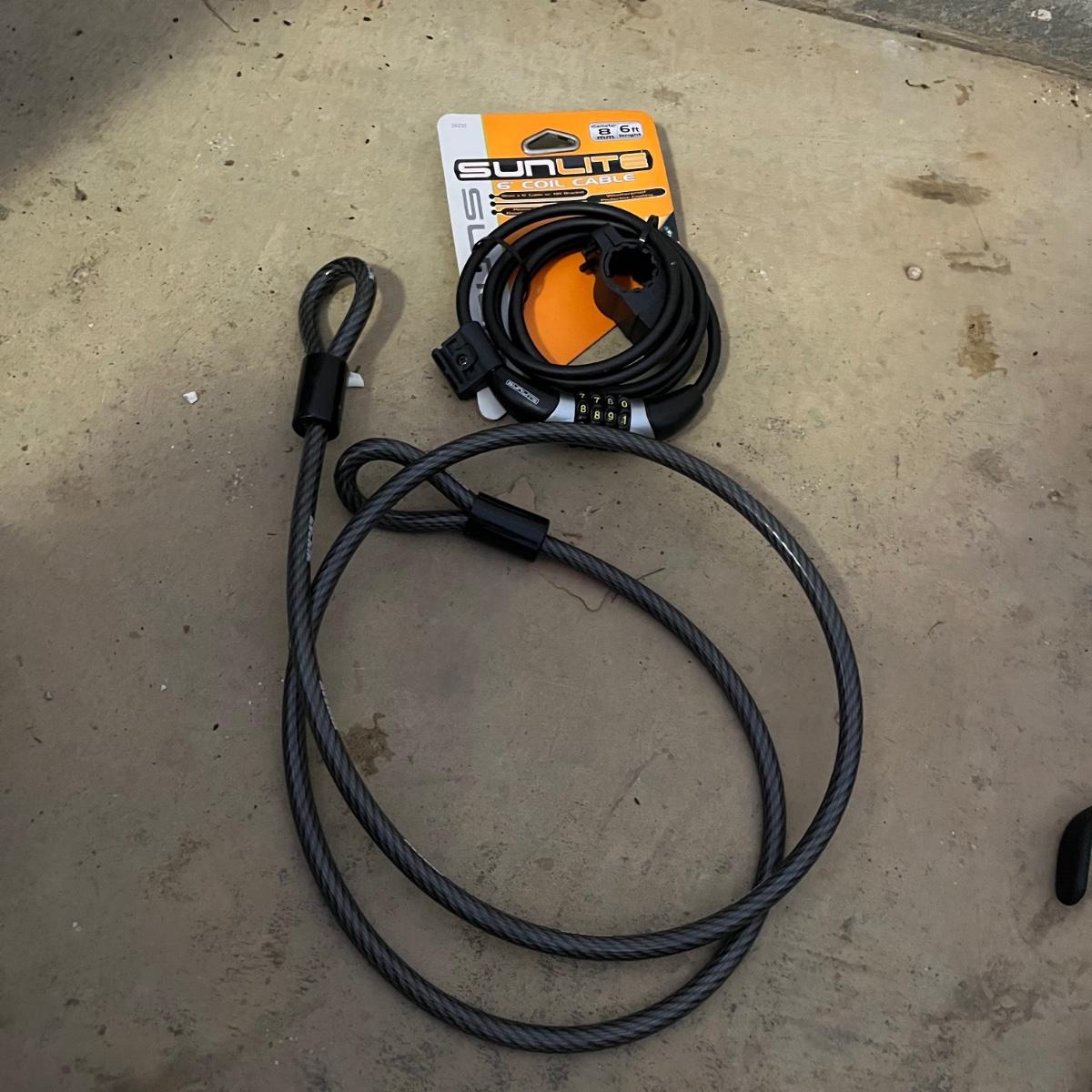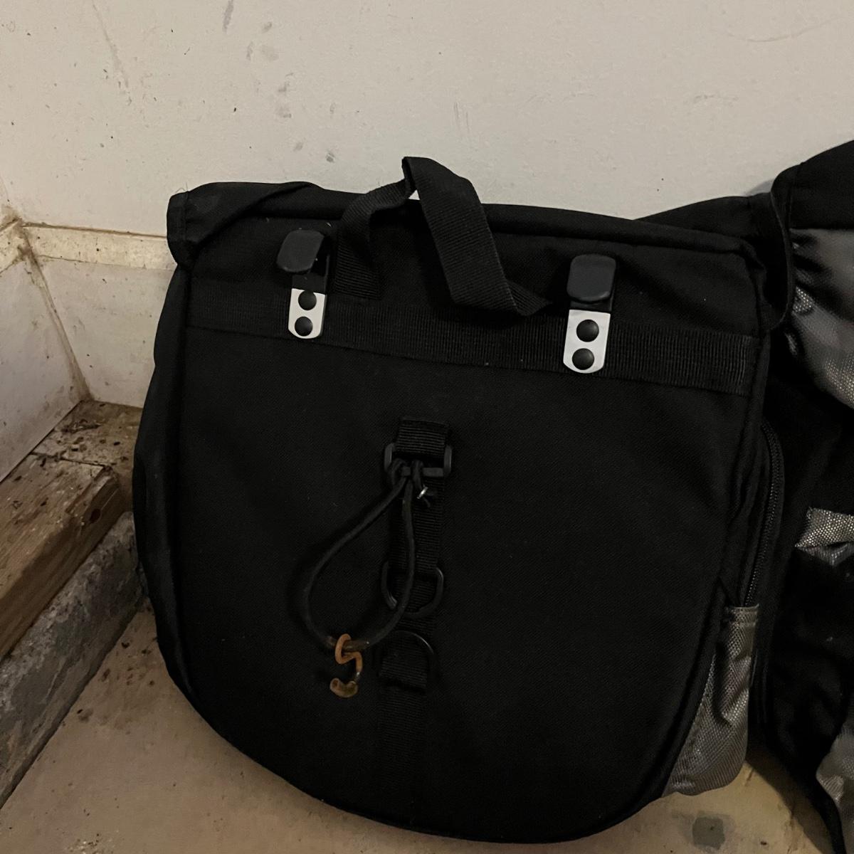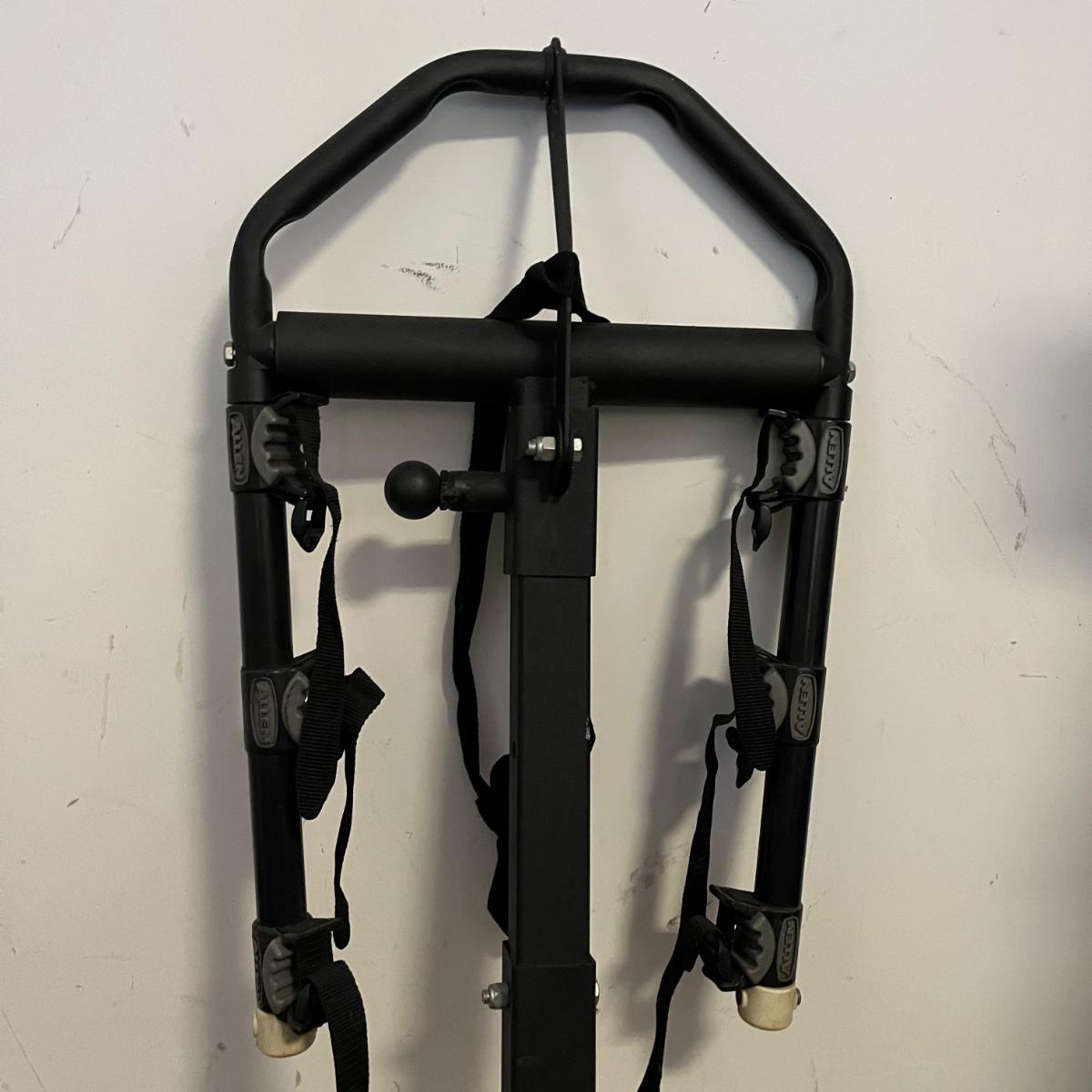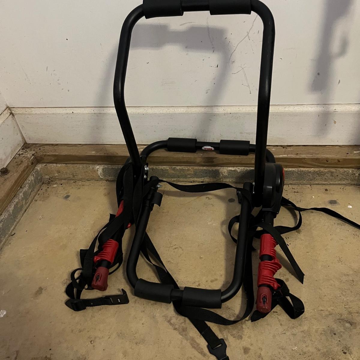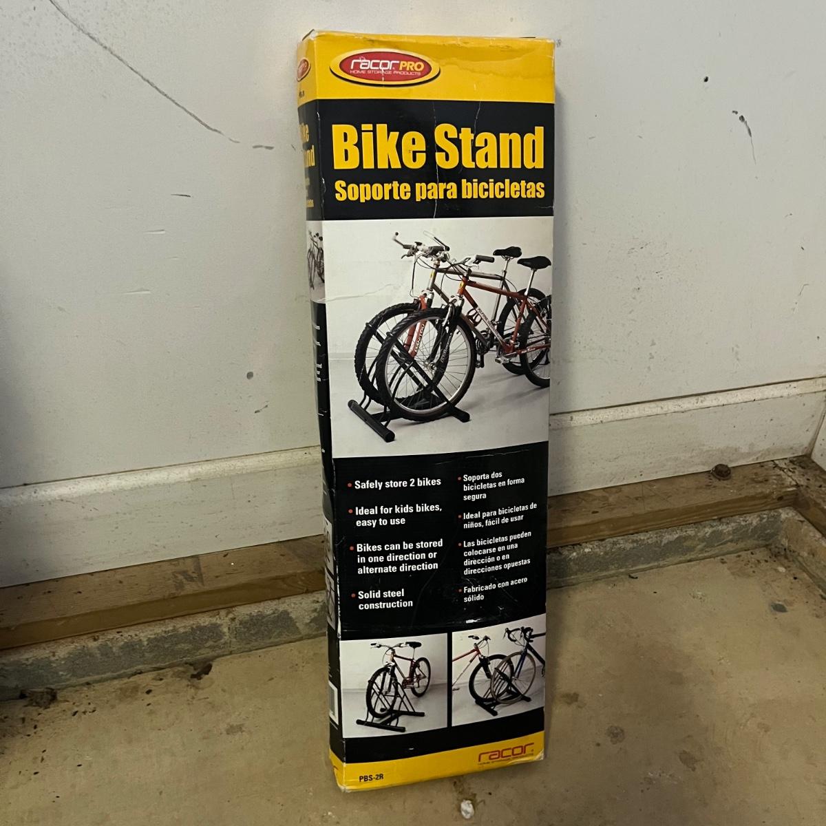 Lot includes bike stand, Allen three bicycle receiver hitch bike rack, Bell bike rack, Giant air pump, Sunlite panniers and rack bag, lock and more.