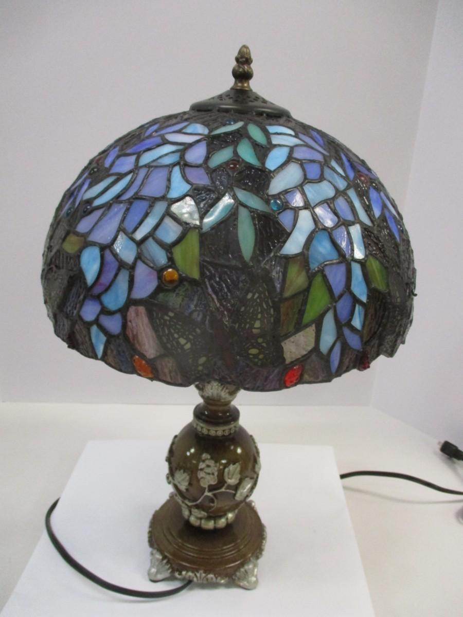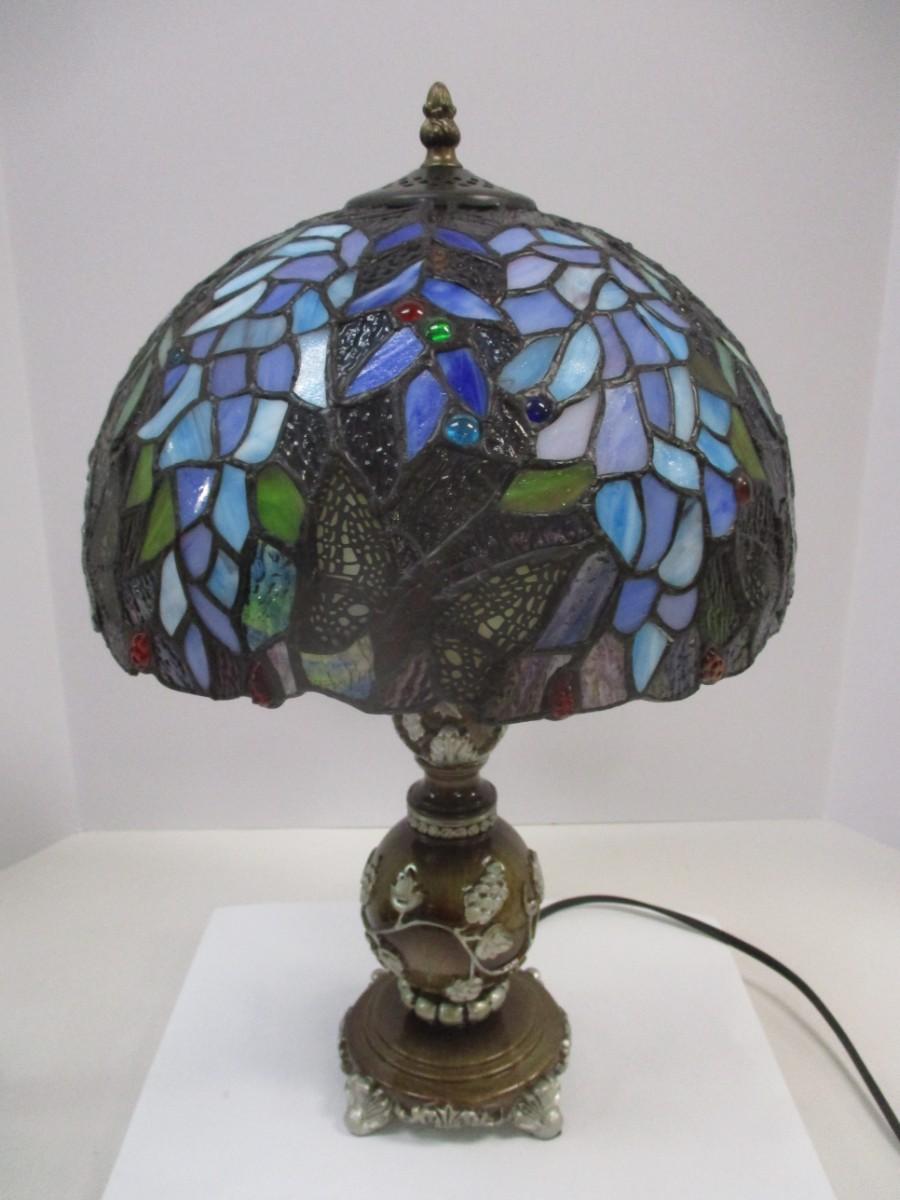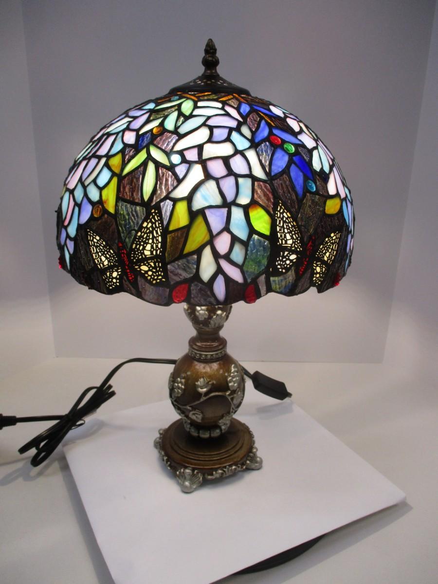 Hand Made Bieye Wisteria Butterflies Tiffany Style Stained Glass Table Lamp