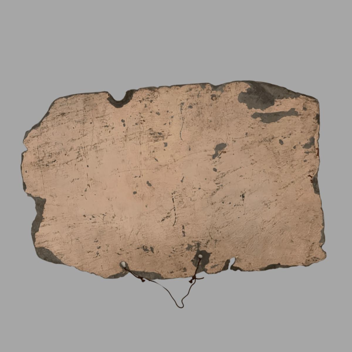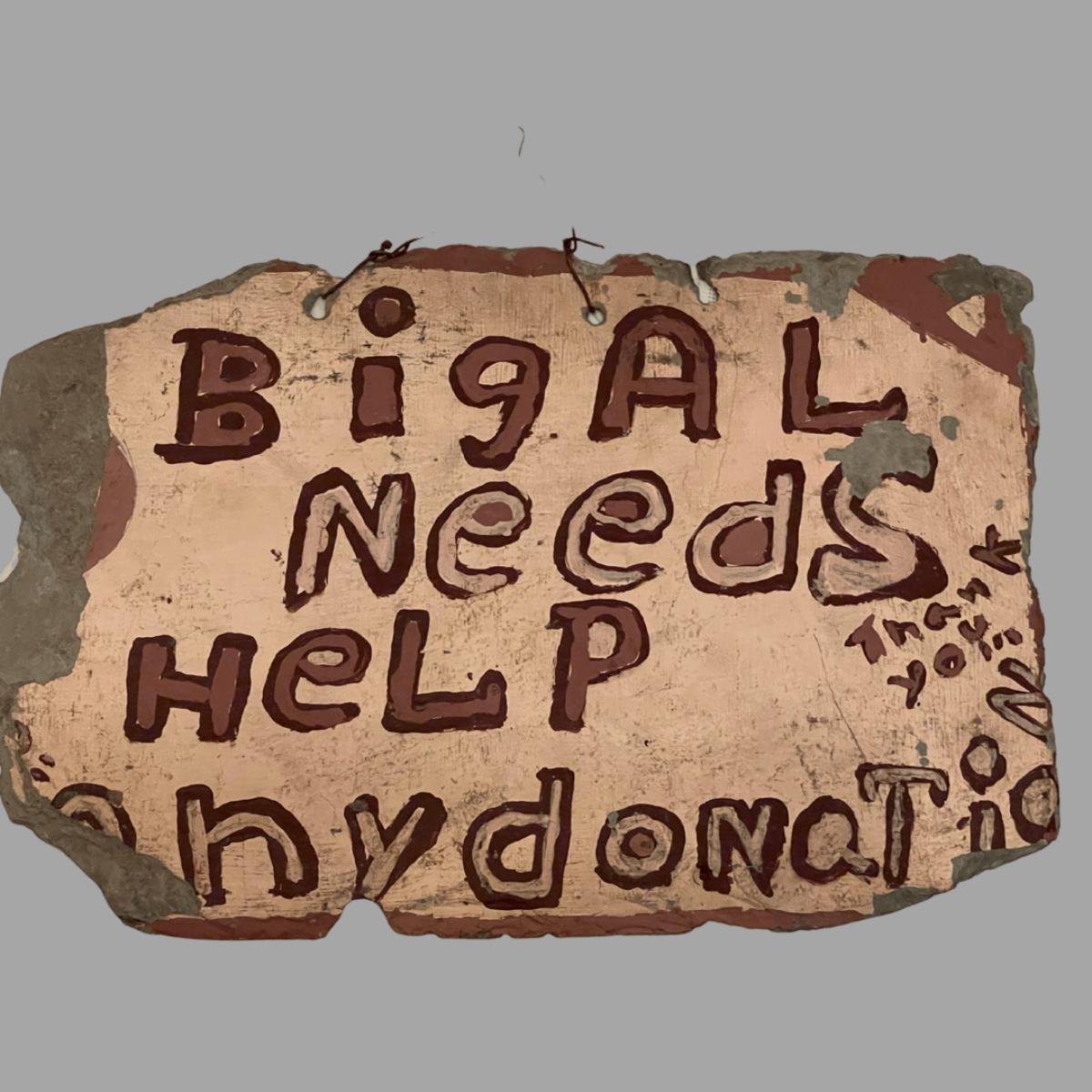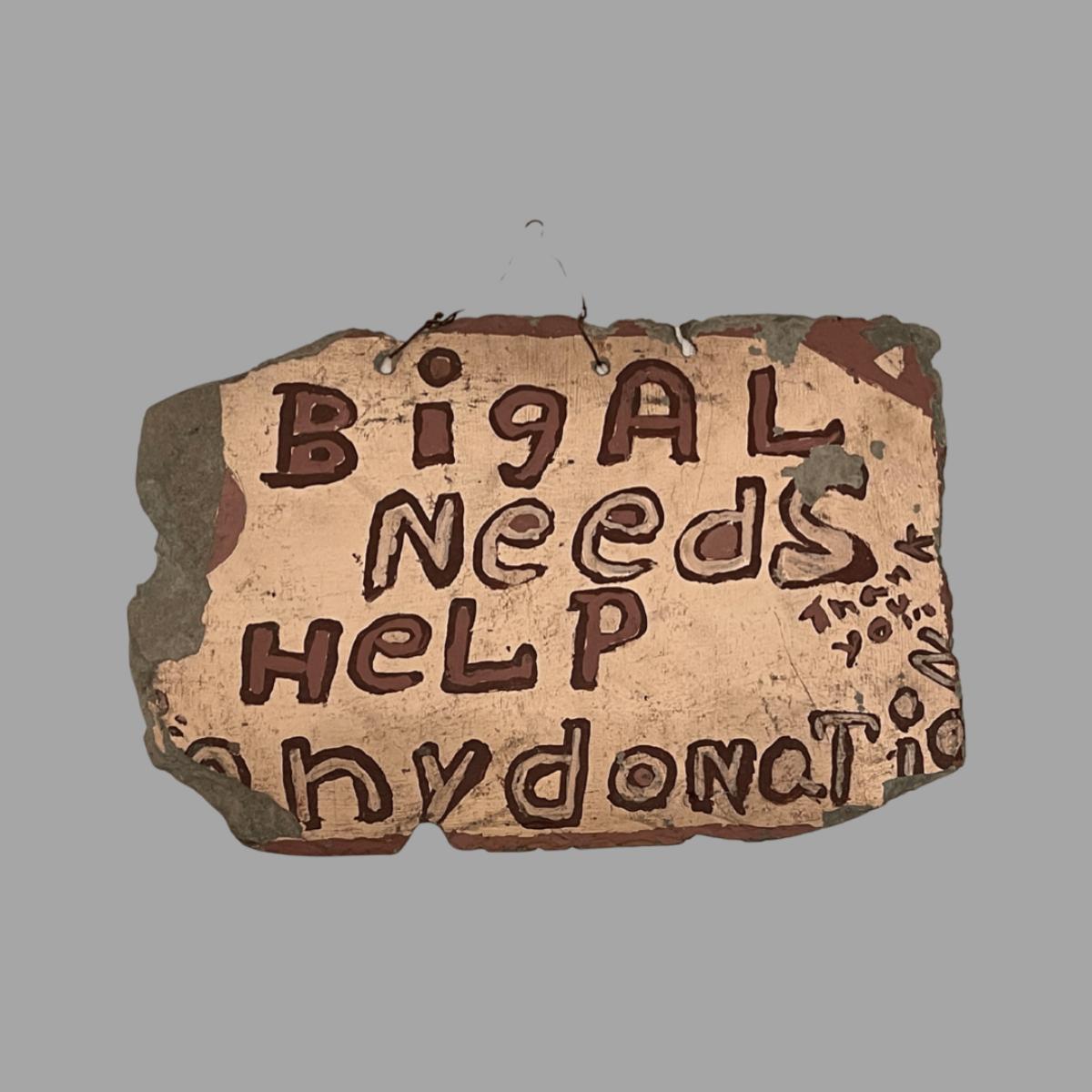 This sign was made by a New Orleans man peddling in the city. Instead of using cardboard boxes like they do today, he found a piece of slate lying in the street and put his message on there. Measures 11 x 16.