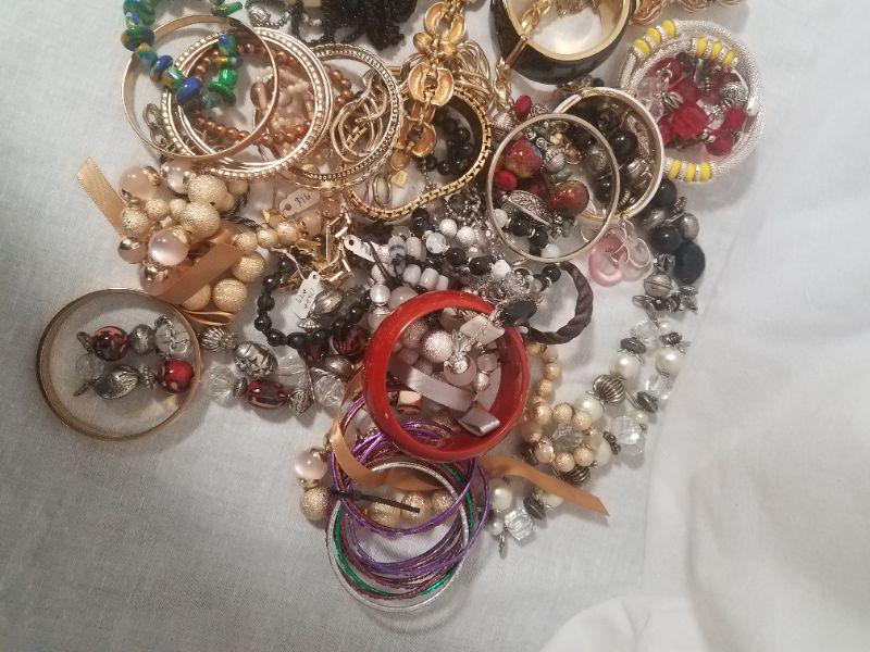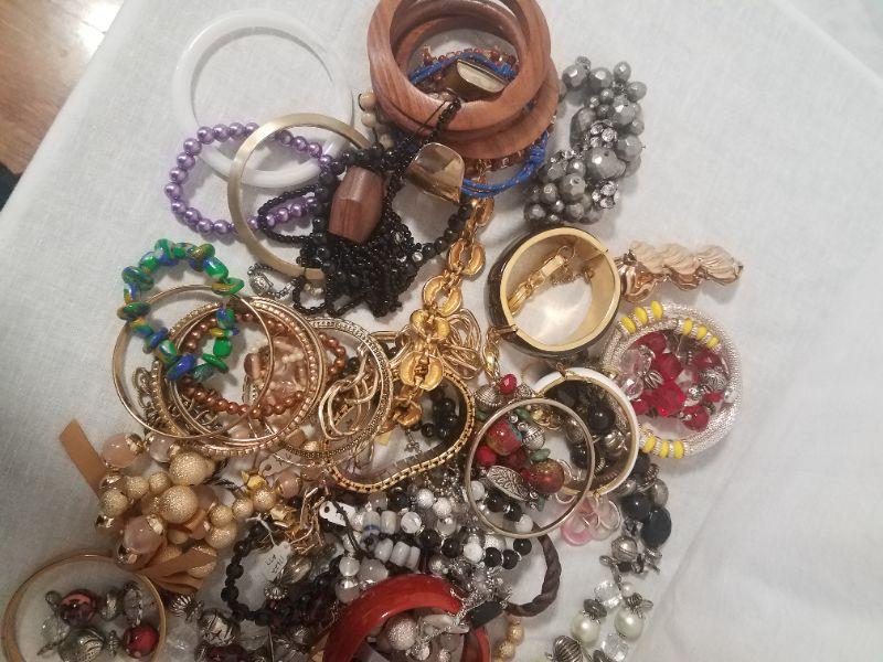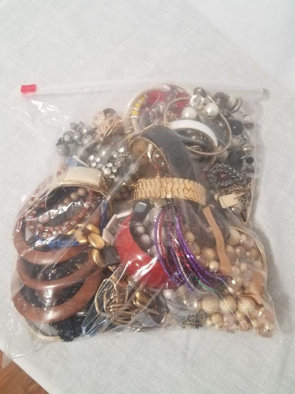 a little of 3 pounds of various bracelets. great for use, resell or crafting!