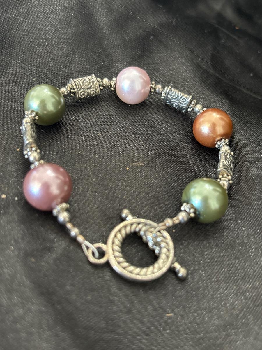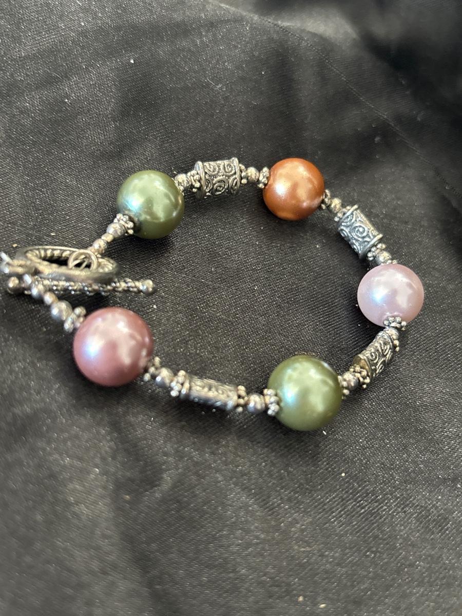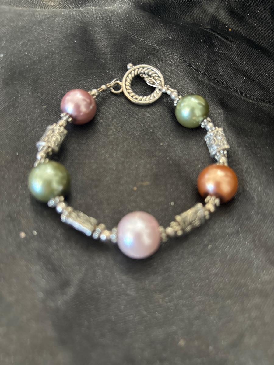 Big beaded silver tone bracelet