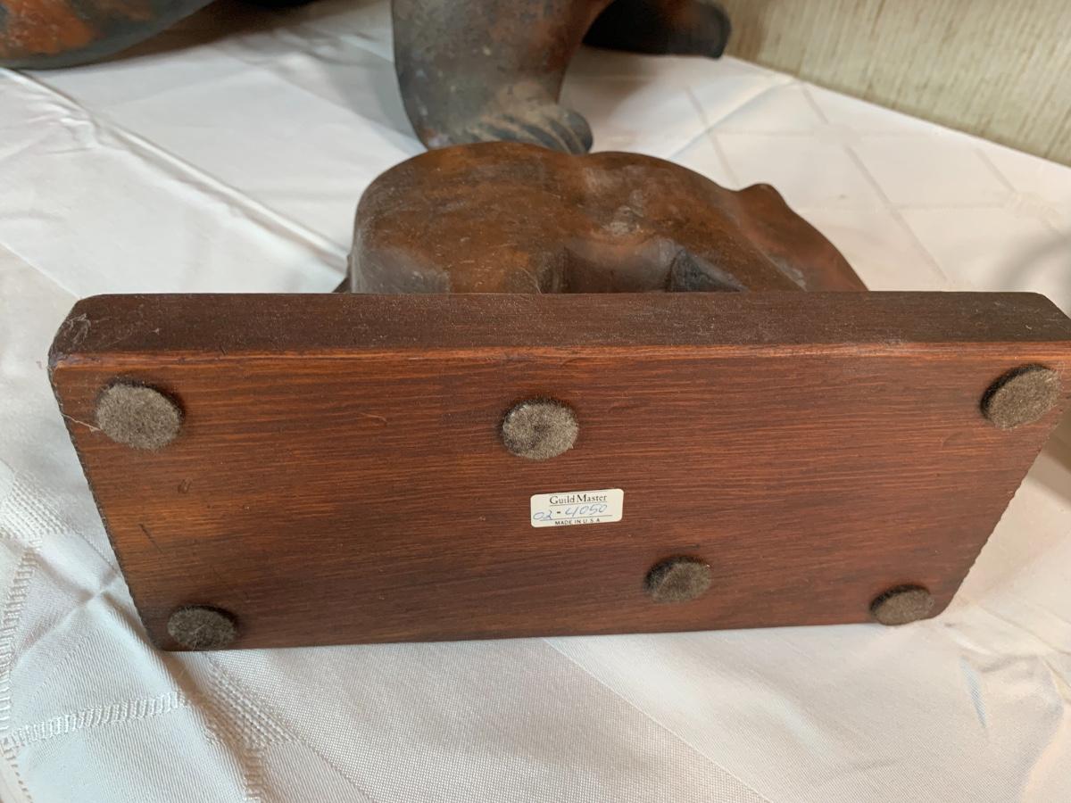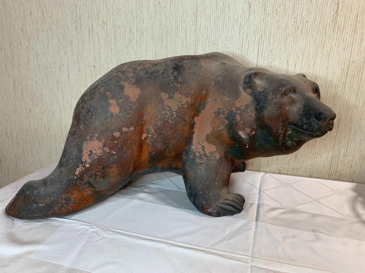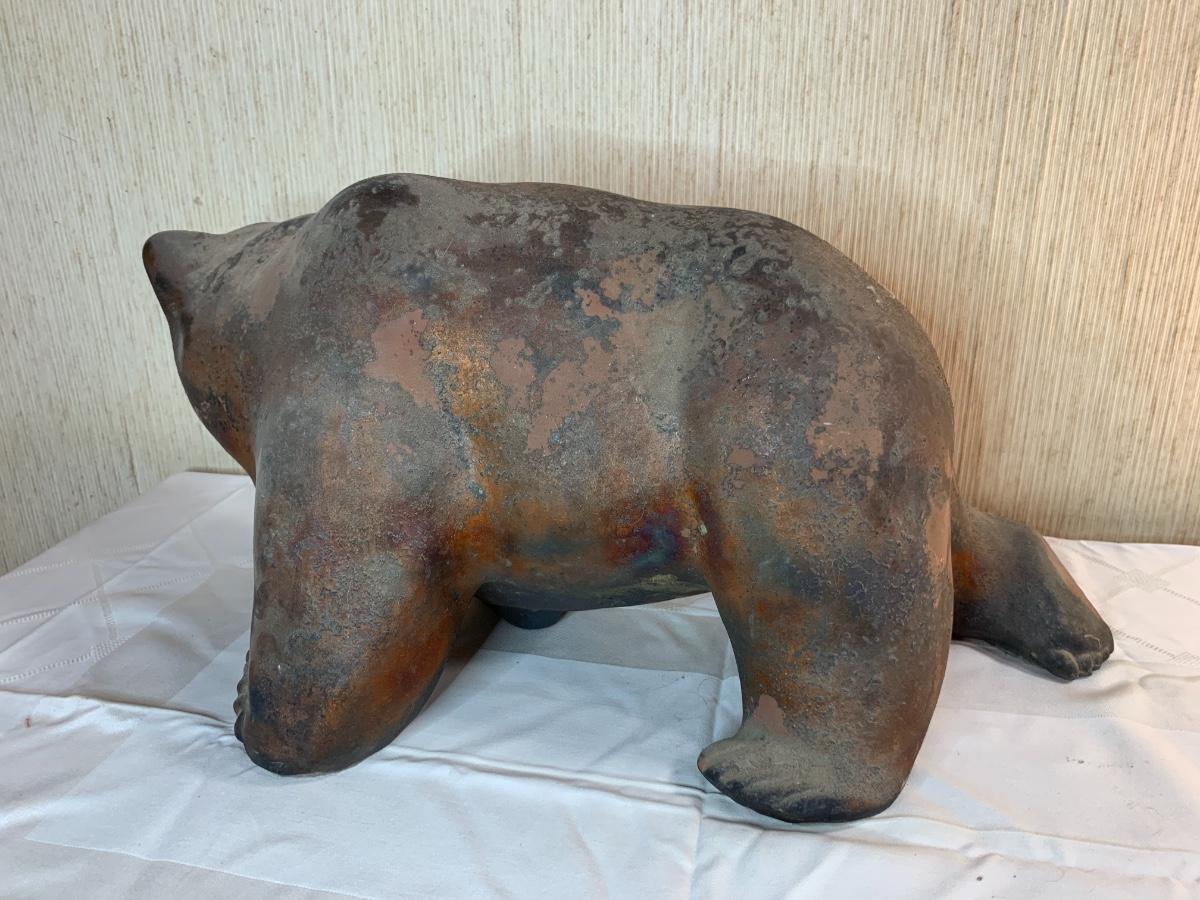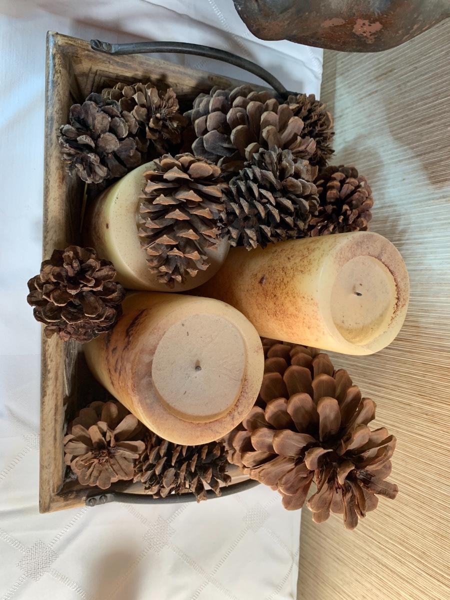 Large Ceramic Bear, other small wood bear, decorative pine cone and candle basket, decorative bear candle, deer antler book ends. Deer antler book ends have a very small and unnoticeable chip at the top. Large Bear is about 1ft and 3 in long (it is large, but not heavy)