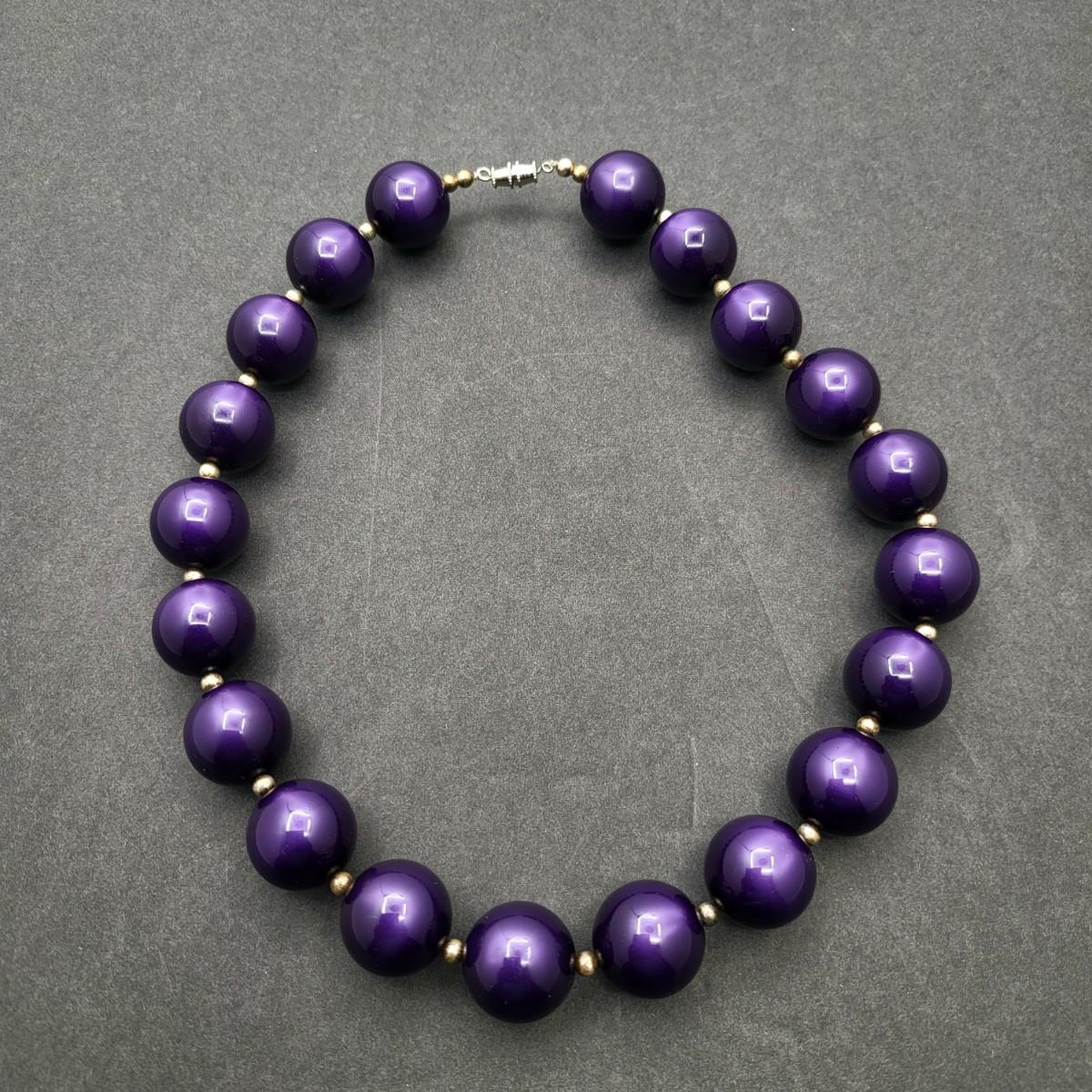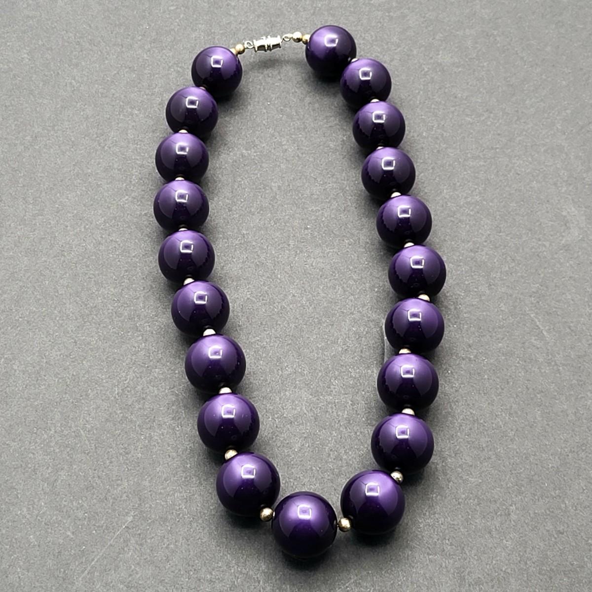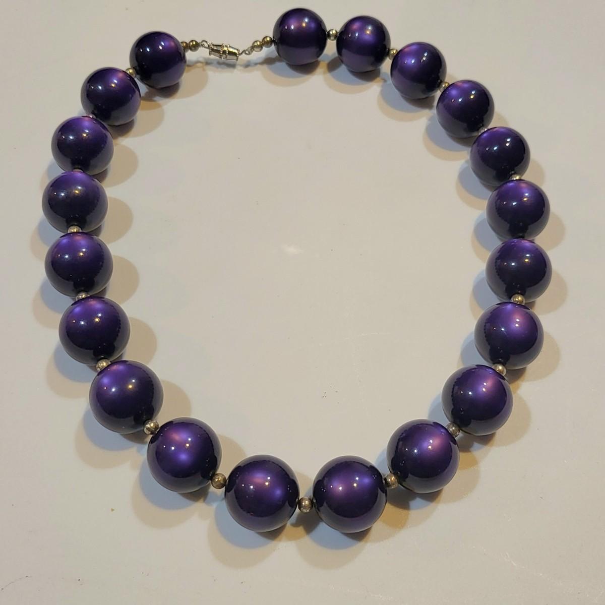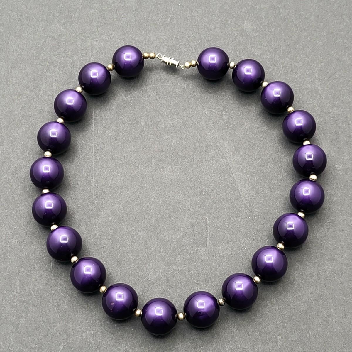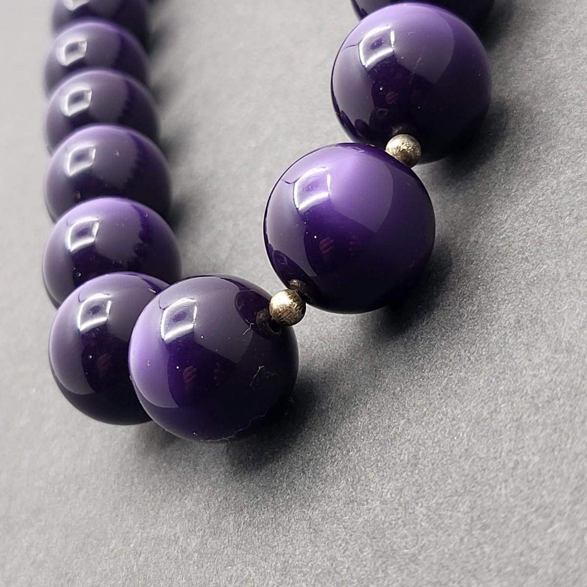 Vintage 3/4" purple moonglow lucite bead choker necklace 17" long with barrel twist clasp.