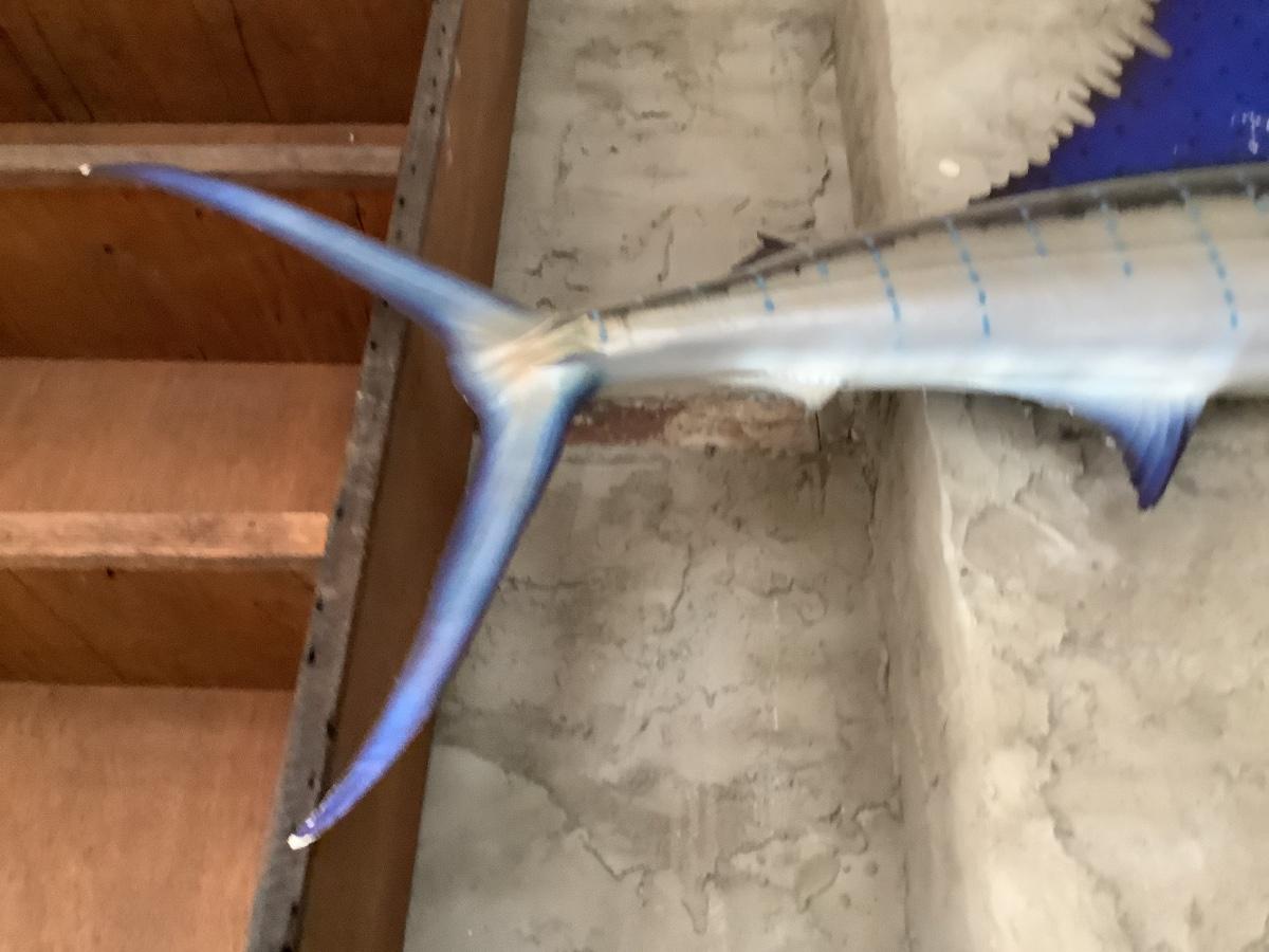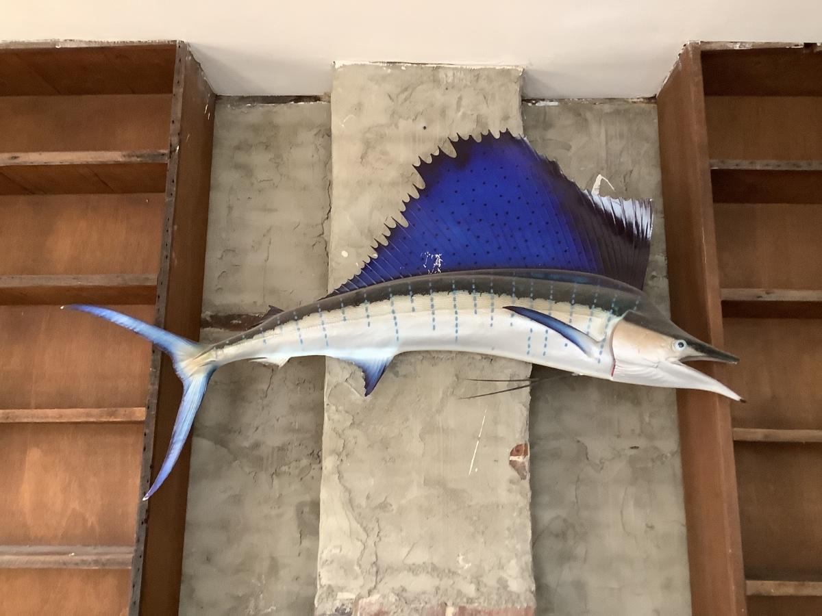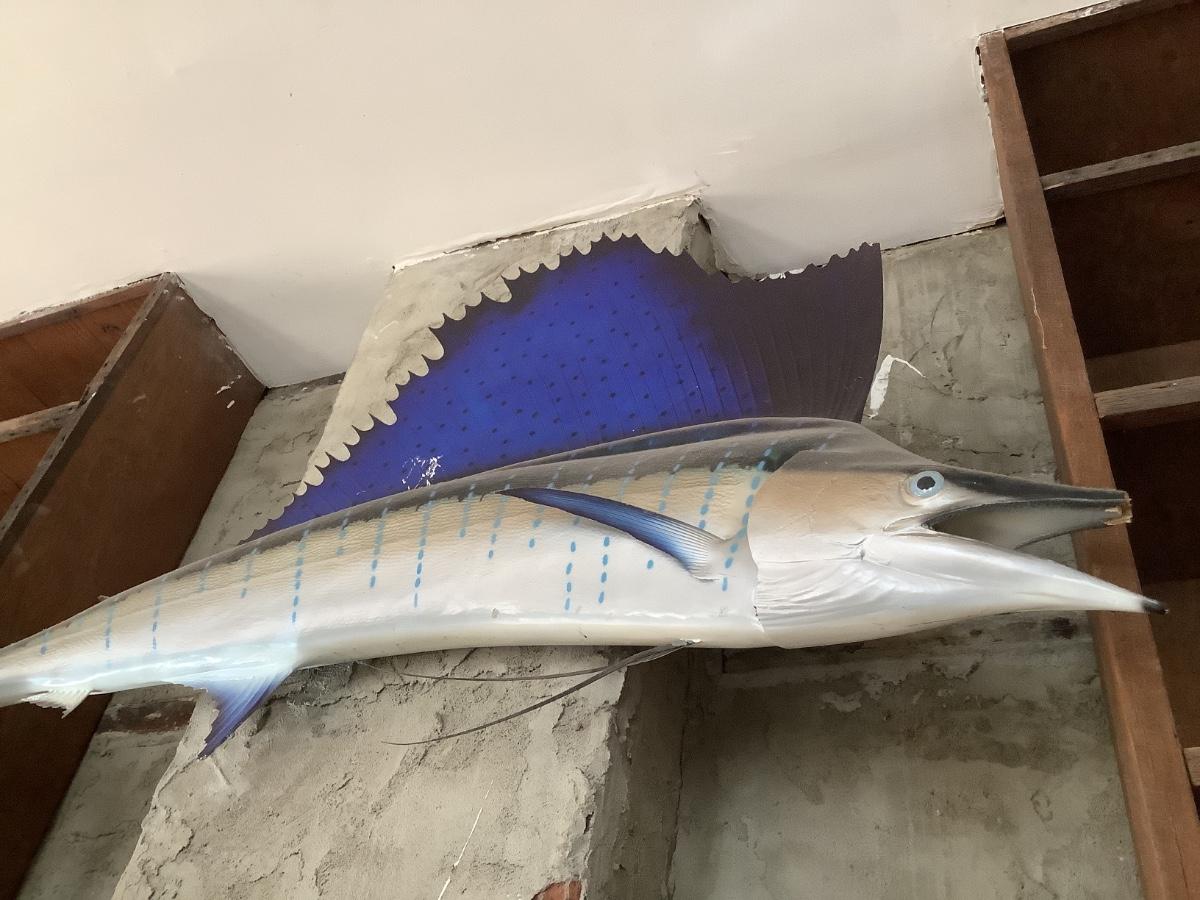 Nautical Decor fish big and blue- marlin spear-like snout/bill must have had a little issue