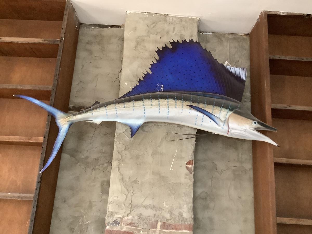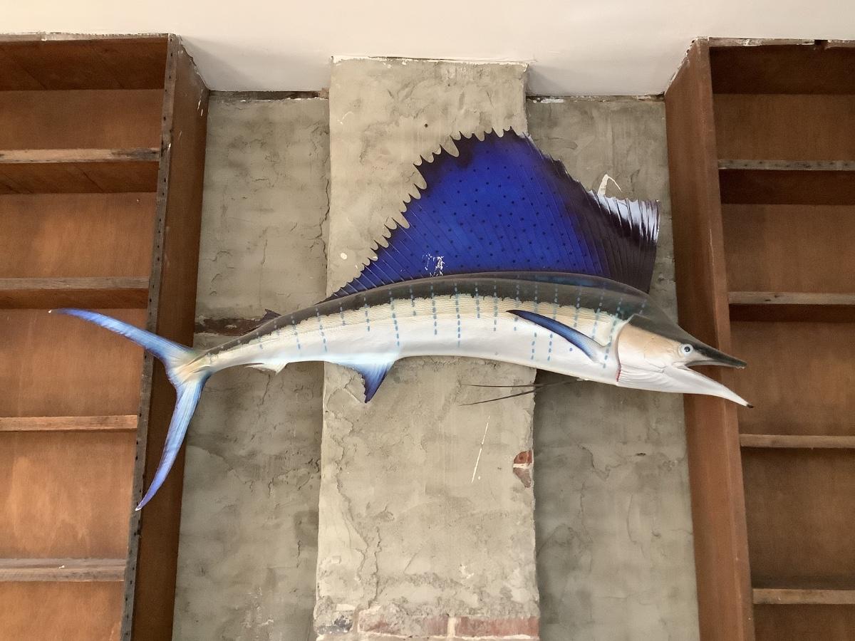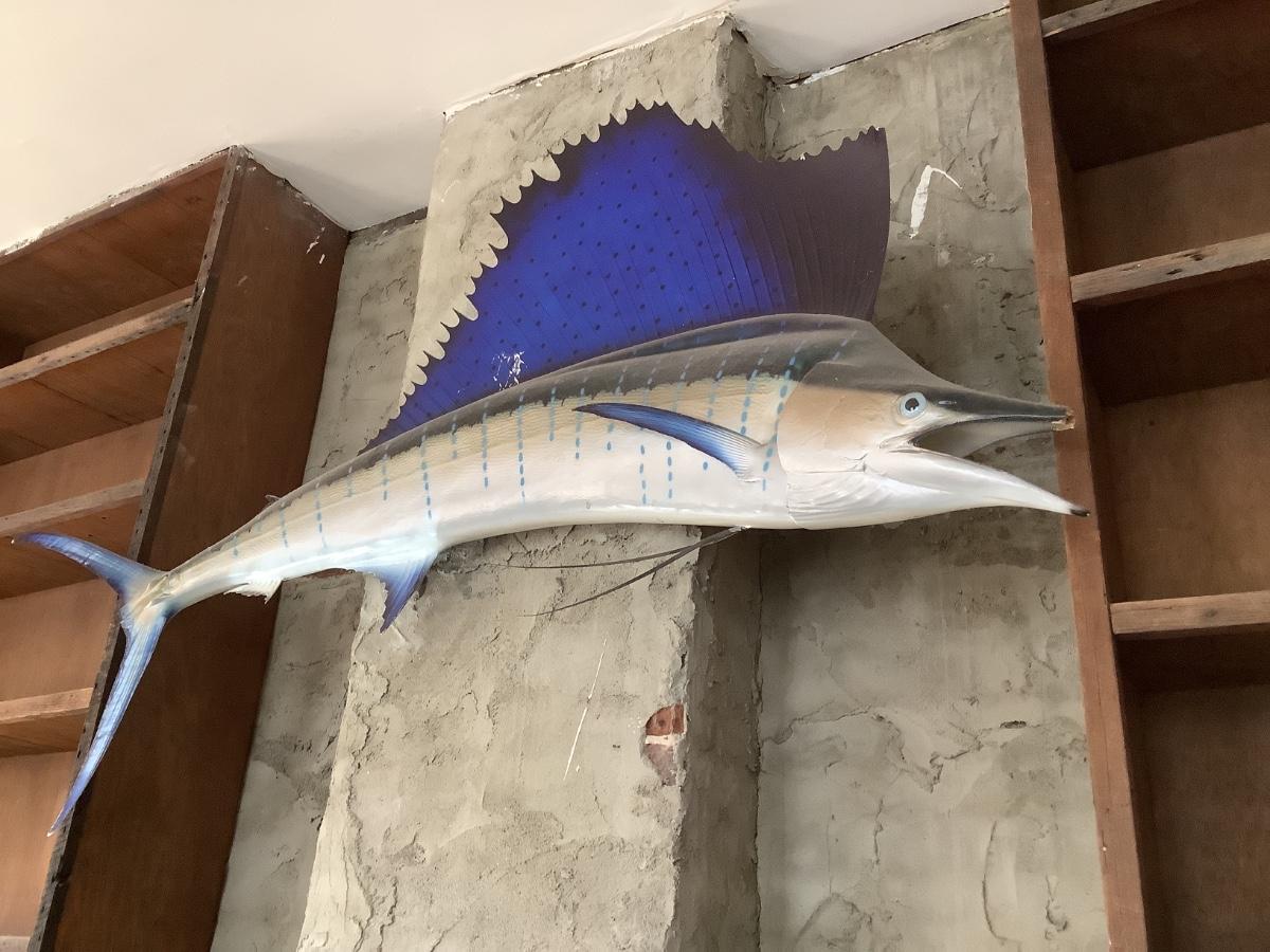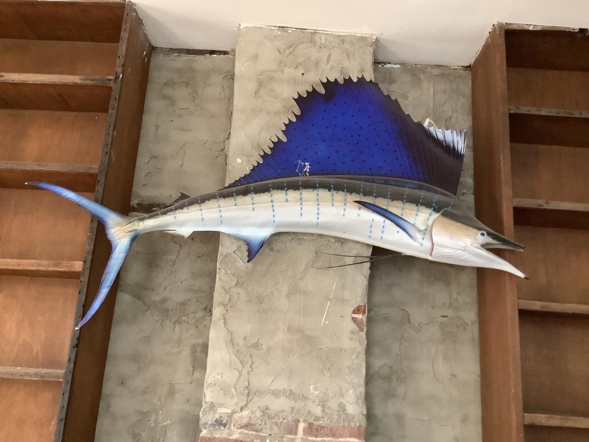 Nautical Decor fish big and blue- marlin spear-like snout/bill must have had a little issue