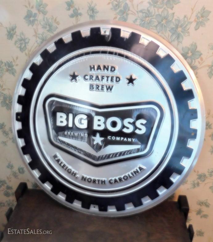 Big Boss Brewery metal wall advertising sign. Raleigh, NC. Sign still wrapped in original shipping plastic.
