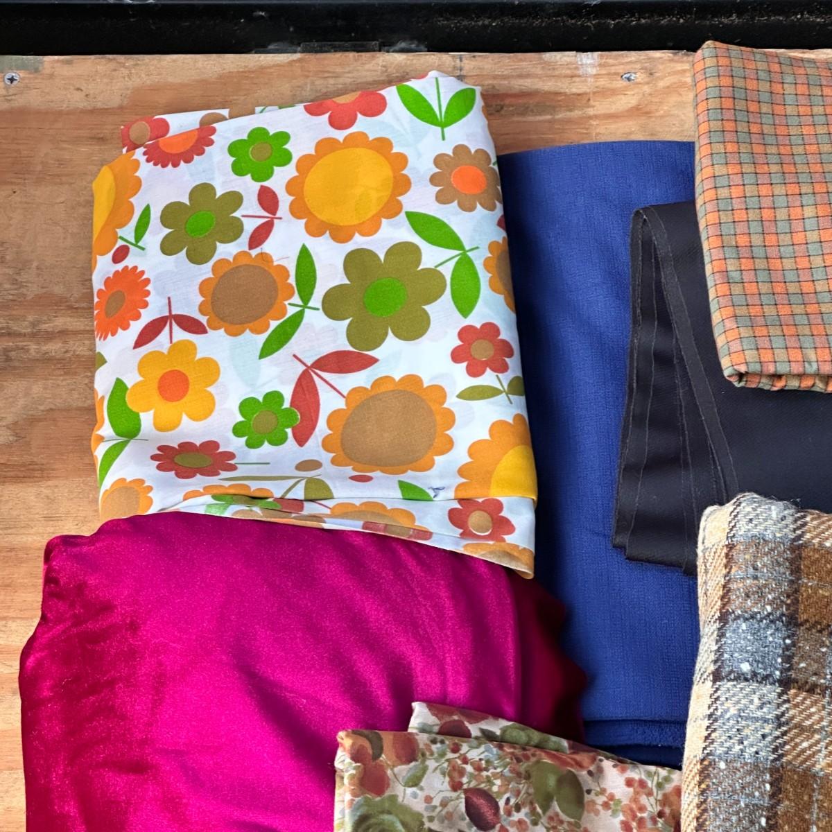 Big Box of Fabrics, Variety of Types- Wool, Cotton, Velveteen+, all in very good condition and ready to be sewn