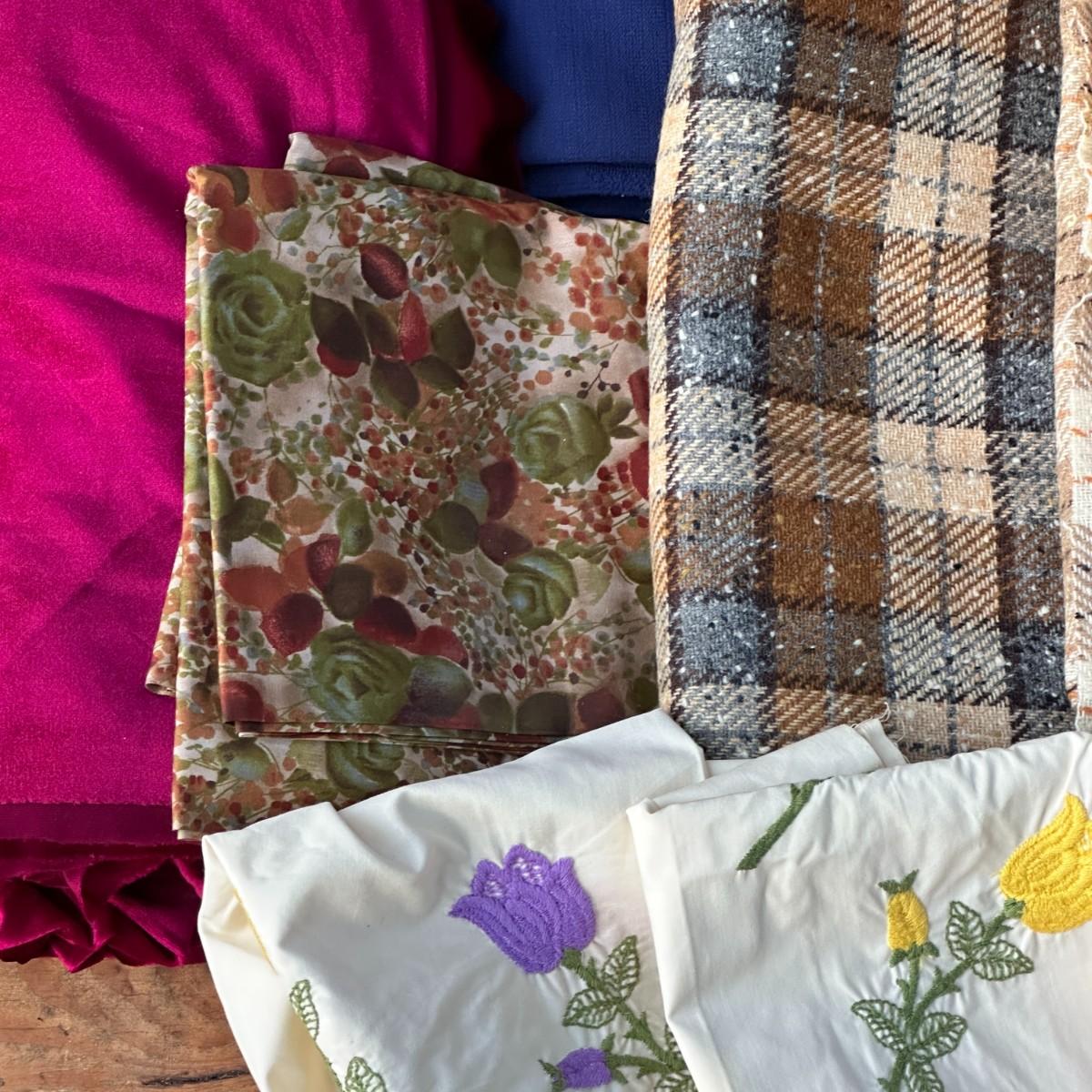 Big Box of Fabrics, Variety of Types- Wool, Cotton, Velveteen+