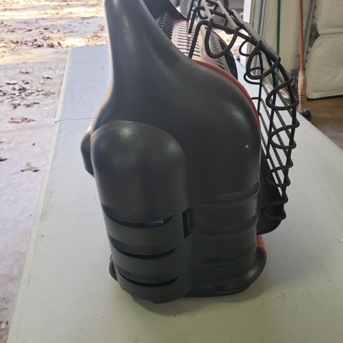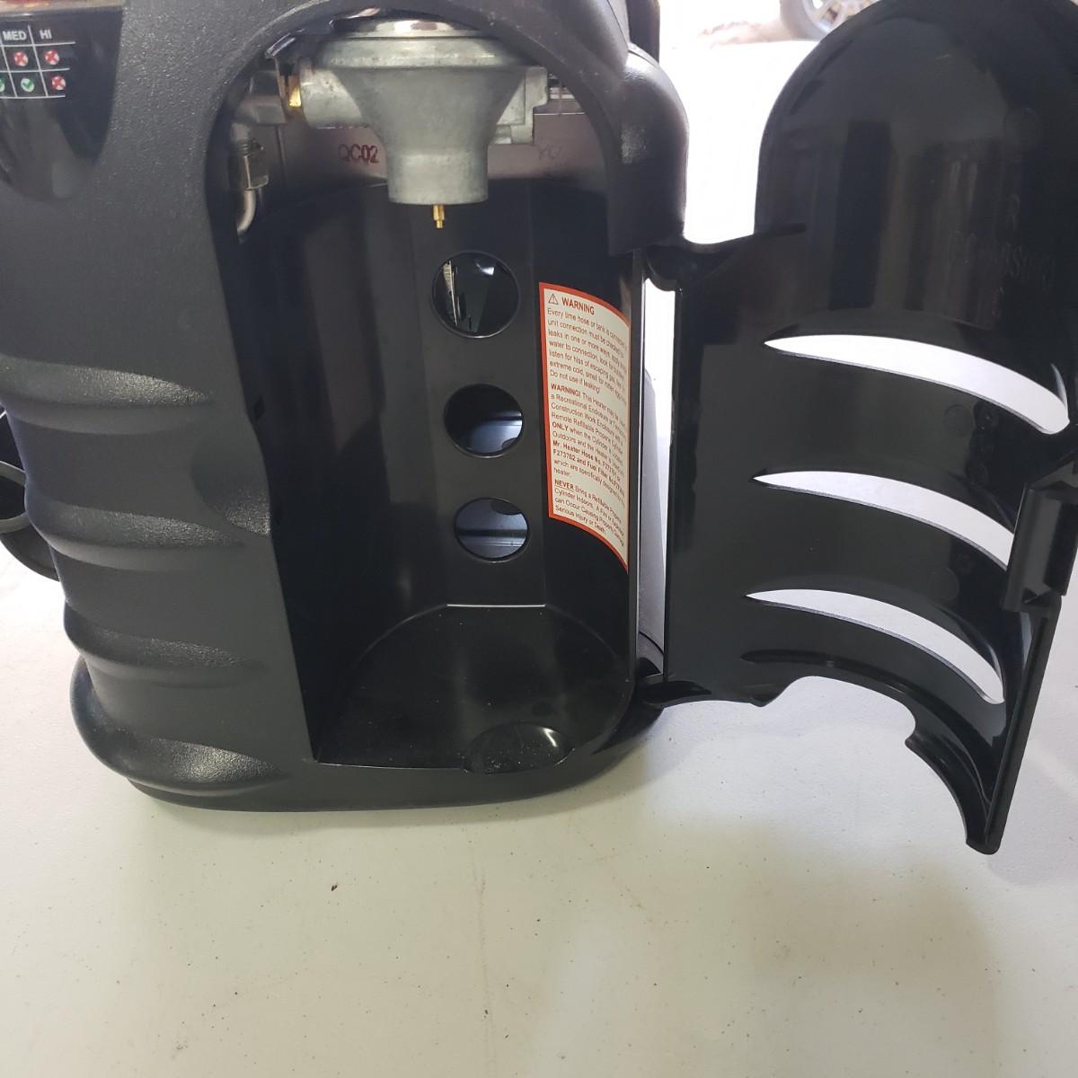 This is a Big Buddy propane heater by Mr. Heater. It is designed for both indoor and outdoor use. It can connect to two 1-lb propane cylinders or a 20-lb tank with accessories. Safety features include a tip-over shut-off function and an Oxygen Depletion Sensor (ODS). Heater was not tested with a tank, as none were available.