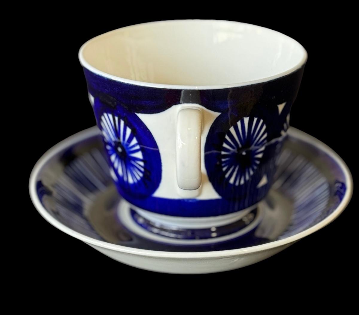 Each piece is hand painted, high quality ceramic. Features a lovely design in cobalt blue manufactured in Finland. Decoration by Ulla Procope Discontinued - Hard to find.