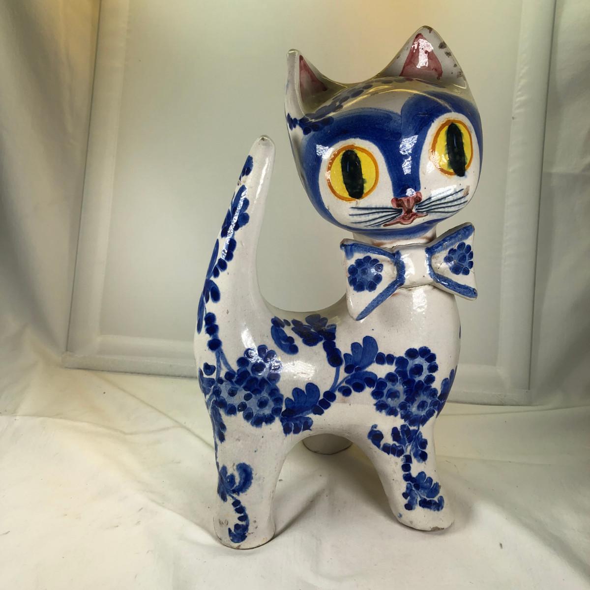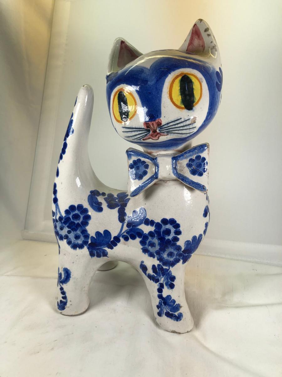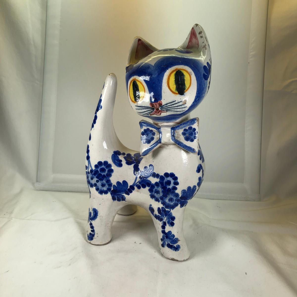 Big Eued Italian Cat Ceramic Figurine
