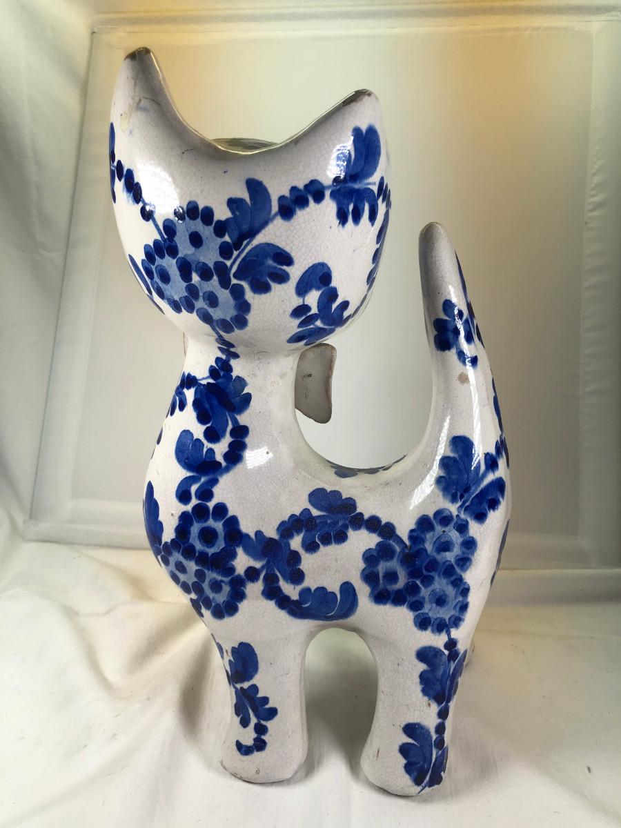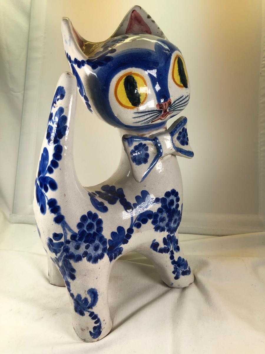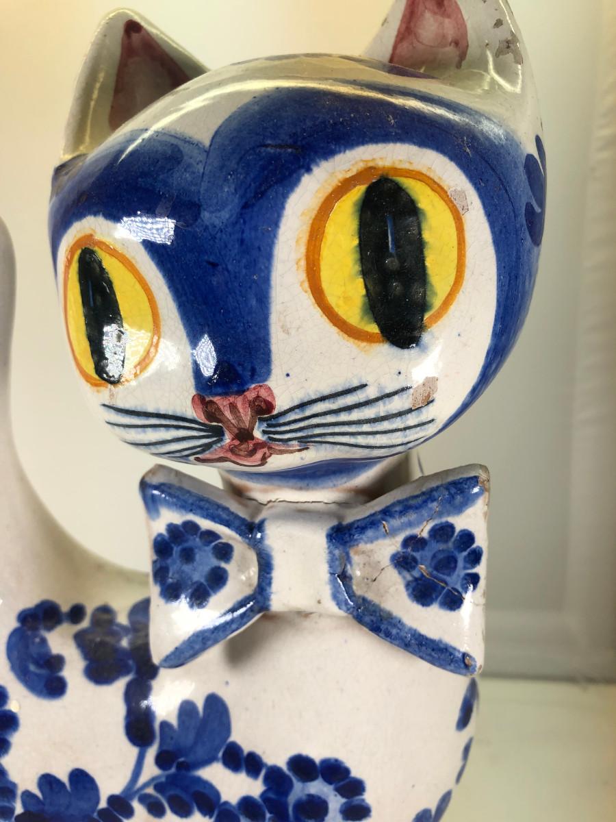 Big Eued Italian Cat Ceramic Figurine