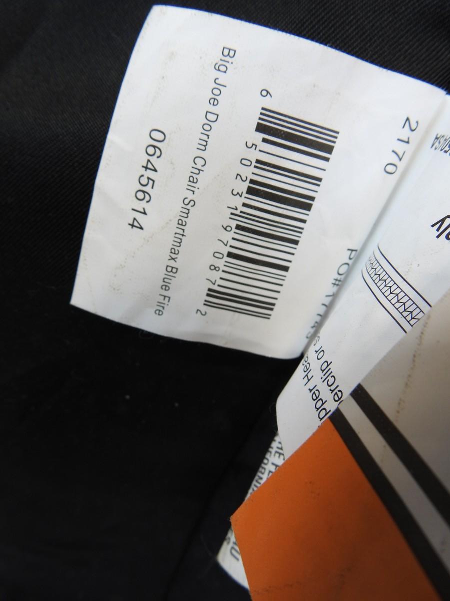 Big Joe Dorm Chair Smatmax Blue Fire: Has Half of Needed Stuffing, 33in x 28in