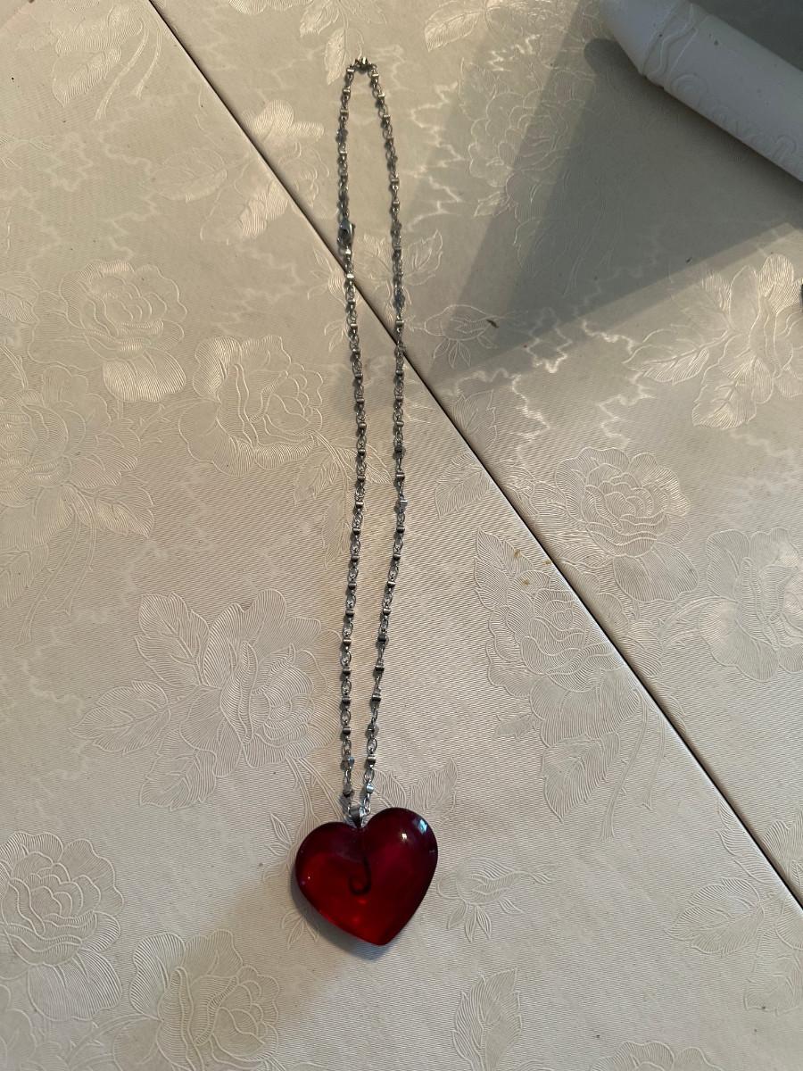 Big Large 3D Crystal Glass Red Heart Charm Pendant On Stainless Steel Chain