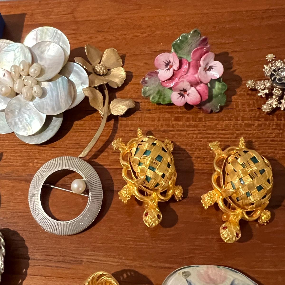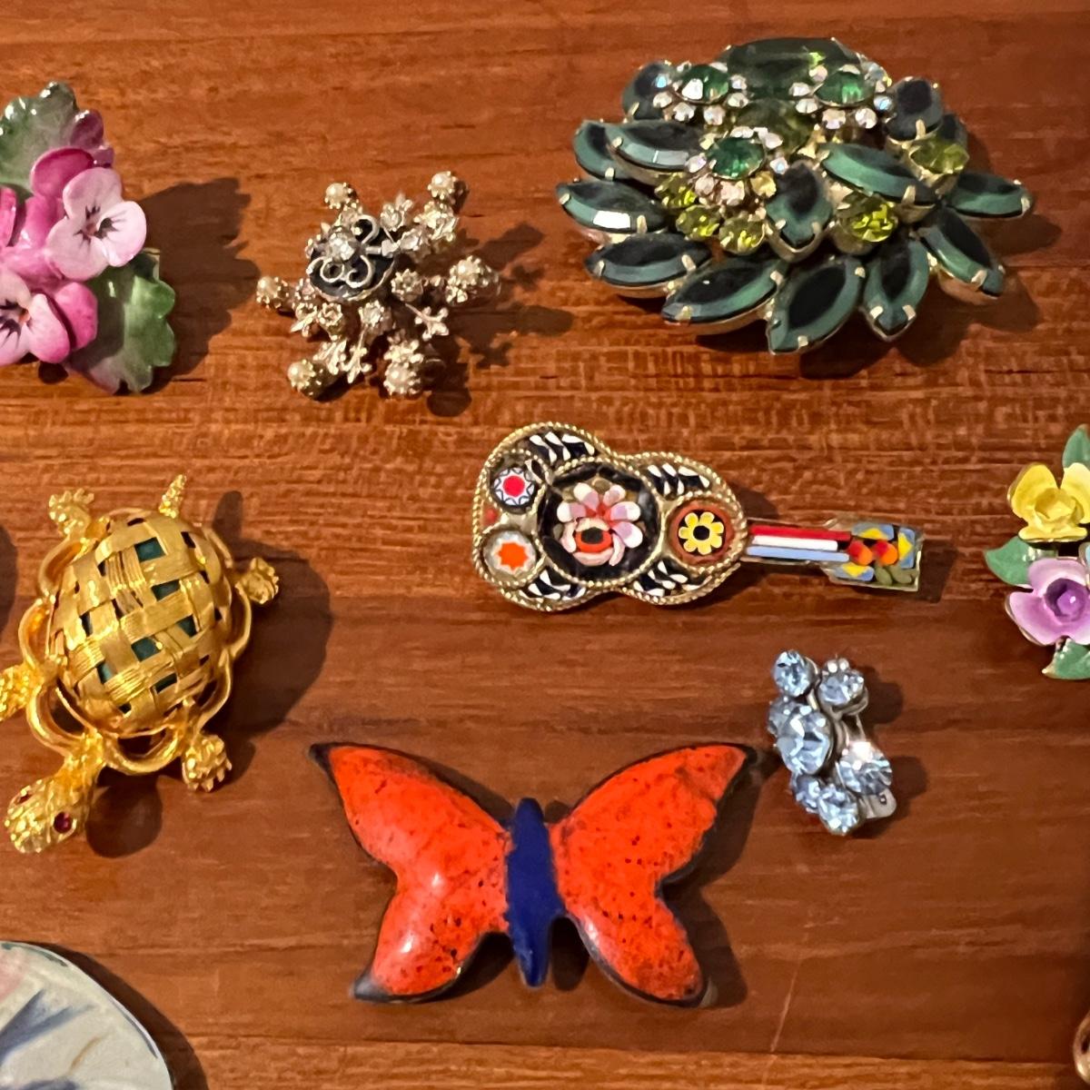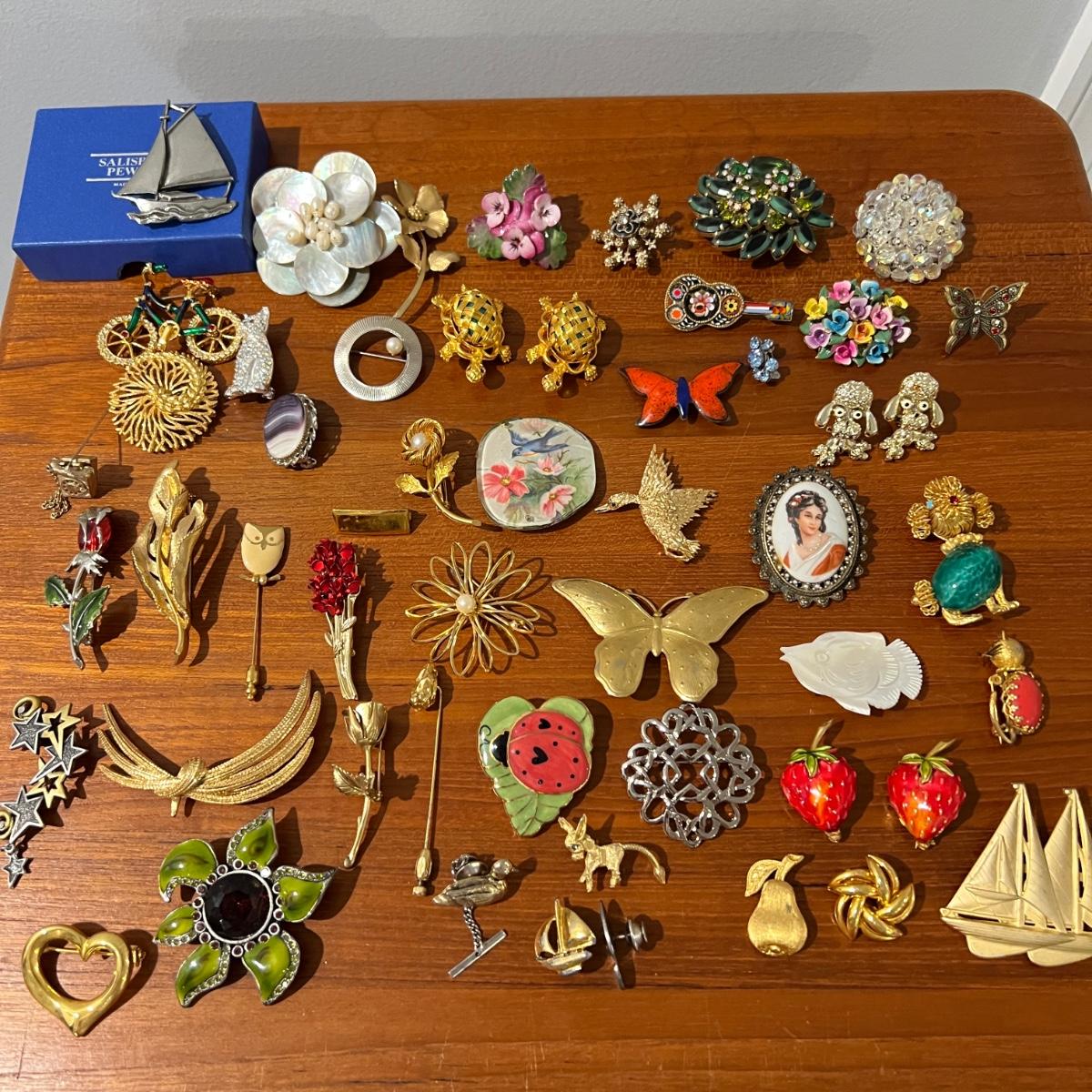 Big Lot Brooches Pins - Vintage, Austria, Limoges, Rhinestone, Statement, Enamel, Pewter