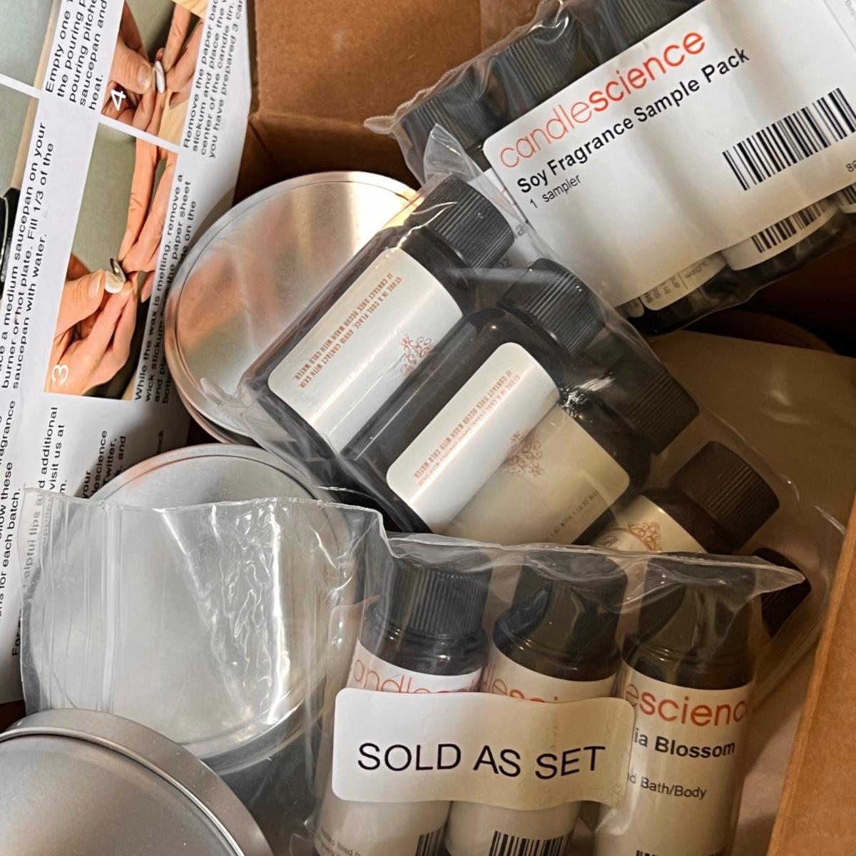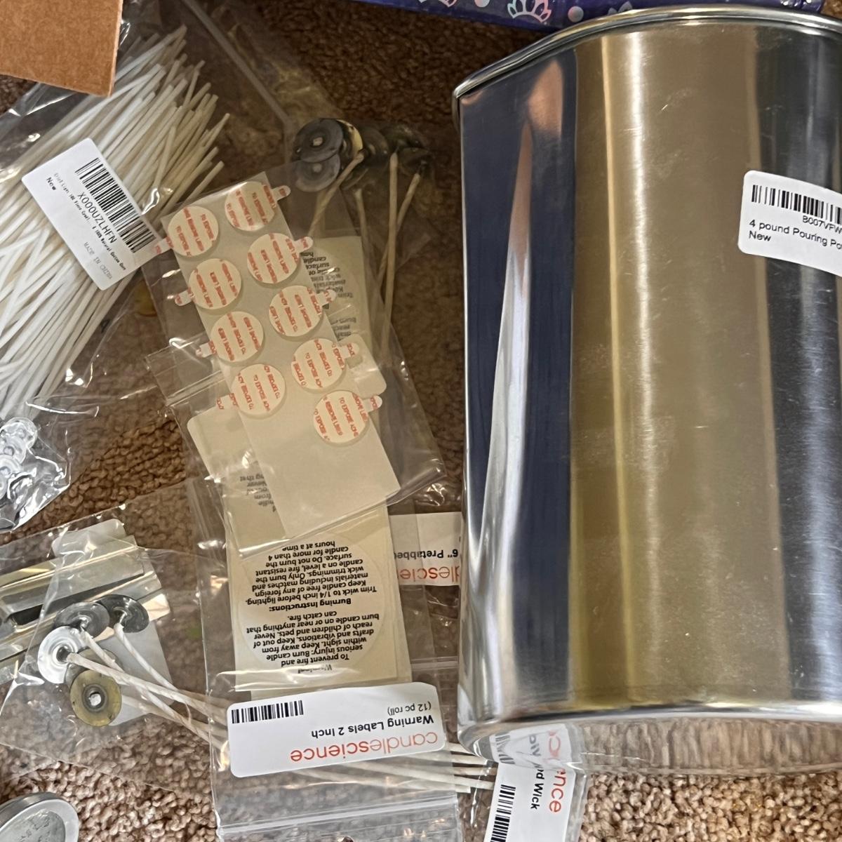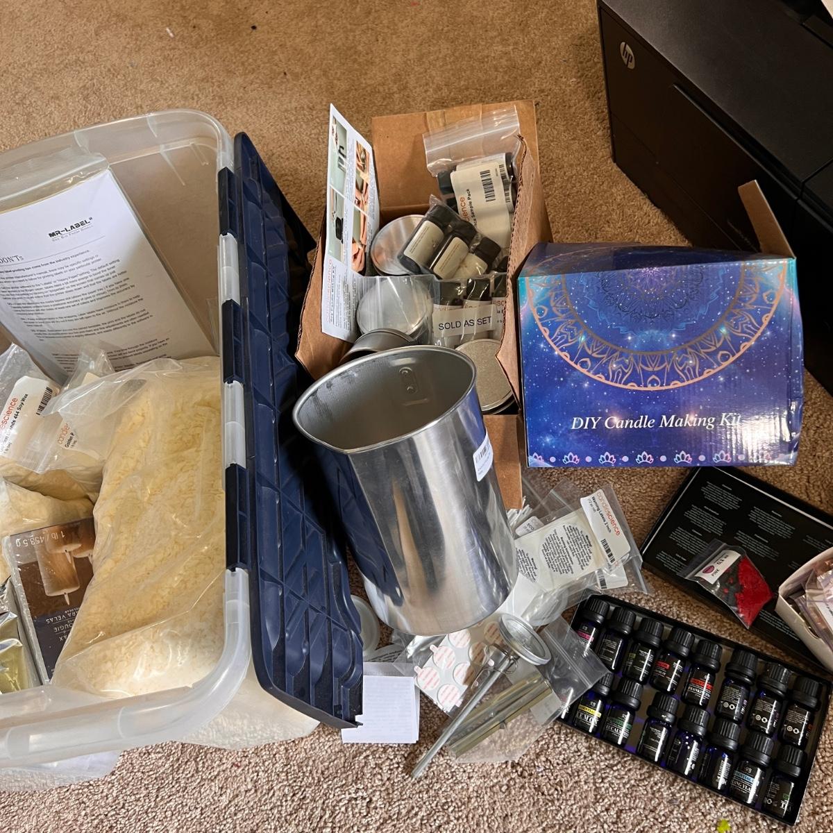 Everything you need to make your own candles including essential oils, dyes, jars, wicks, 1 entire kit, wax, etc.
