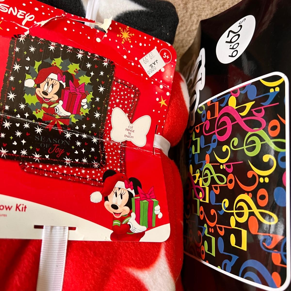 New "No Sew Throw Kits" - Disney, Christmas, winter, music. Big cuts of printed and solid fleece.