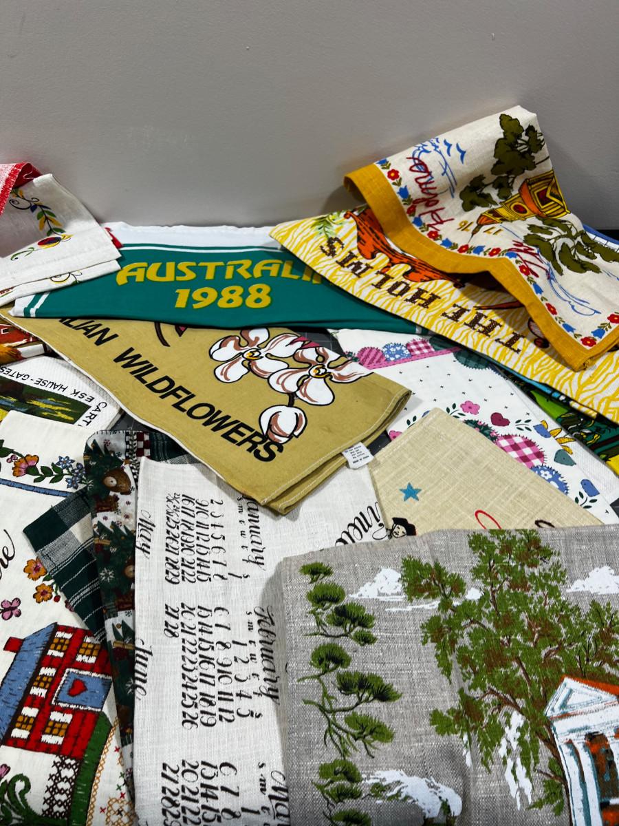 Big lot of Linen Tea Towels and Calendars
