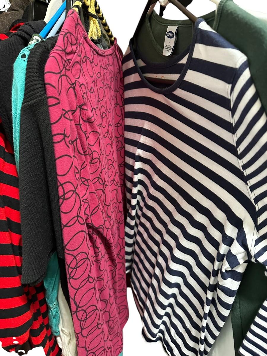 *The clothes in this estate were all owned and worn by the same lady. Almost every item is either size Medium, Large, 12 or 14. They have all been worn from little to a good bit. We have culled out the pieces that are stained, torn, or unwearable to the best of our ability. All clothes listed are wearable.
