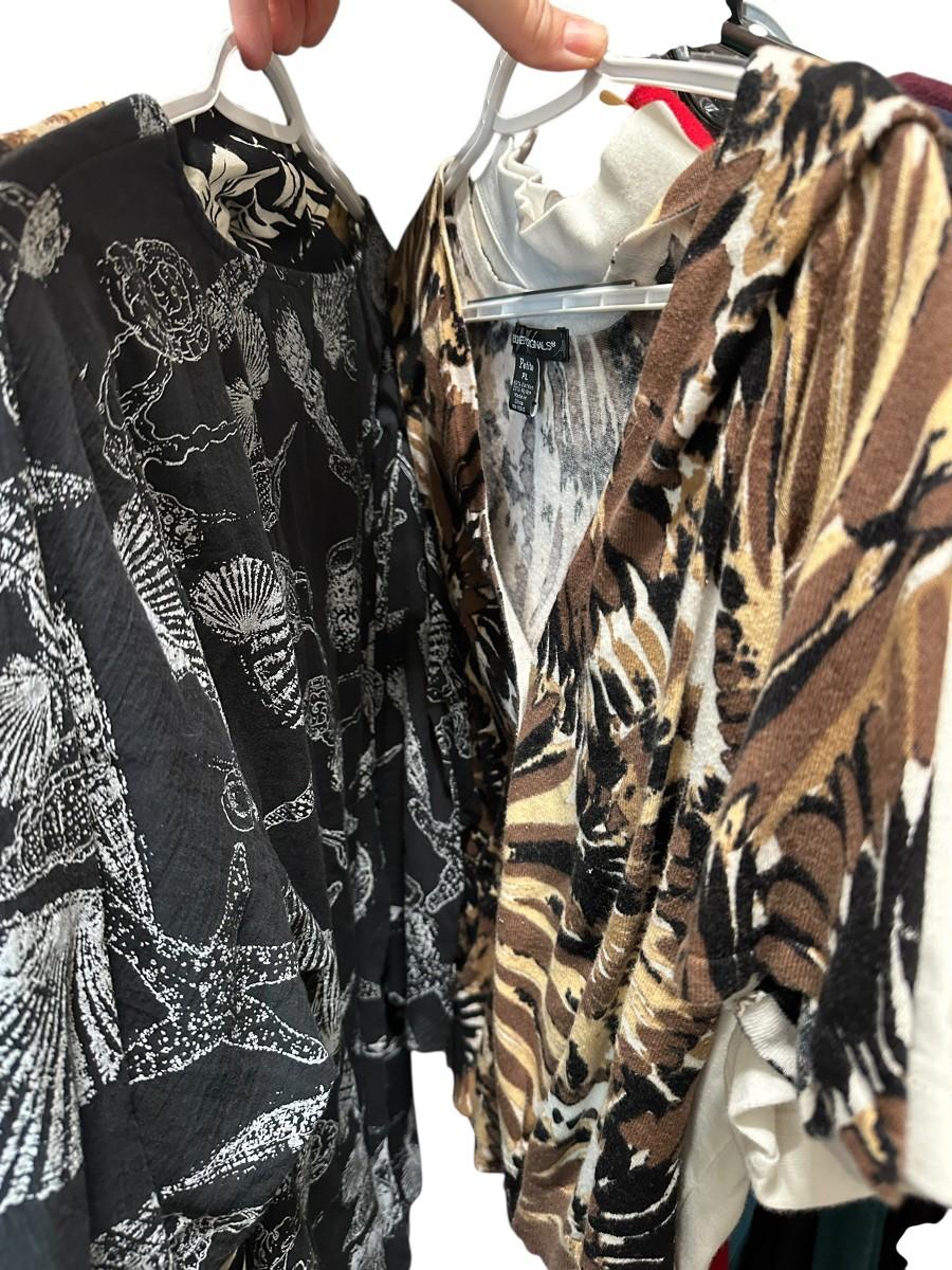*The clothes in this estate were all owned and worn by the same lady. Almost every item is either size Medium, Large, 12 or 14. They have all been worn from little to a good bit. We have culled out the pieces that are stained, torn, or unwearable to the best of our ability. All clothes listed are wearable.