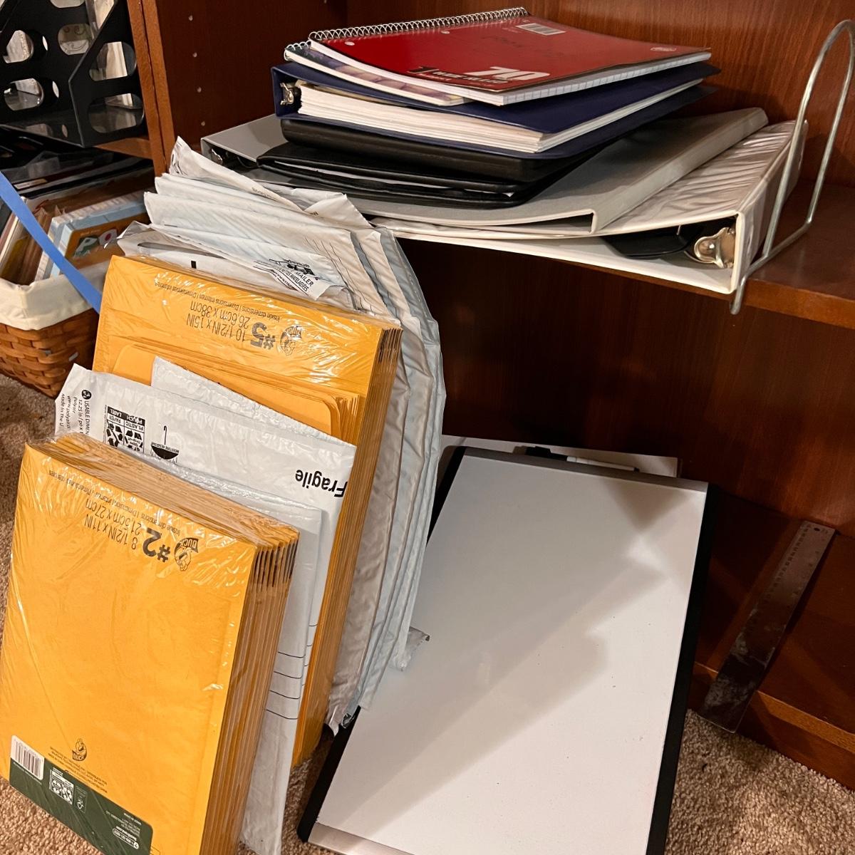 A lot is new in original packaging. Shipping envelopes, labels, paper, binders, etc.