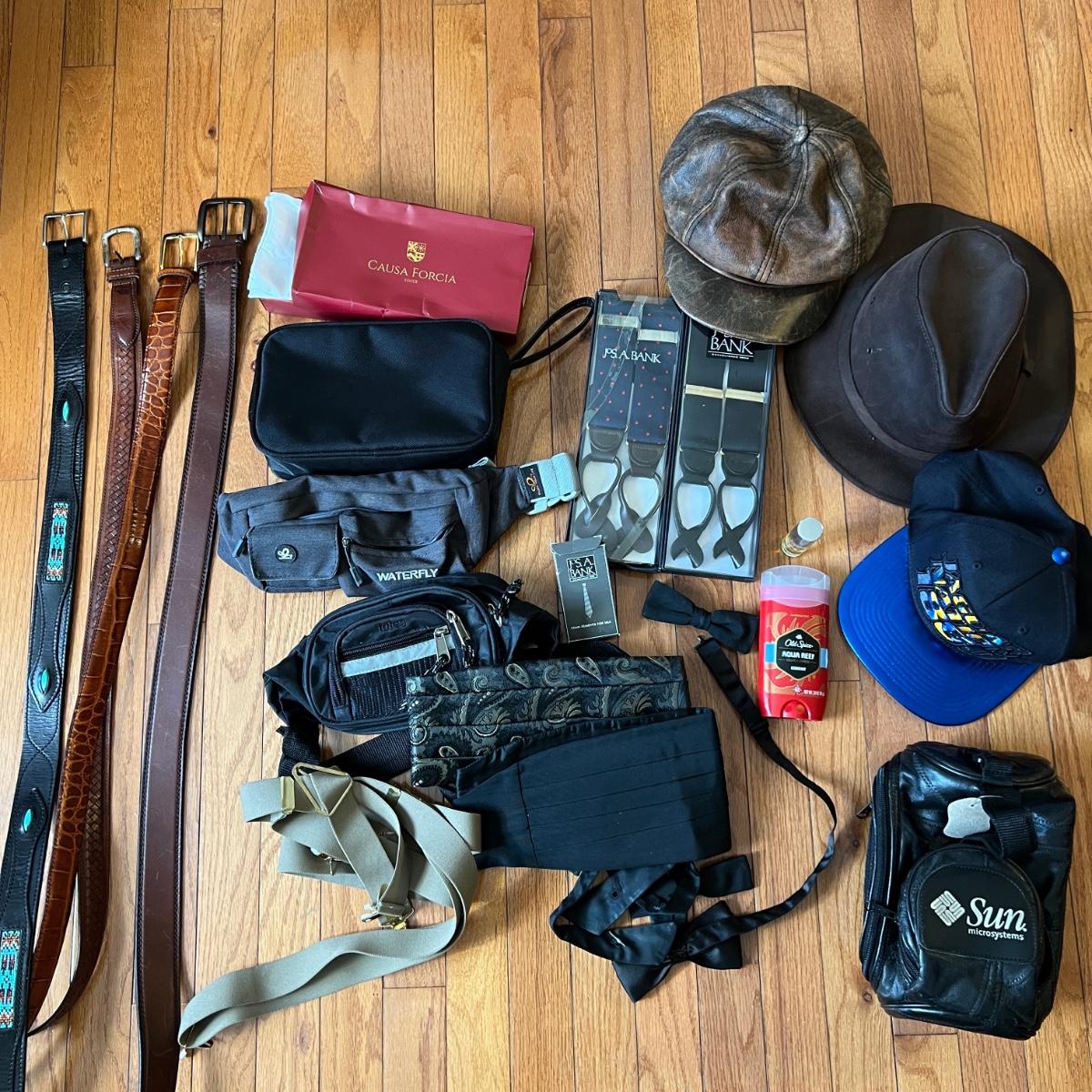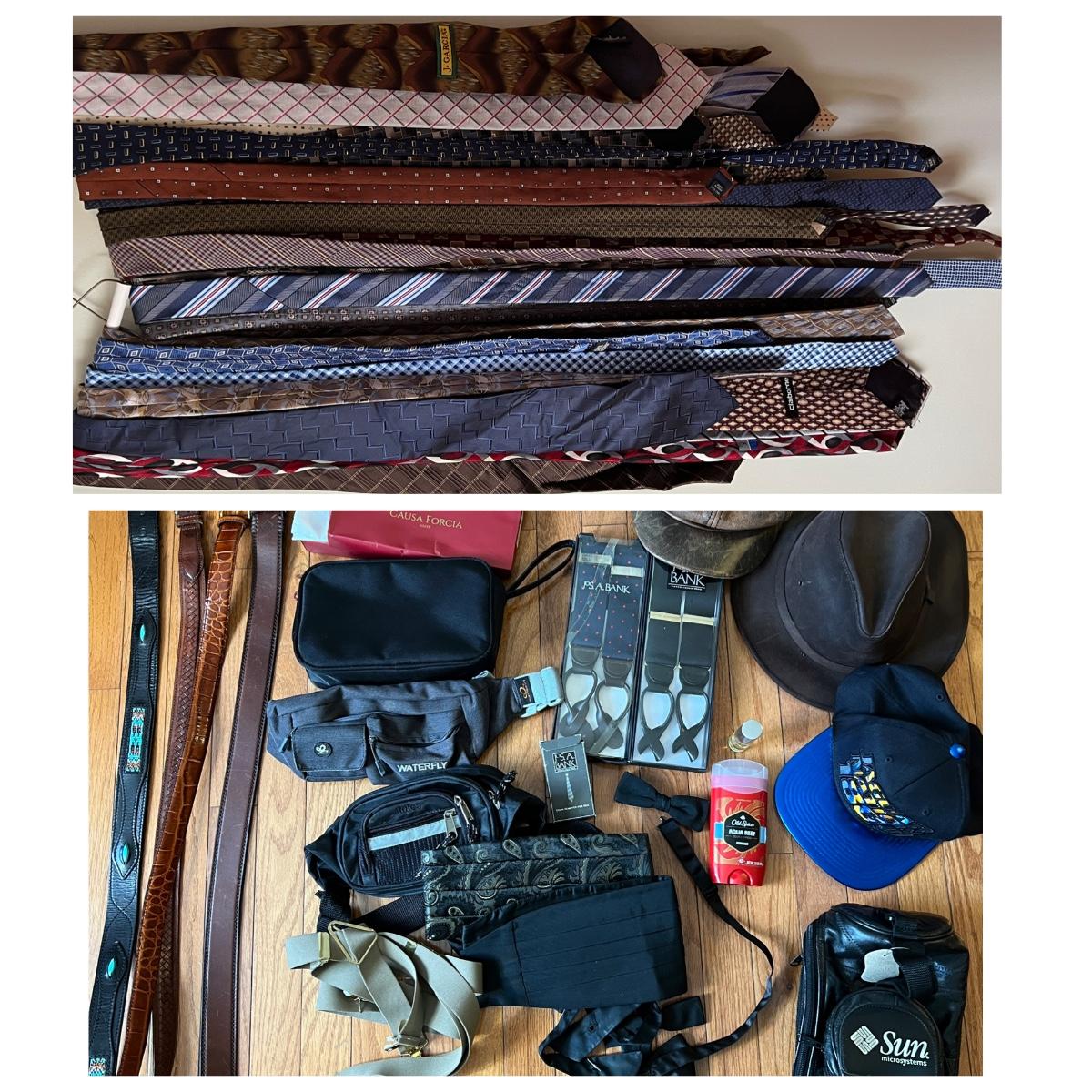 Big Mixed Lot Mens Accessories - Hats, Silk Ties, Leather Belts, CK Cologne, etc.