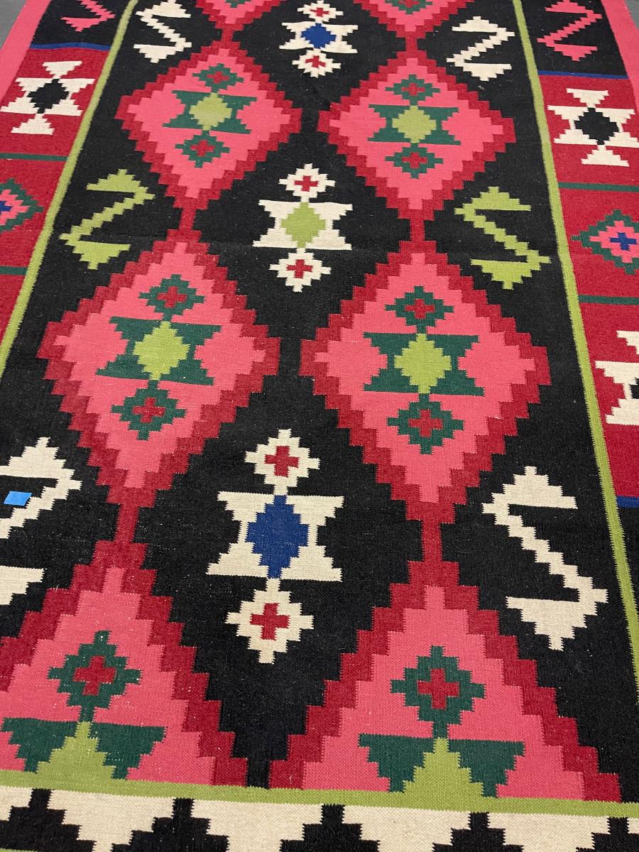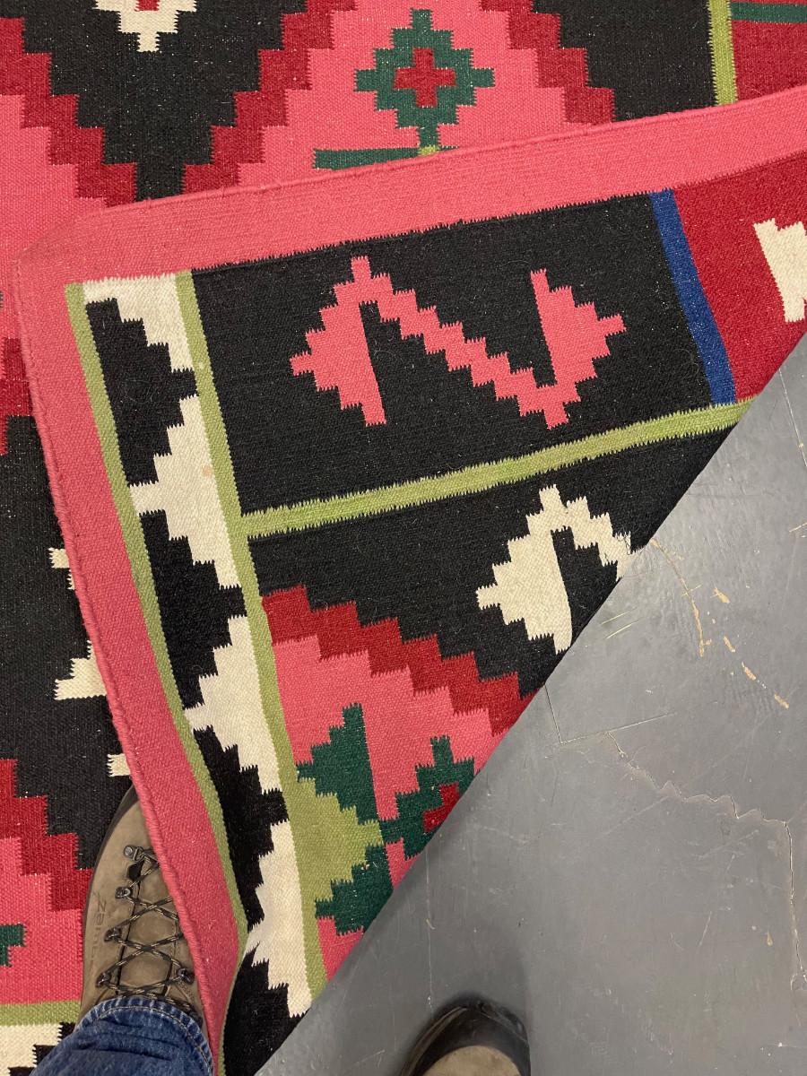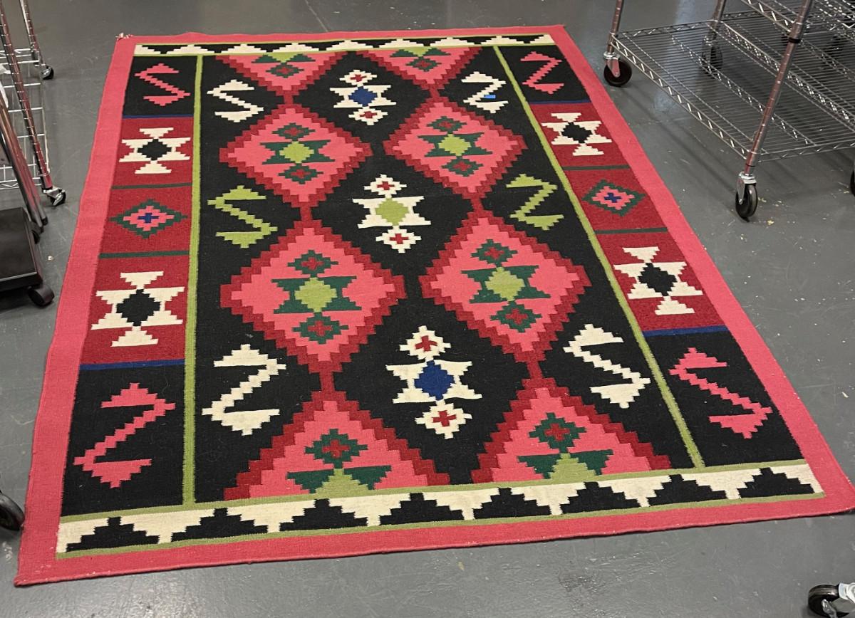 Big Red, Green, Black, Crate & Barrell World Market Woven Rug LARGE
